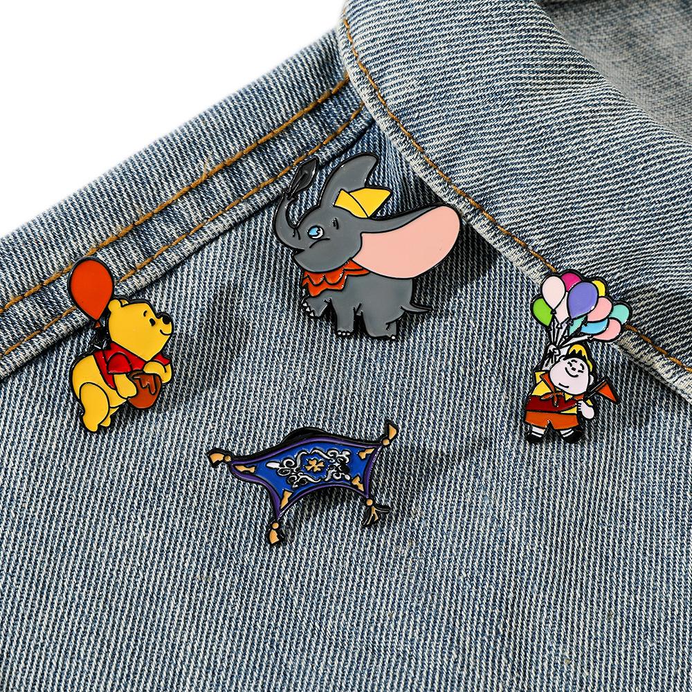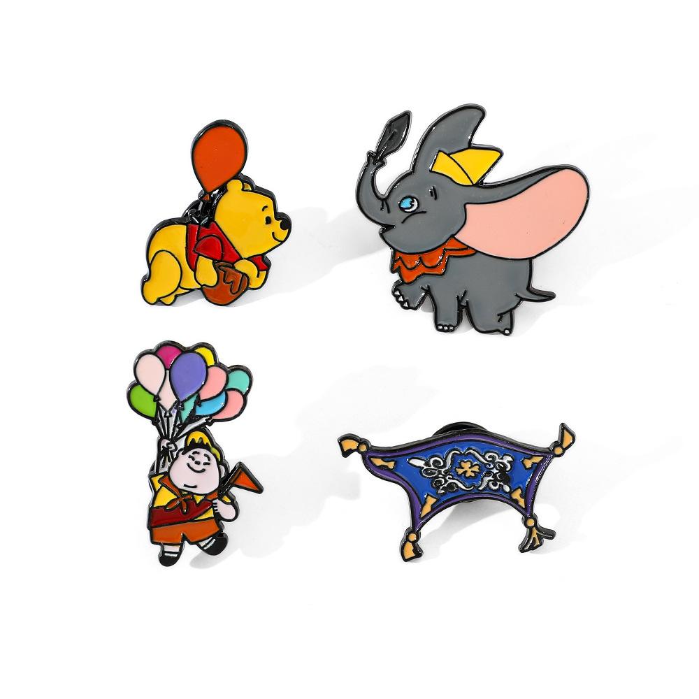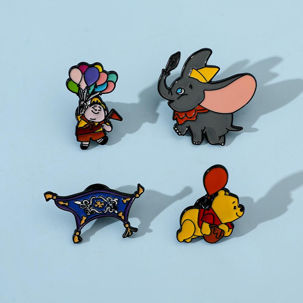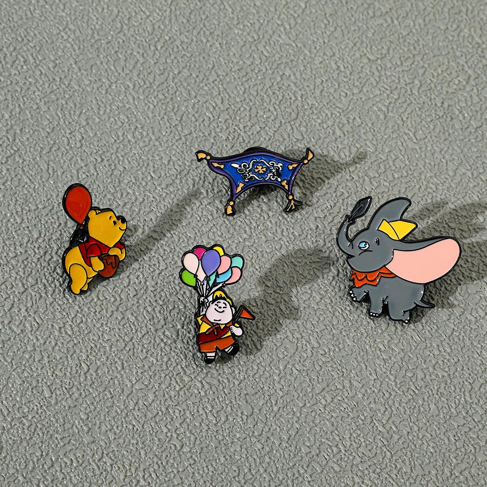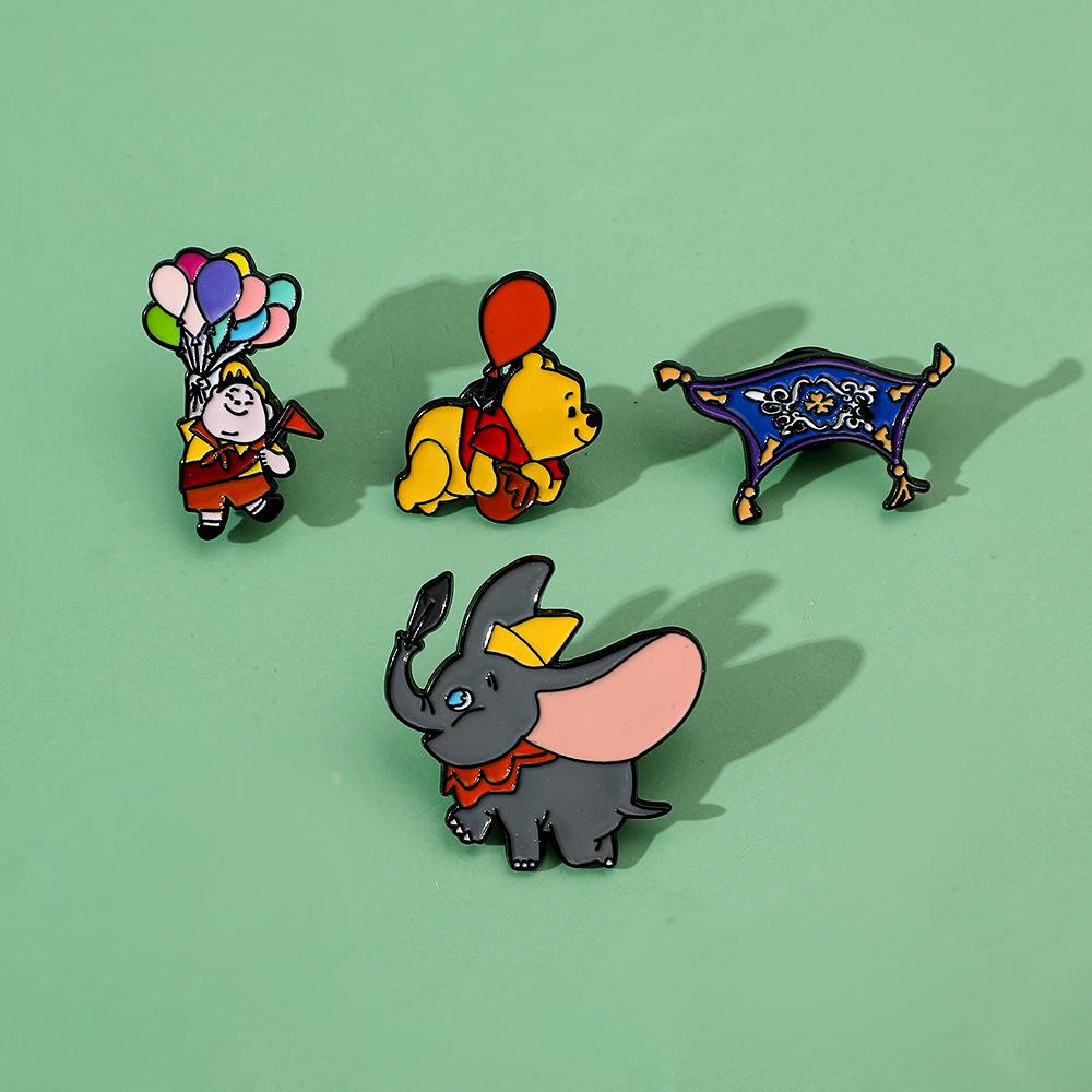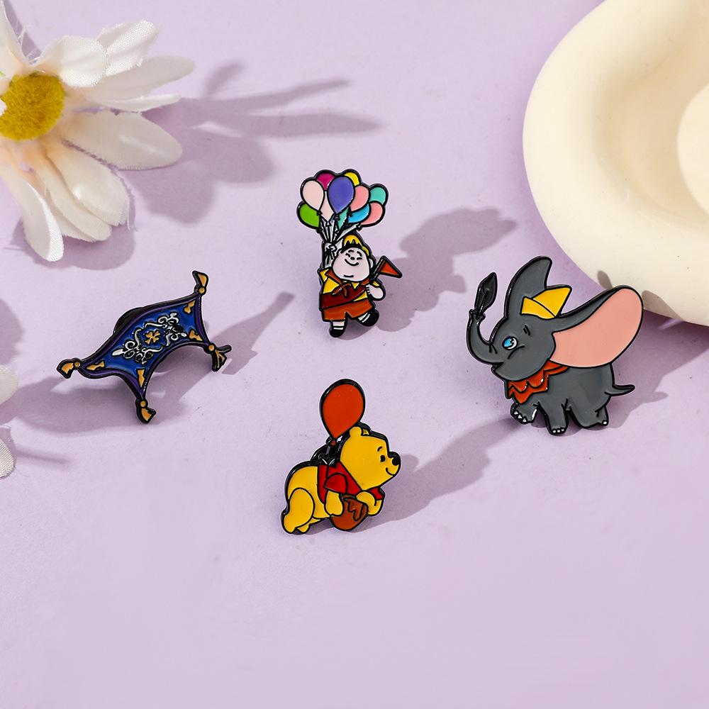 Personagem de desenho animado distintivo de metal criativo ursinho pooh dumbo tapete voador liga gota broche de óleo acessórios