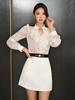 Conjunto de Duas Peças Saia e Casaco Transparente com Proteção Solar Roupa Feminina Transfronteiriça Verão Novo Conjunto Feminino Decote V Babados Manga Bufante
