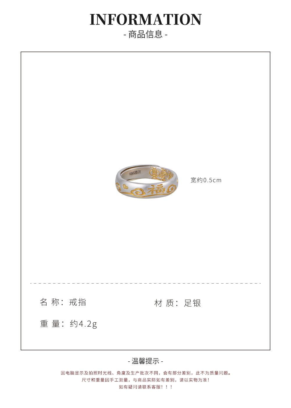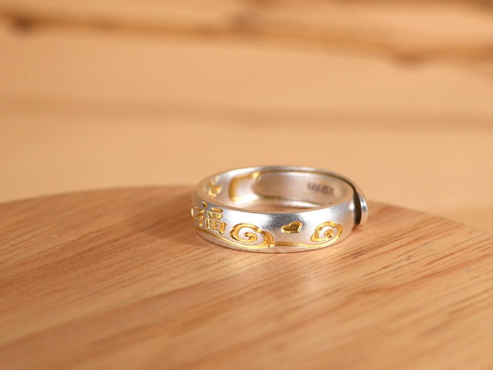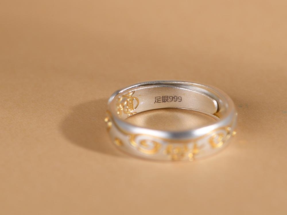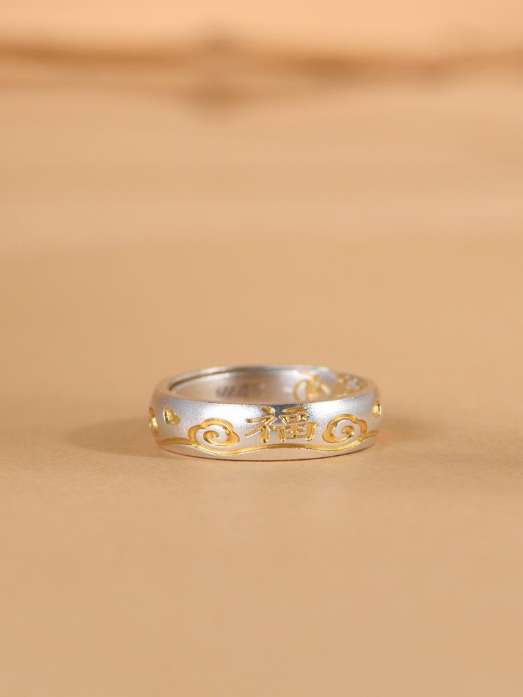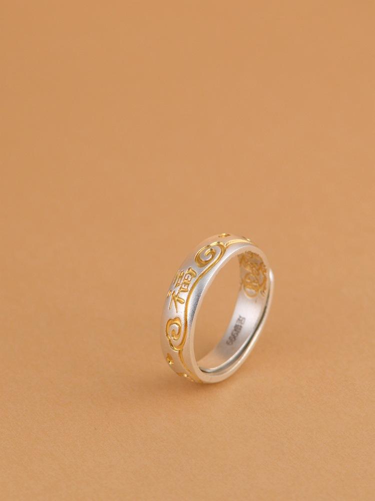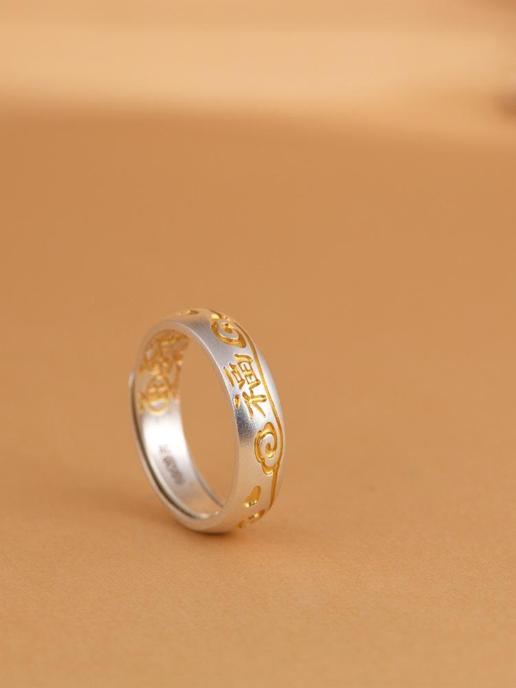 Compre Golden Deer King Pé Prata Círculo Simples Xiangyun Fu Personagem Ouro 999 Prata Esterlina Loach Back Anel Feminino Anel Jóias Presente no atacado no Joom.pro
