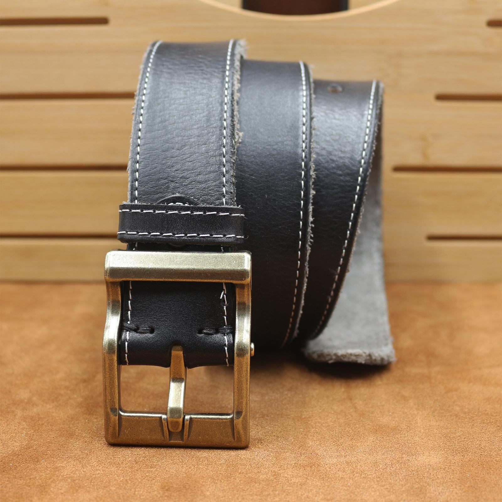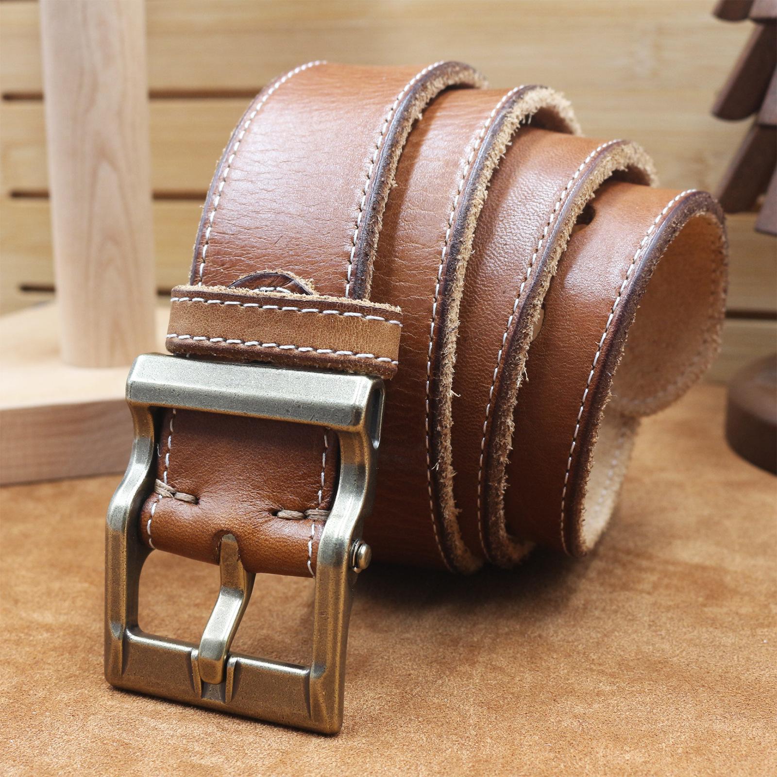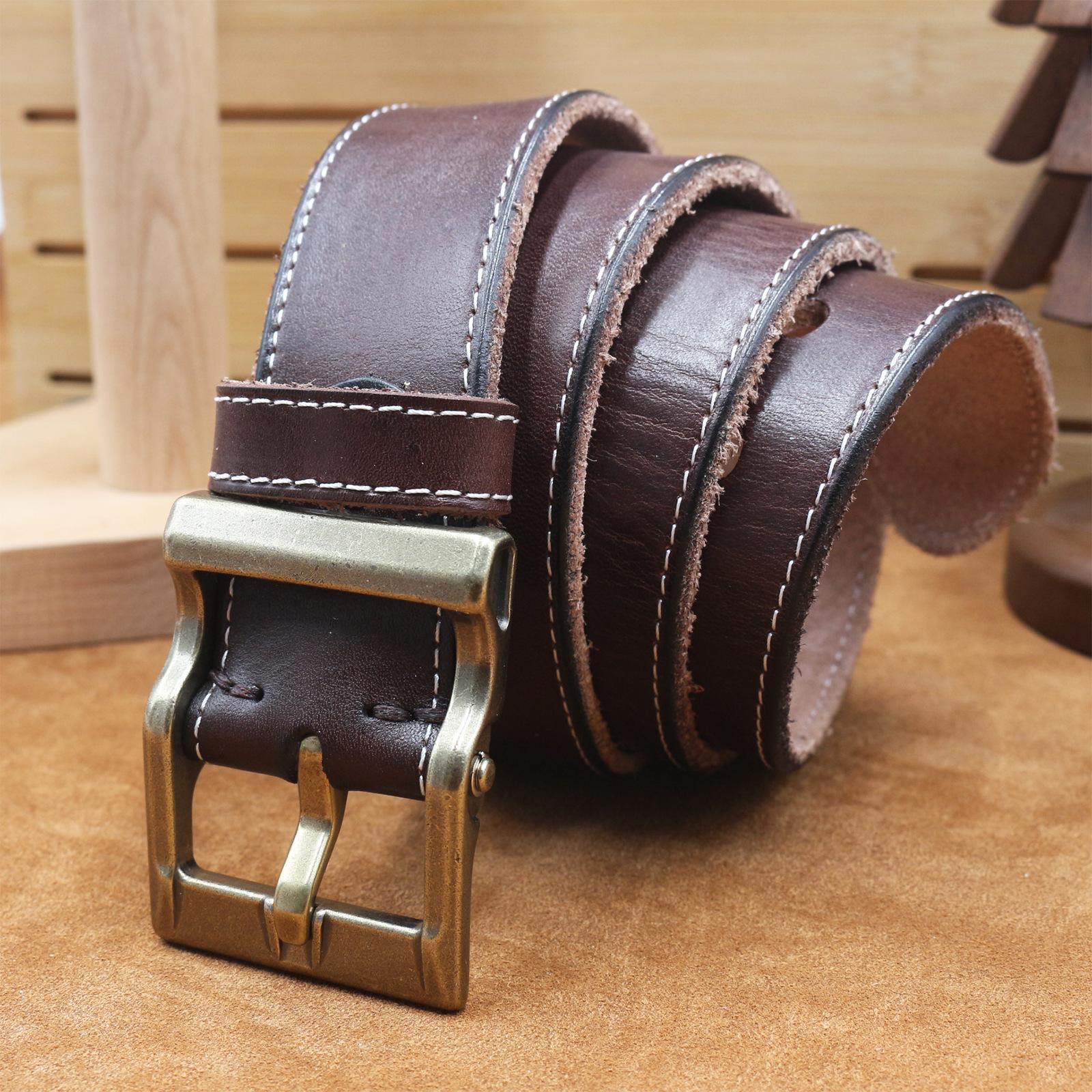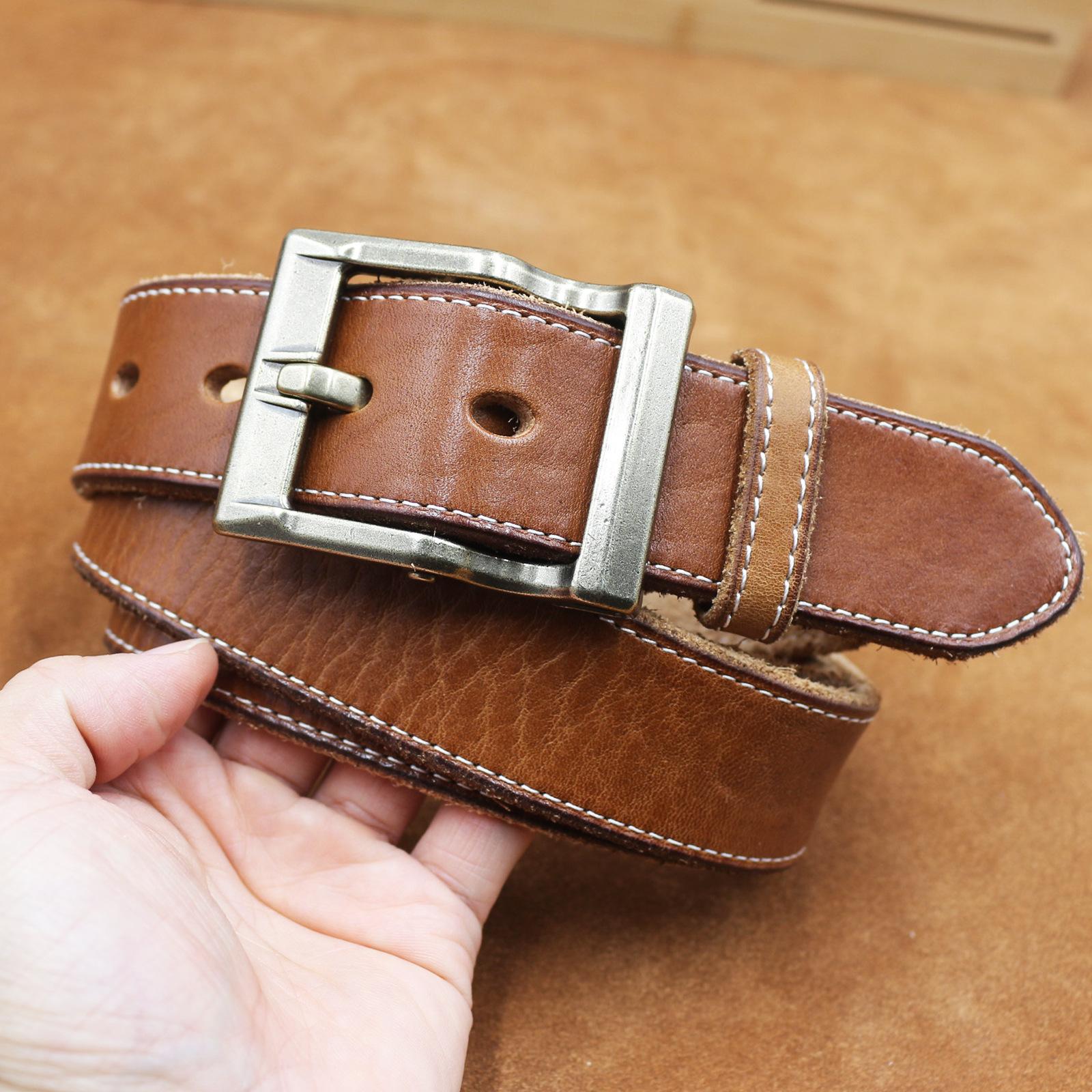 Cinto vintage 100% couro de vaca de primeira camada costurado à mão, couro lavado à água, cinto de lazer empresarial, design criativo, moderno, masculino