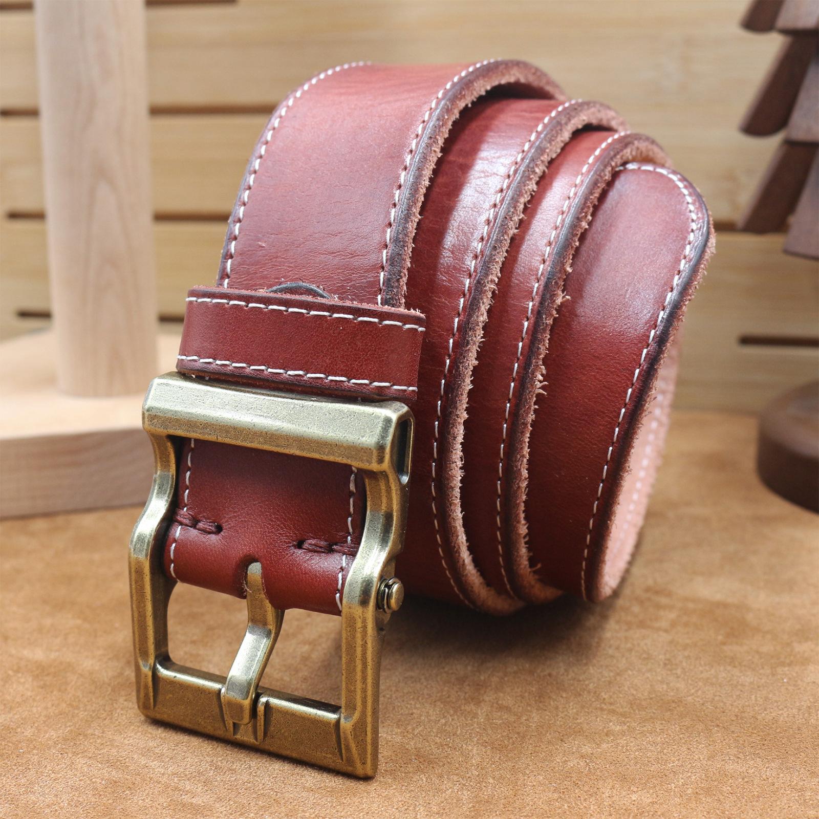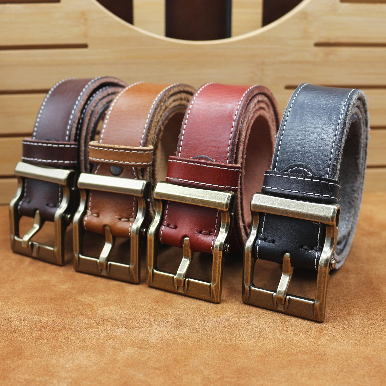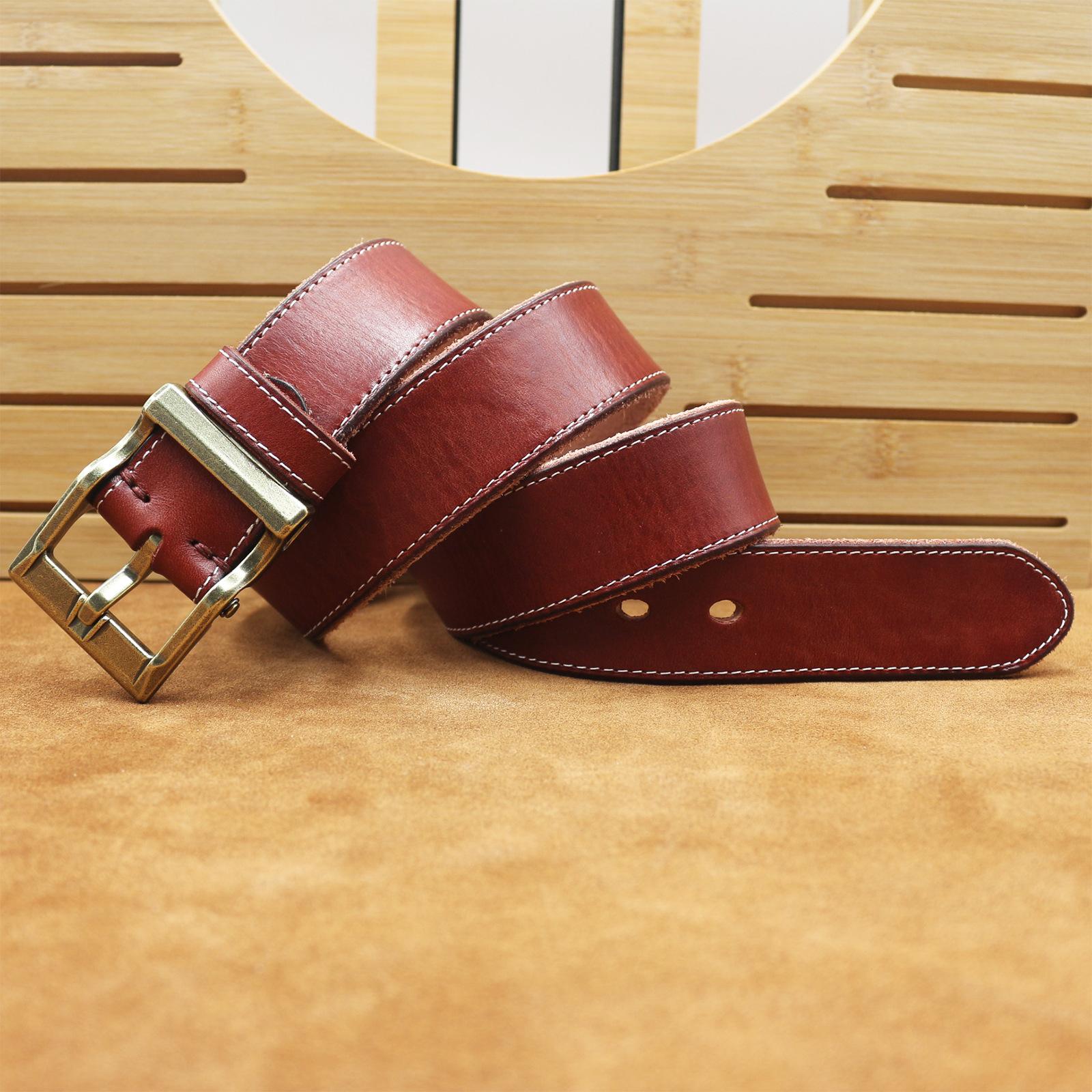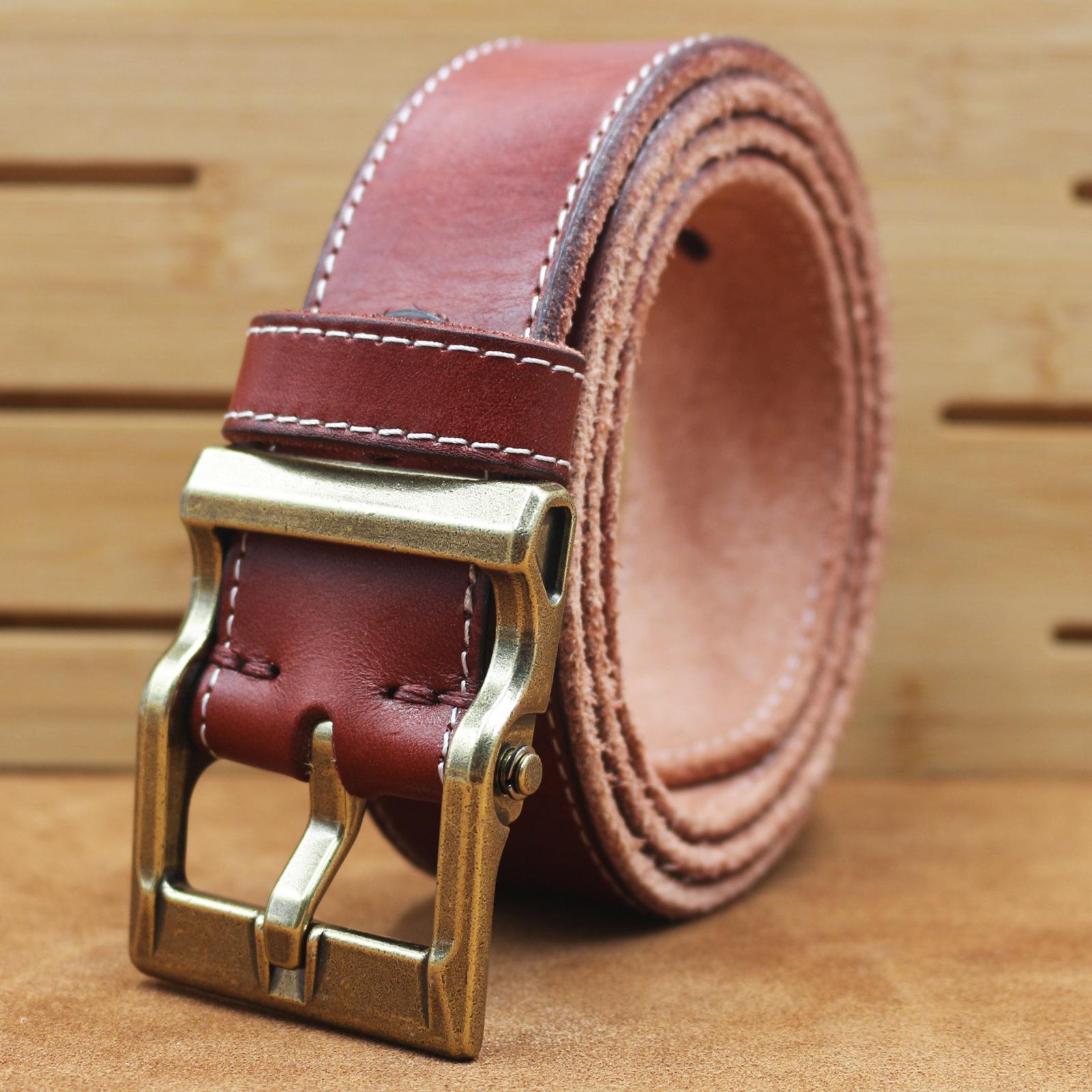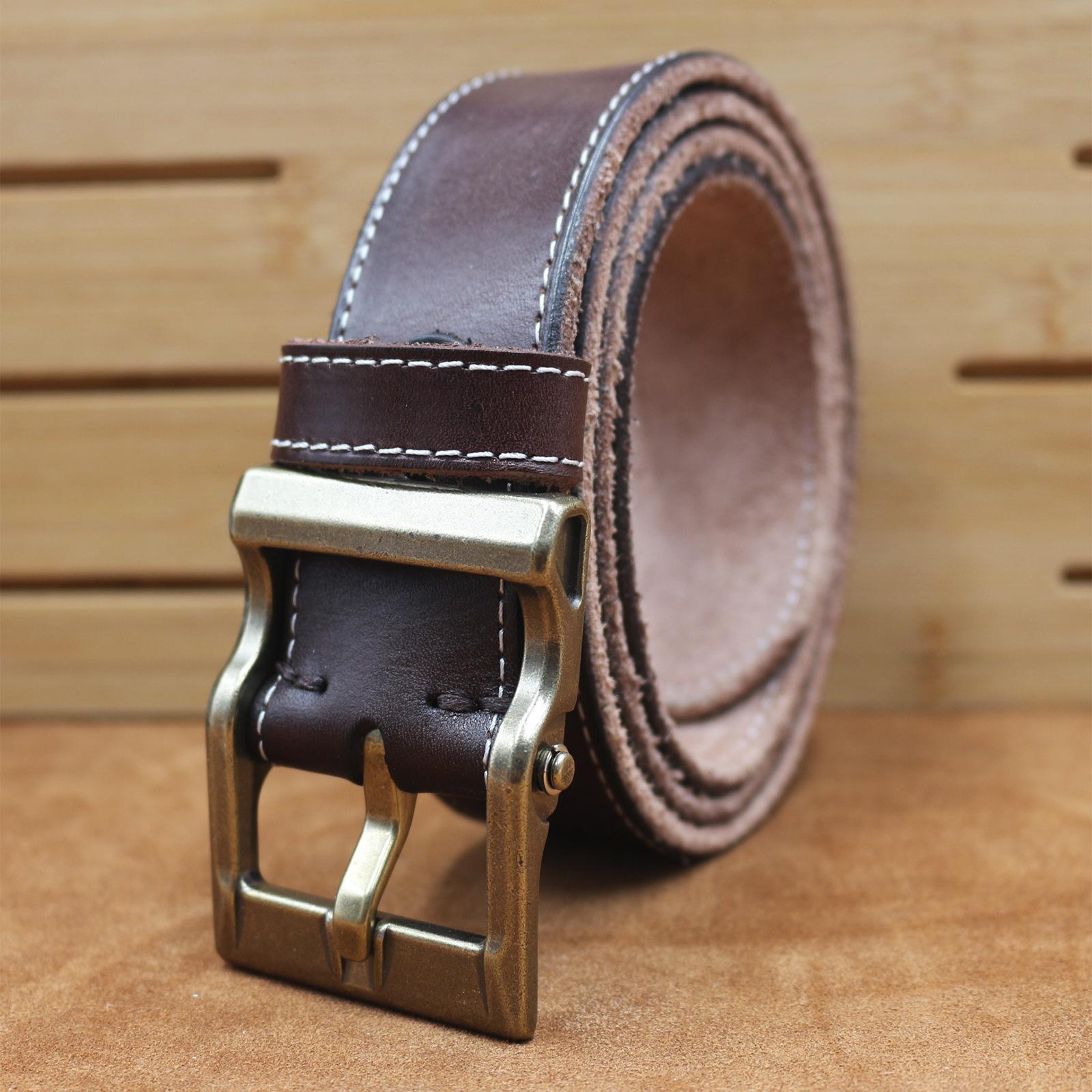 Cinto vintage 100% couro de vaca de primeira camada costurado à mão, couro lavado à água, cinto de lazer empresarial, design criativo, moderno, masculino