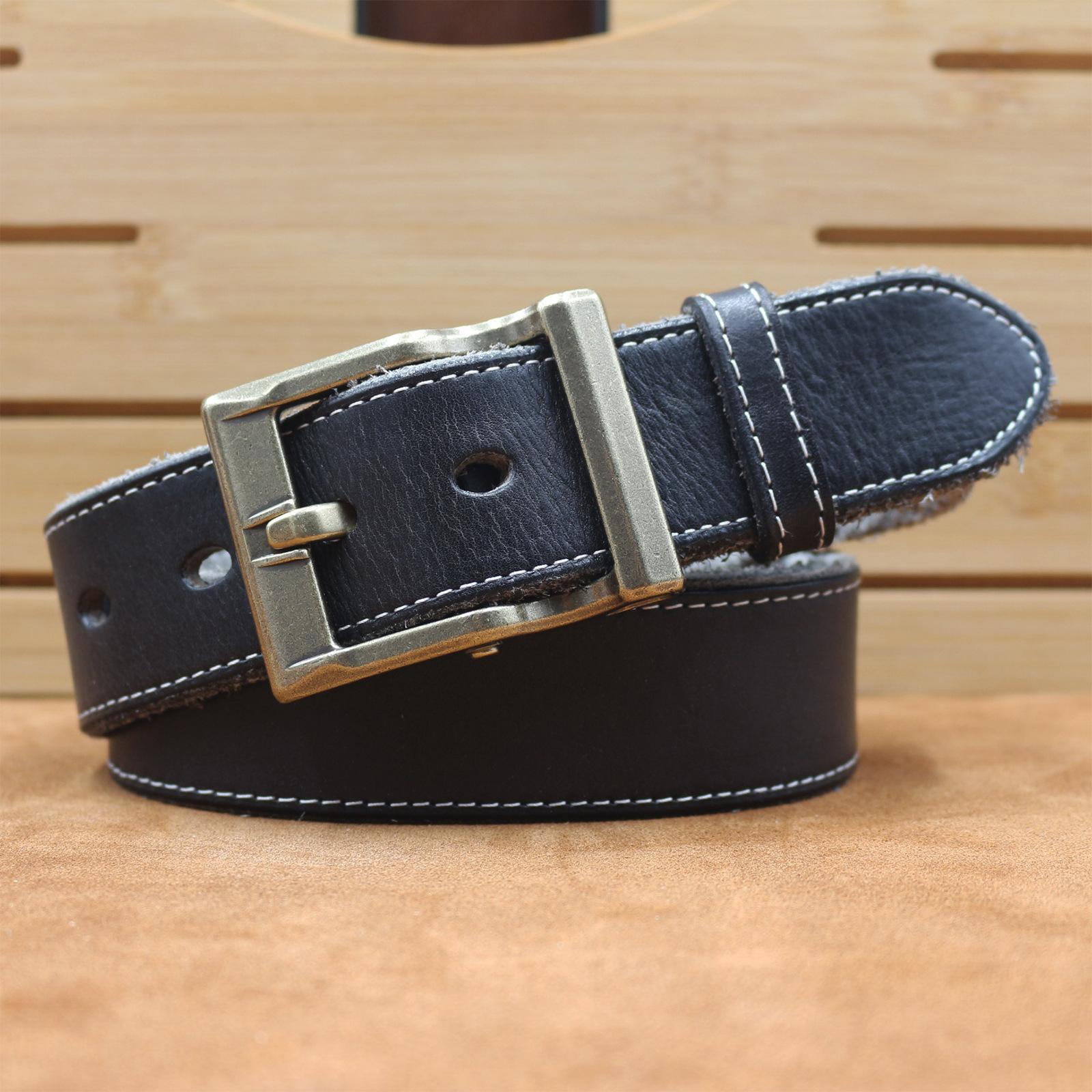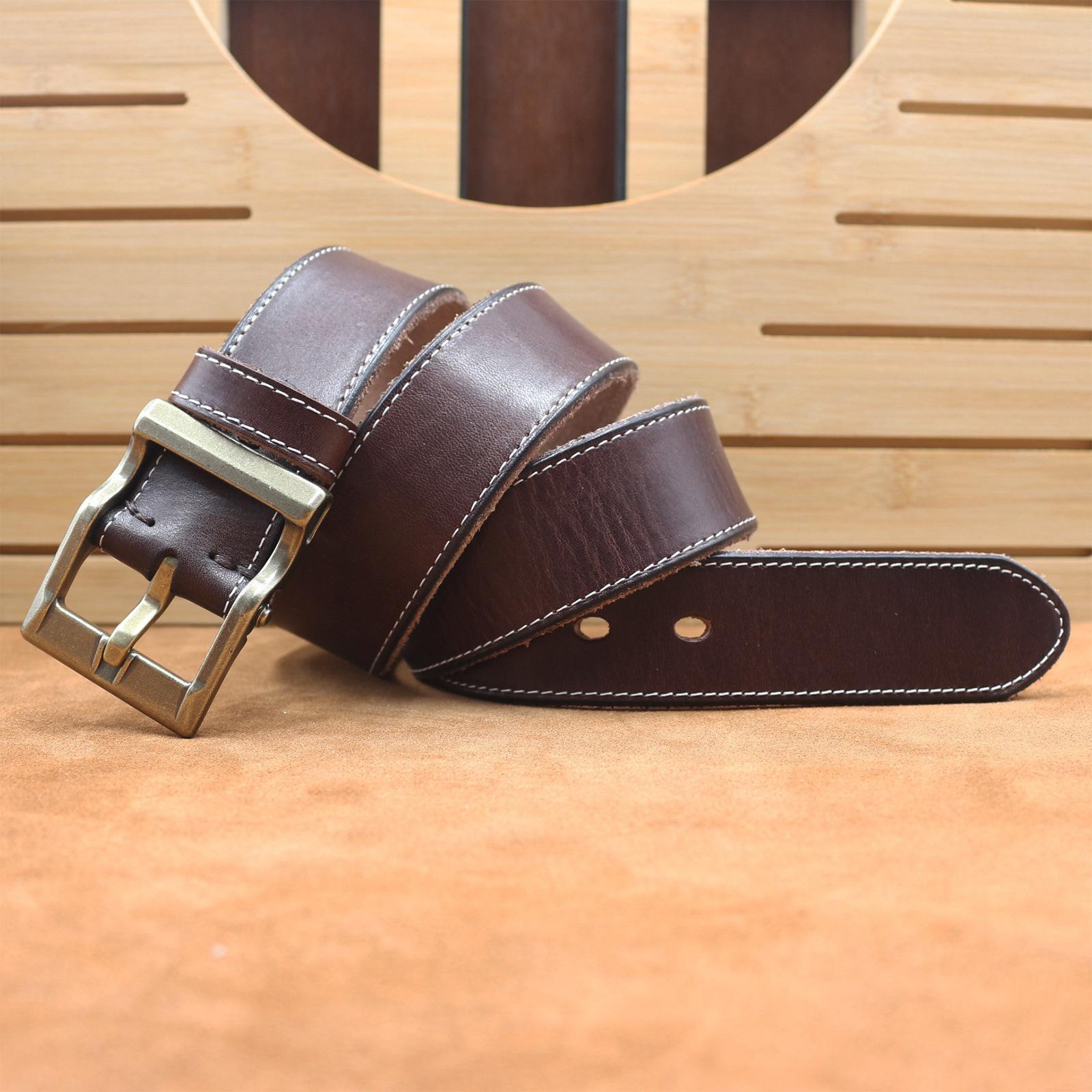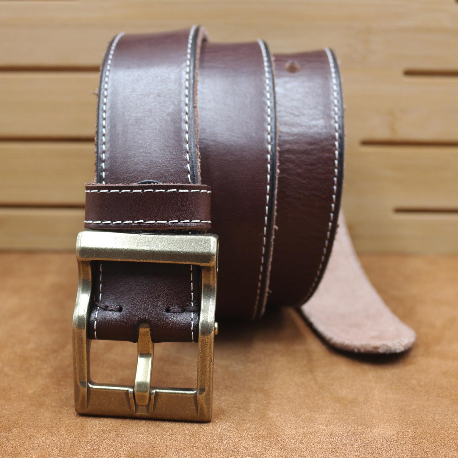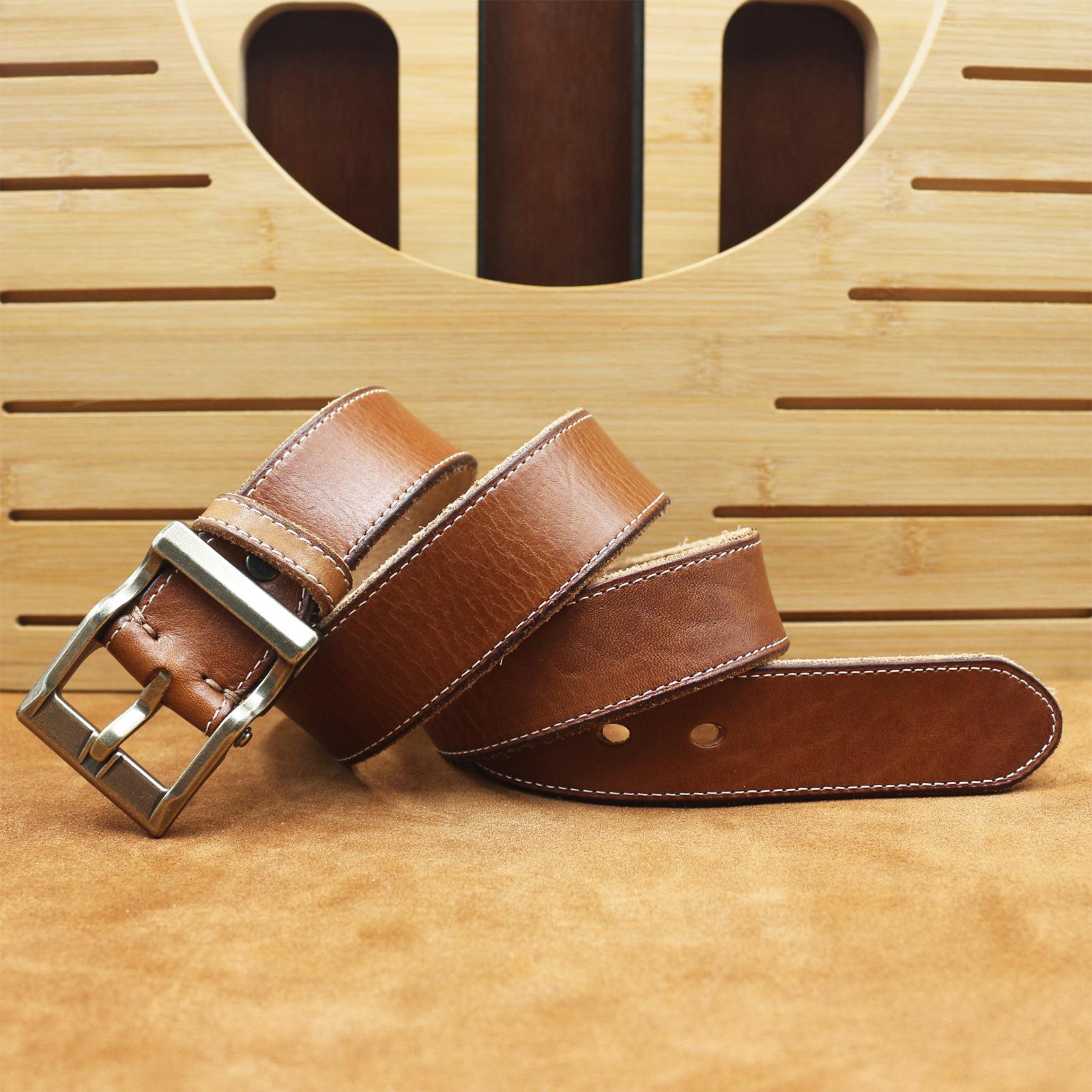 Cinto vintage 100% couro de vaca de primeira camada costurado à mão, couro lavado à água, cinto de lazer empresarial, design criativo, moderno, masculino