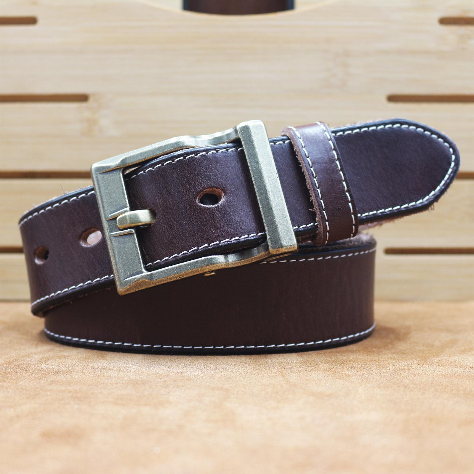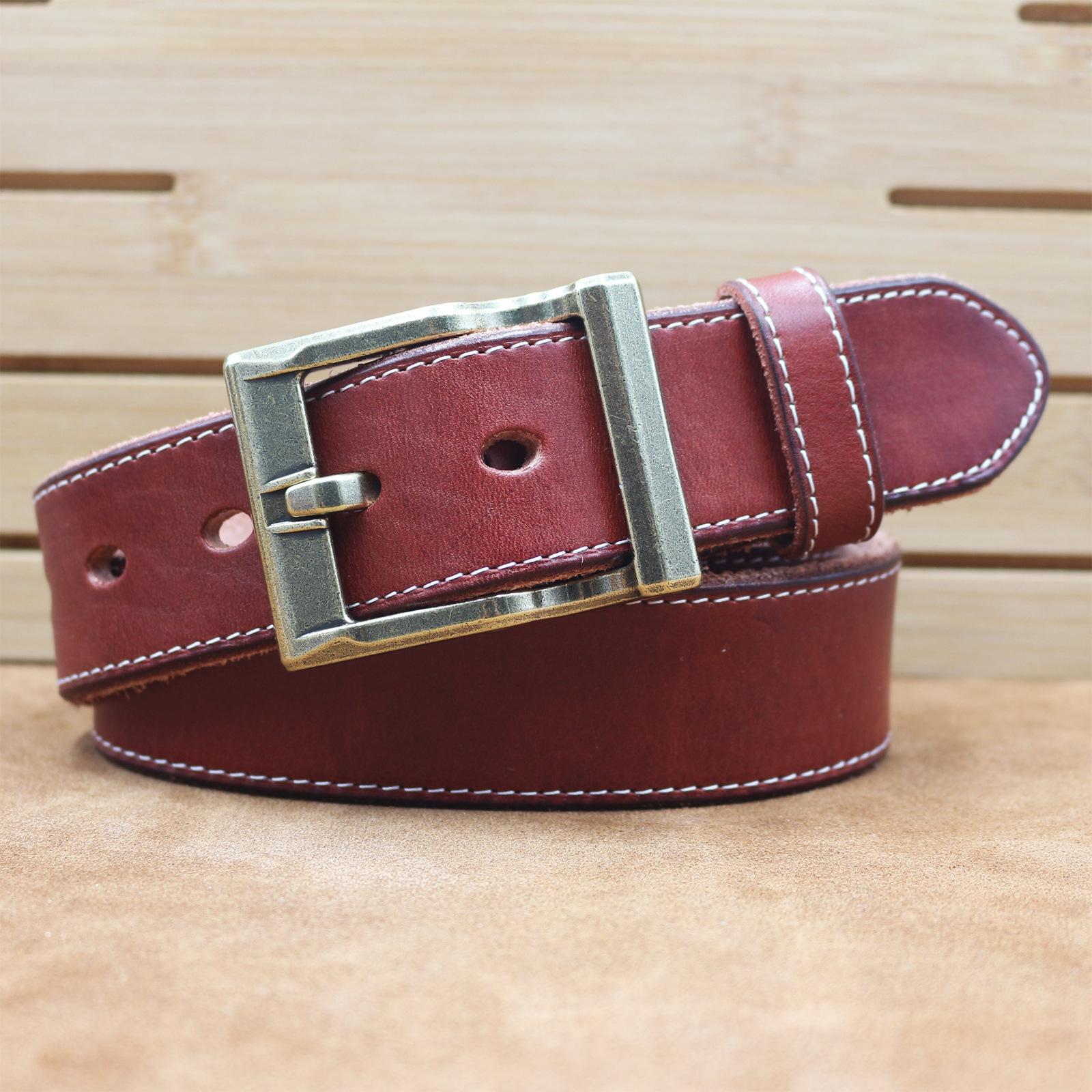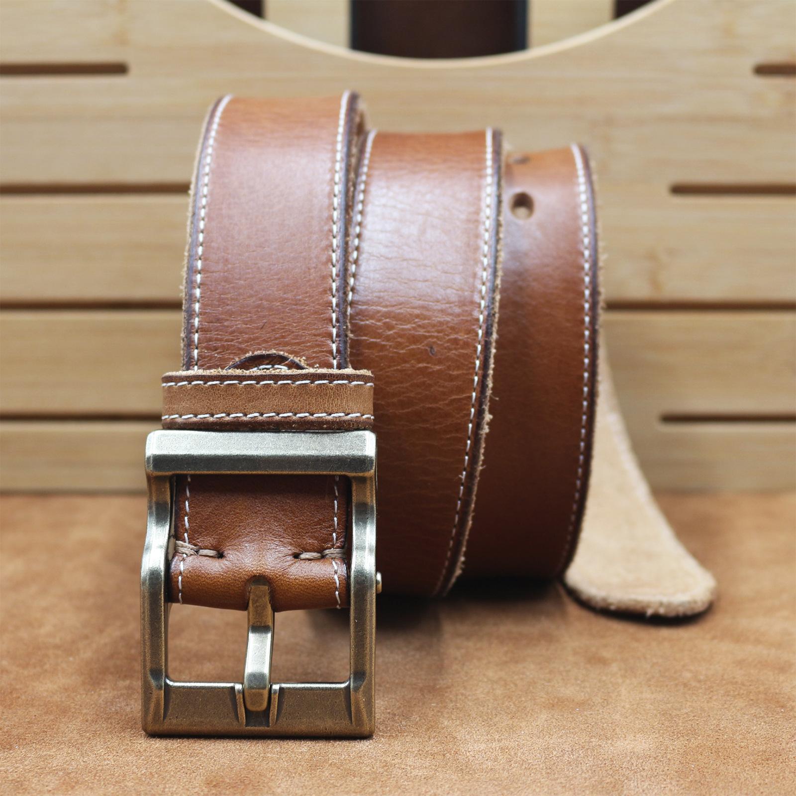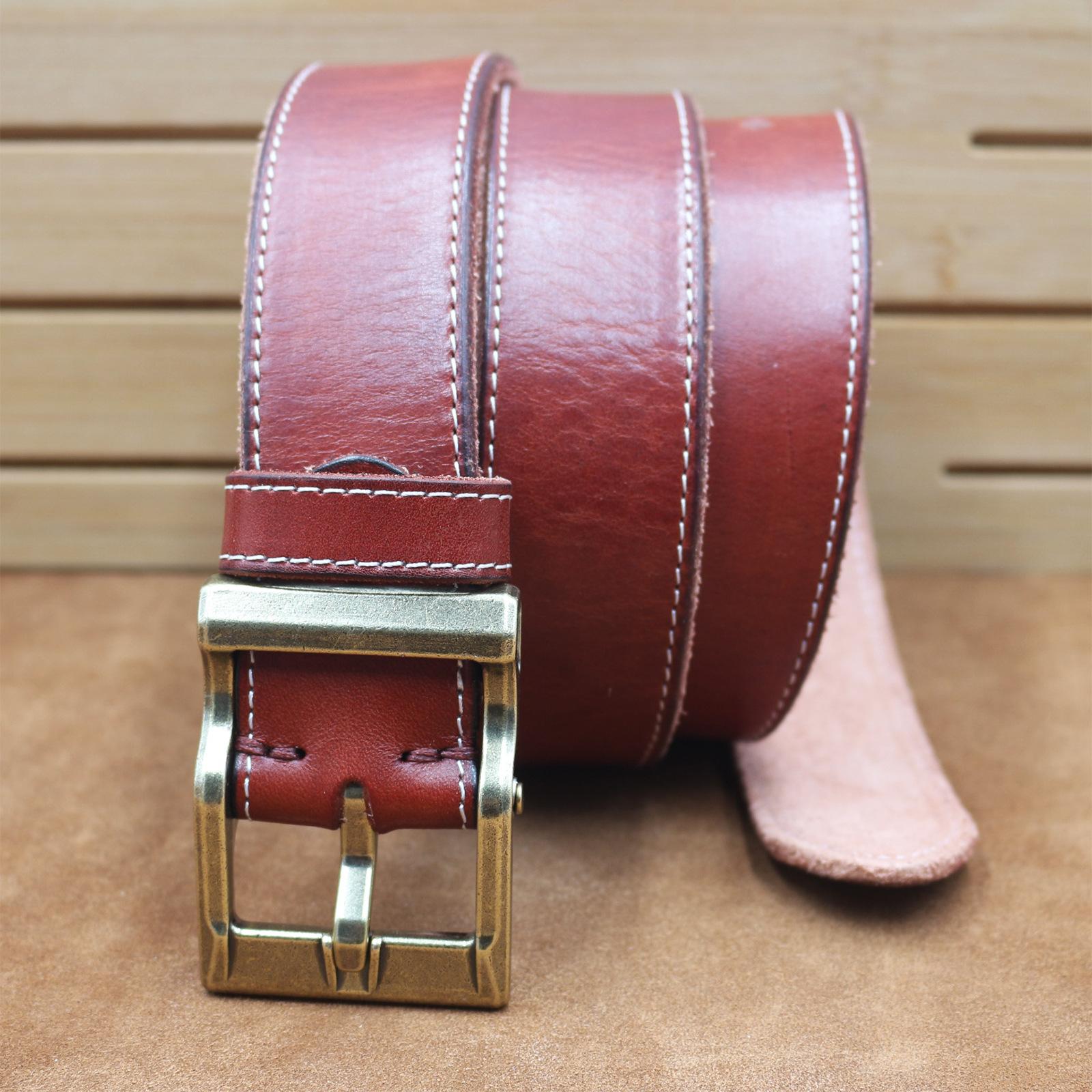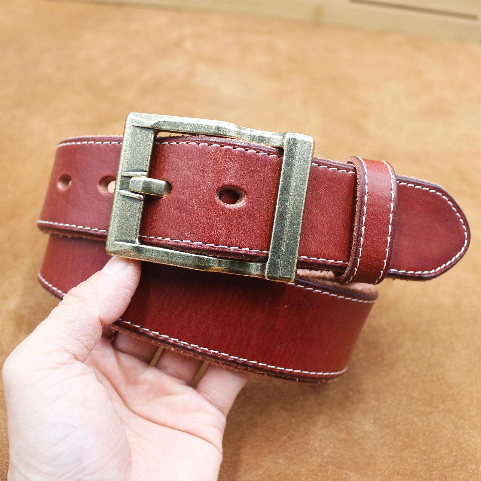 Cinto vintage 100% couro de vaca de primeira camada costurado à mão, couro lavado à água, cinto de lazer empresarial, design criativo, moderno, masculino