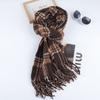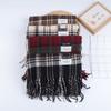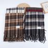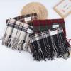 Cachecol Xadrez para Mulheres, Estilo Outono e Inverno, Franja Vintage, Espessado, Quente, Versátil, Estudante Versão Coreana, Aquecedor de Pescoço, Xale, Caxemira Falsa