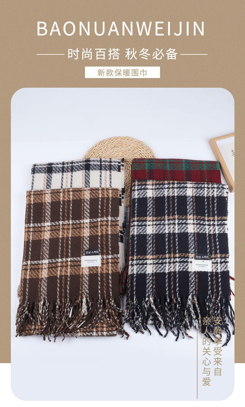 Compre Cachecol Xadrez para Mulheres, Estilo Outono e Inverno, Franja Vintage, Espessado, Quente, Versátil, Estudante Versão Coreana, Aquecedor de Pescoço, Xale, Caxemira Falsa no atacado no Joom.pro