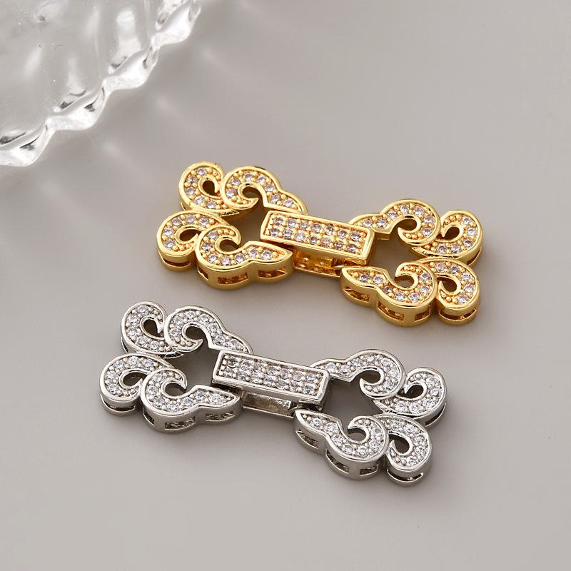 Colar de pérolas de preservação de cor 18K banhado a cobre Fivela de zircônio Fivela de conexão de fivela de bobina de mão Fivela de lã Acessórios faça você mesmo