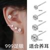 S999 Brincos de Prata Esterlina Quatro Garras Femininos Simples Elegantes Leves Luxo High-end Sense Brincos Pé Prata Femininos Brincos Antibloqueio de Pólo de Orelha