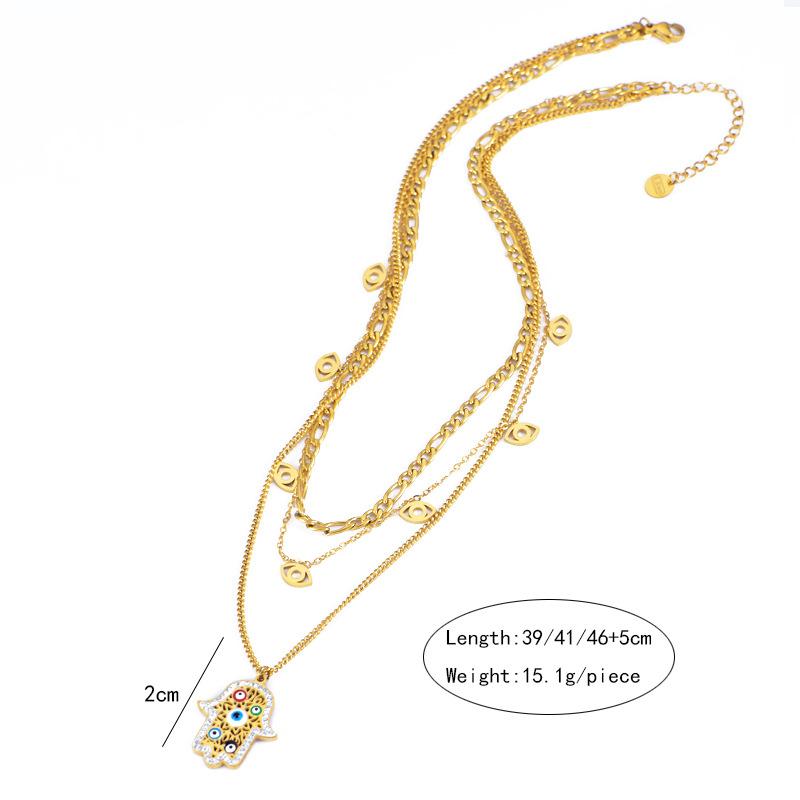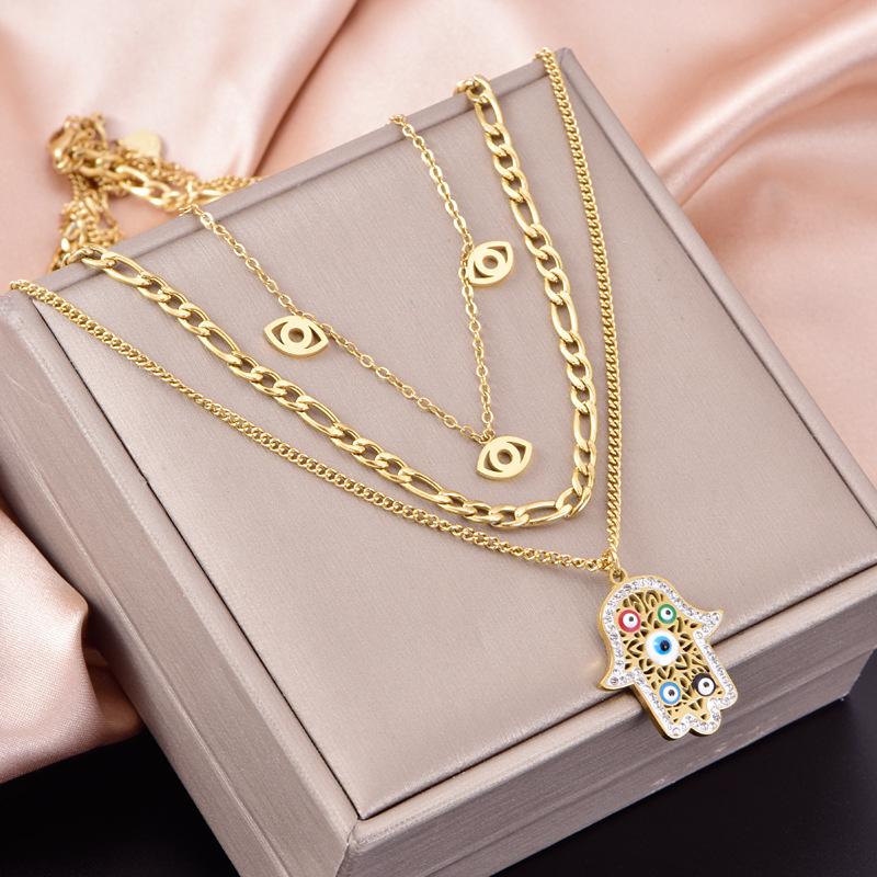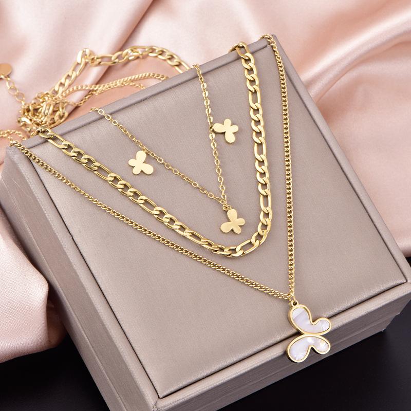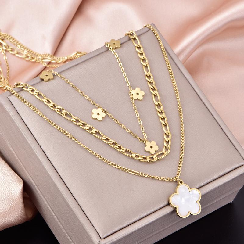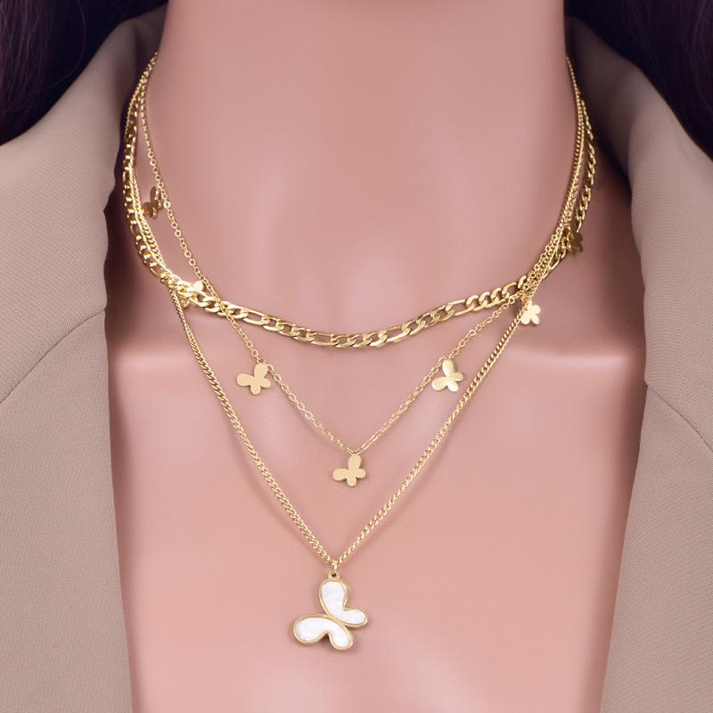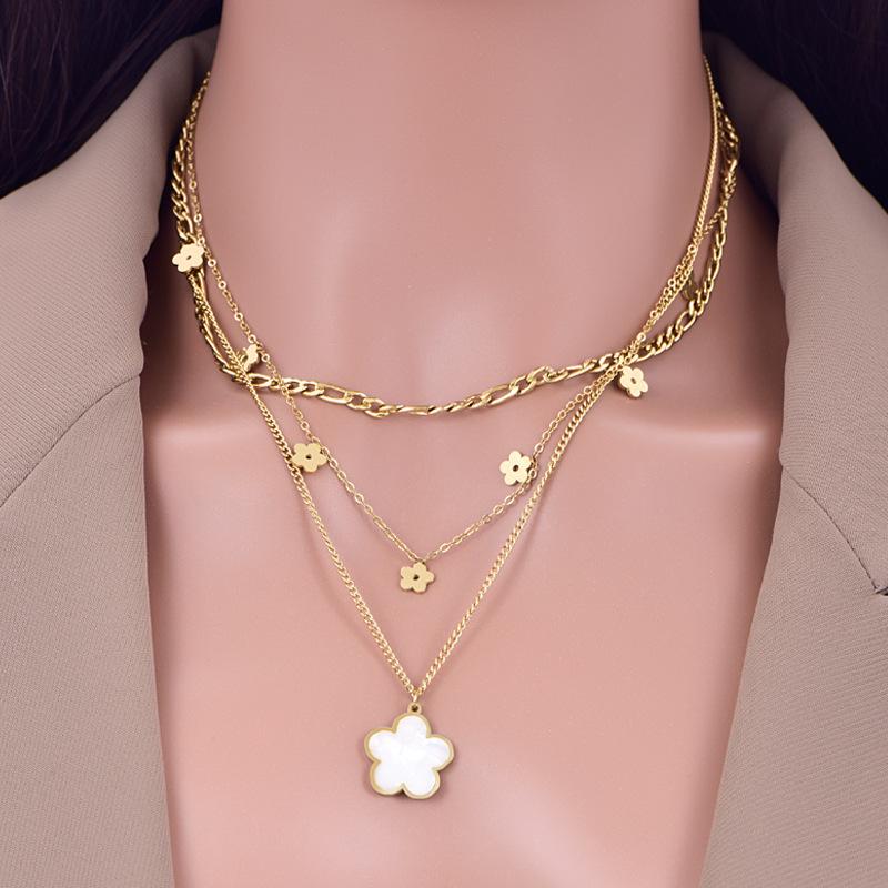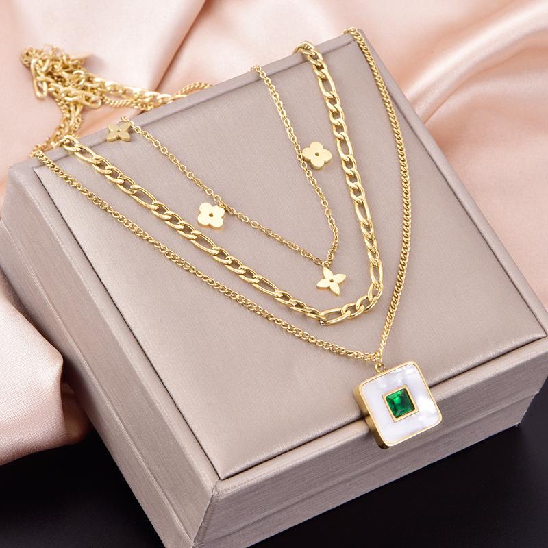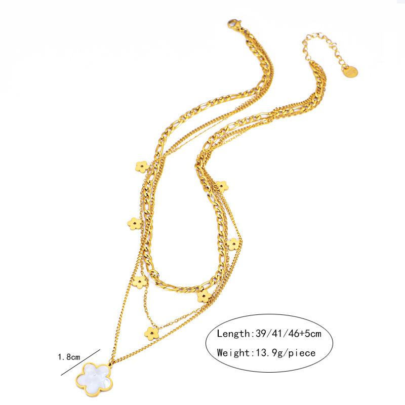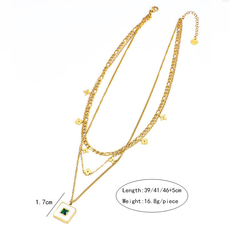 Compre Corrente de suéter dobrada de três camadas de alta qualidade, concha branca, quadrado, joias de borboleta, flor, diamante, palma, clavícula, colar no atacado no Joom.pro