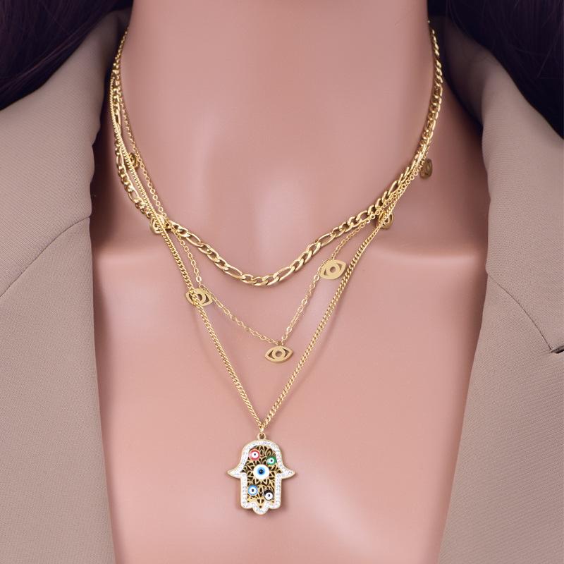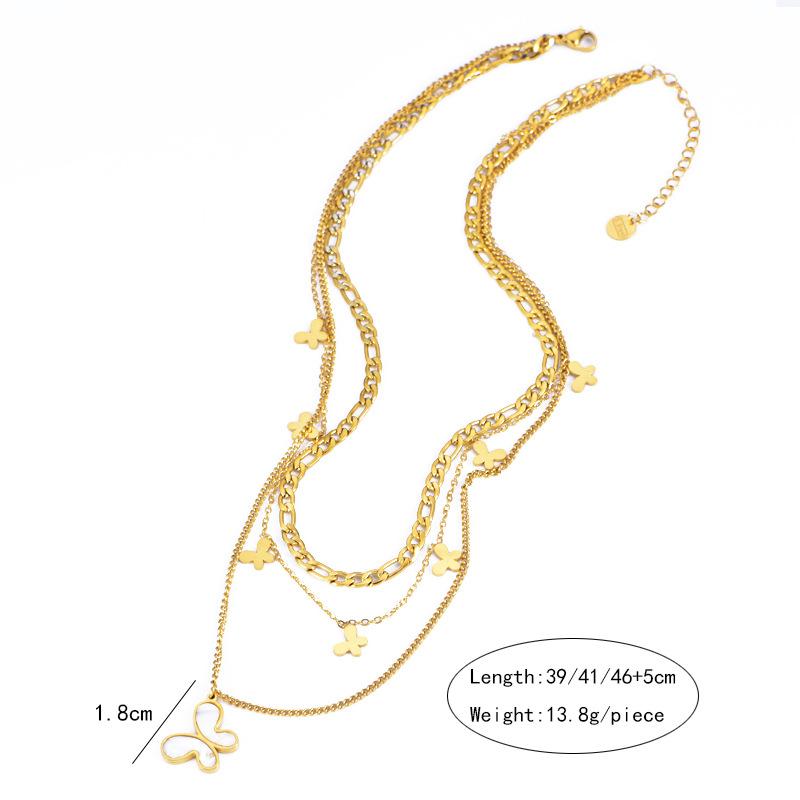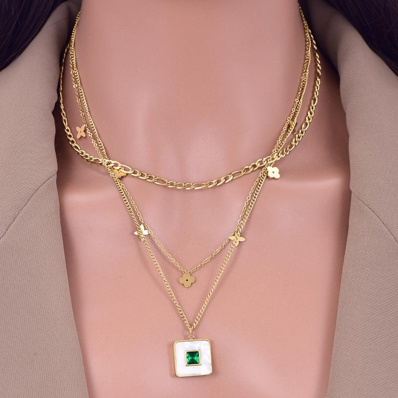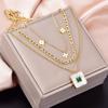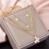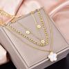 Corrente de suéter dobrada de três camadas de alta qualidade, concha branca, quadrado, joias de borboleta, flor, diamante, palma, clavícula, colar
