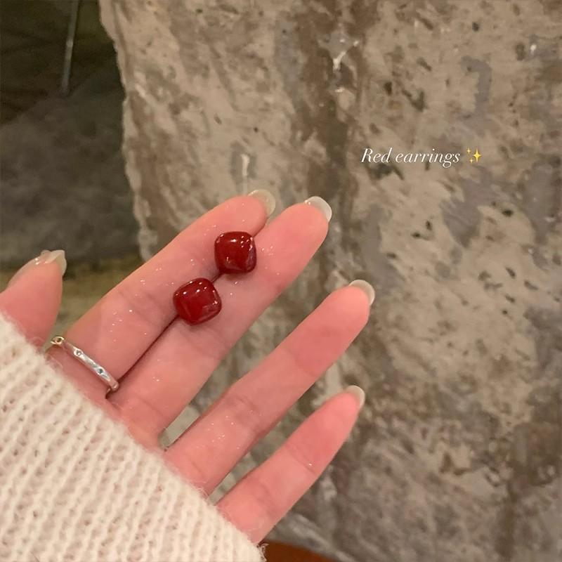 Champagne Sugar Stud Earrings, Red sugar stud earrings