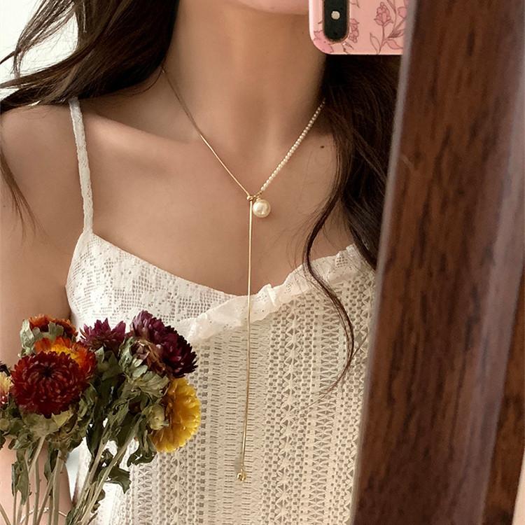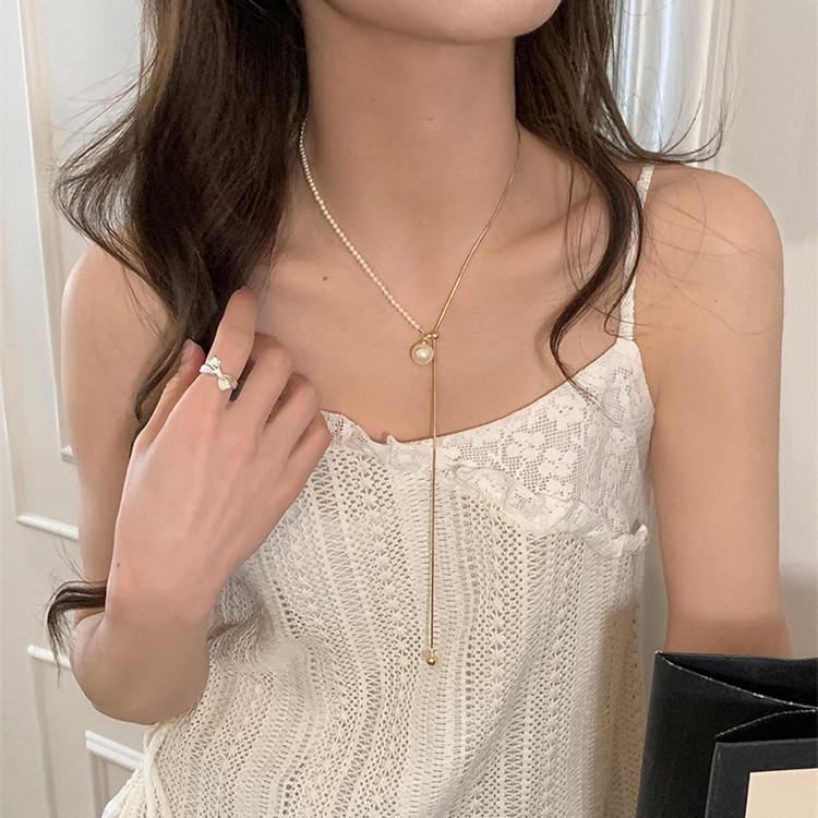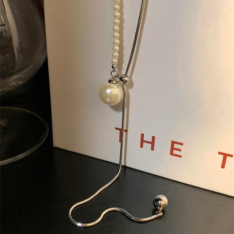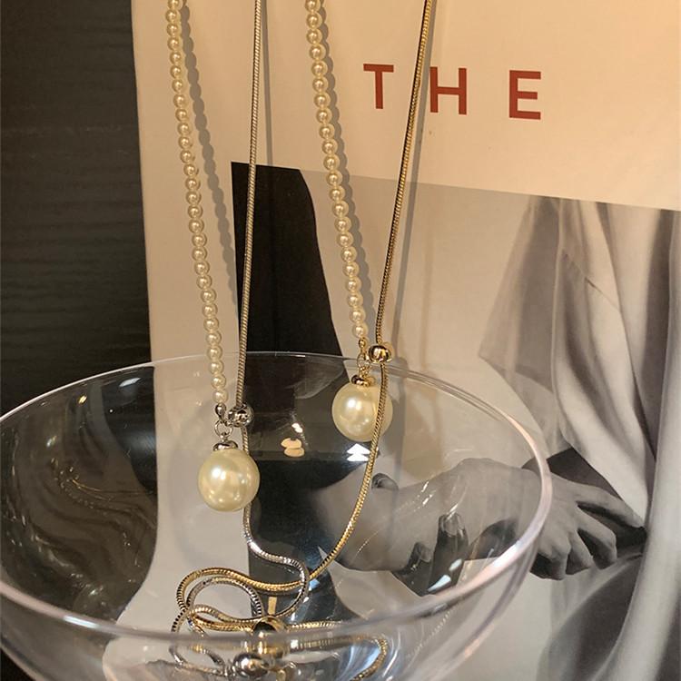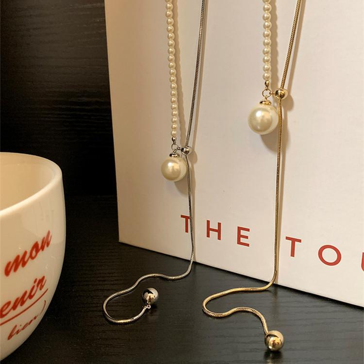 Compre Puxador de Pérola Osso de Cobra Corrente Leve Luxo Nicho High-end Colar Longo Simples All-match Elegante Colar Colar Corrente de Lã no atacado no Joom.pro
