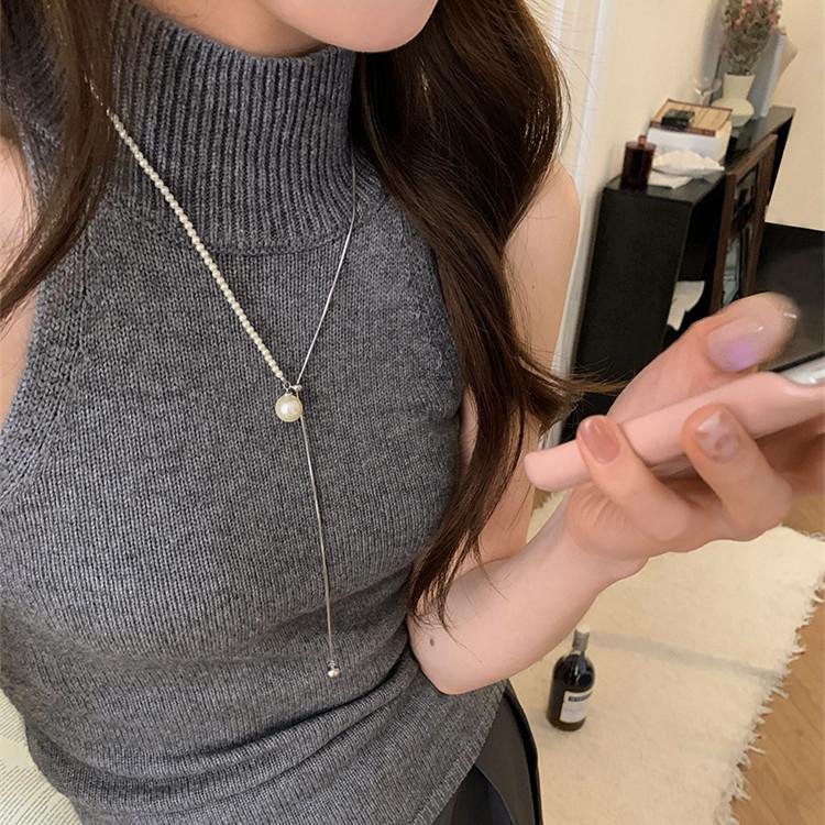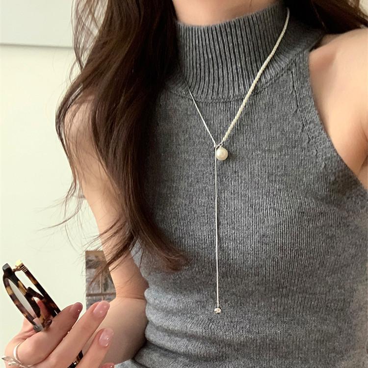 Puxador de Pérola Osso de Cobra Corrente Leve Luxo Nicho High-end Colar Longo Simples All-match Elegante Colar Colar Corrente de Lã