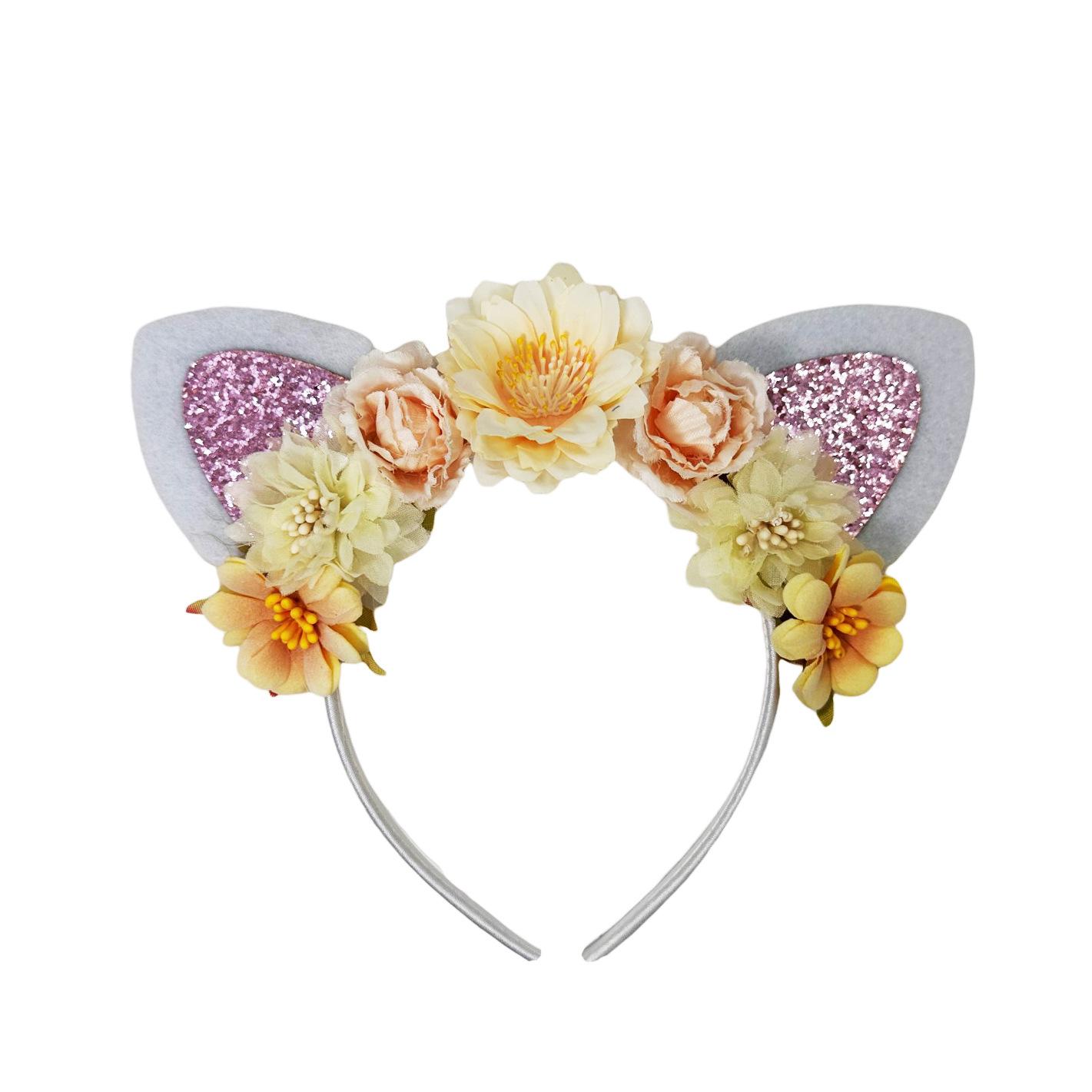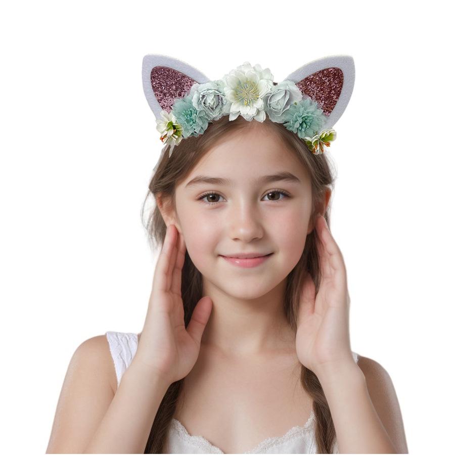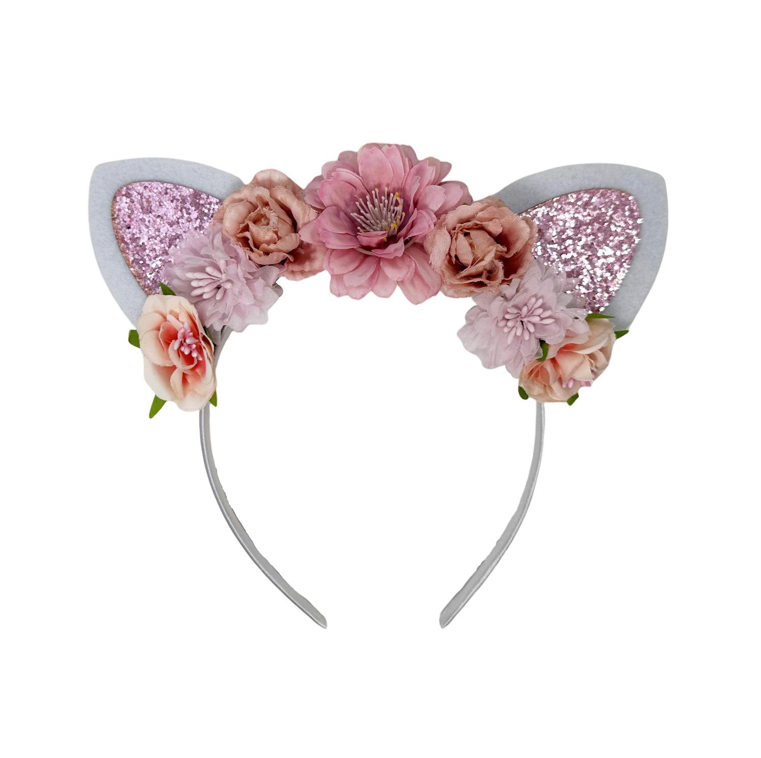 Europeu e americano novo estilo orelhas de gato flor artificial faixa de cabeça fantasma festival acessórios para cabelo festa princesa faixa de cabeça halloween carnaval headwear