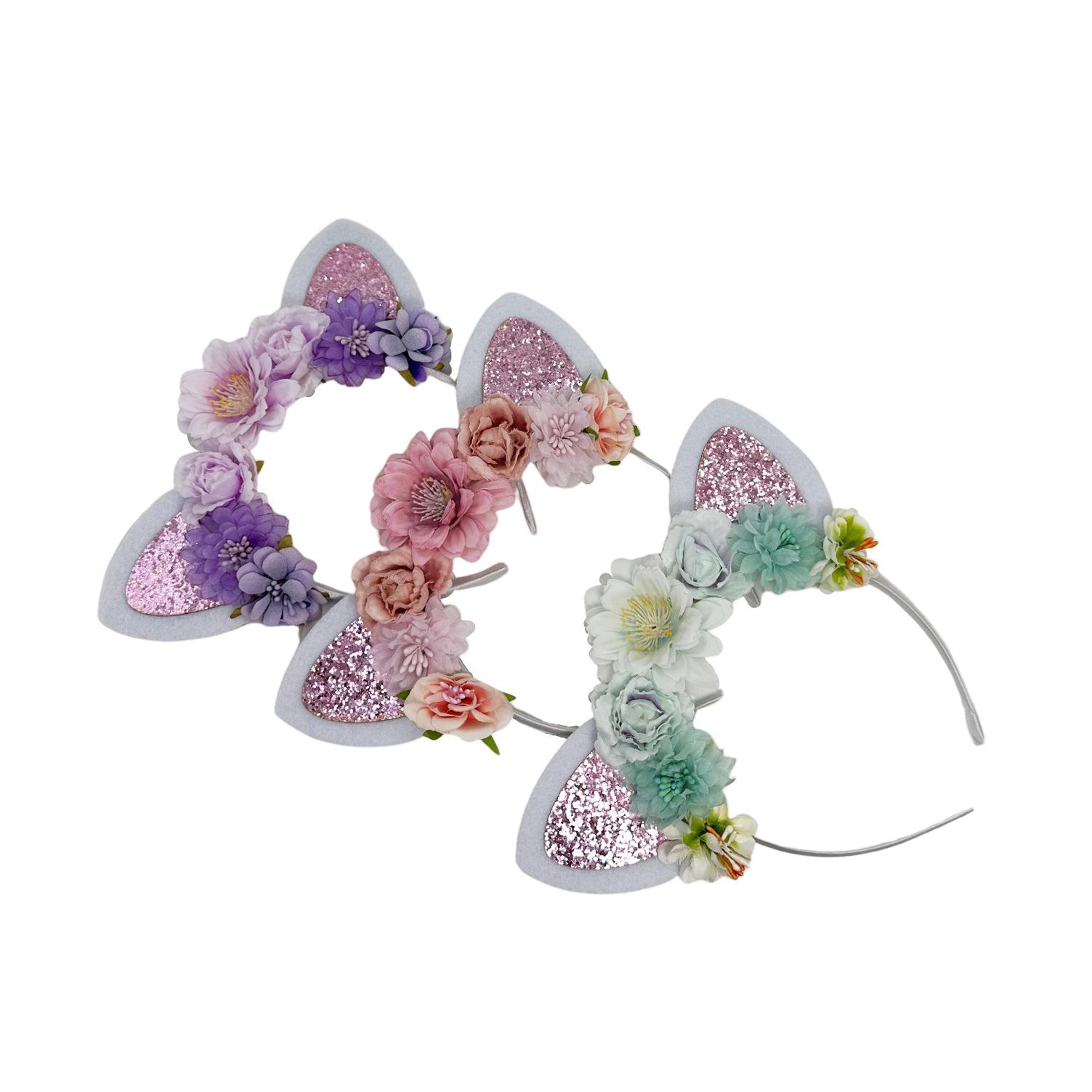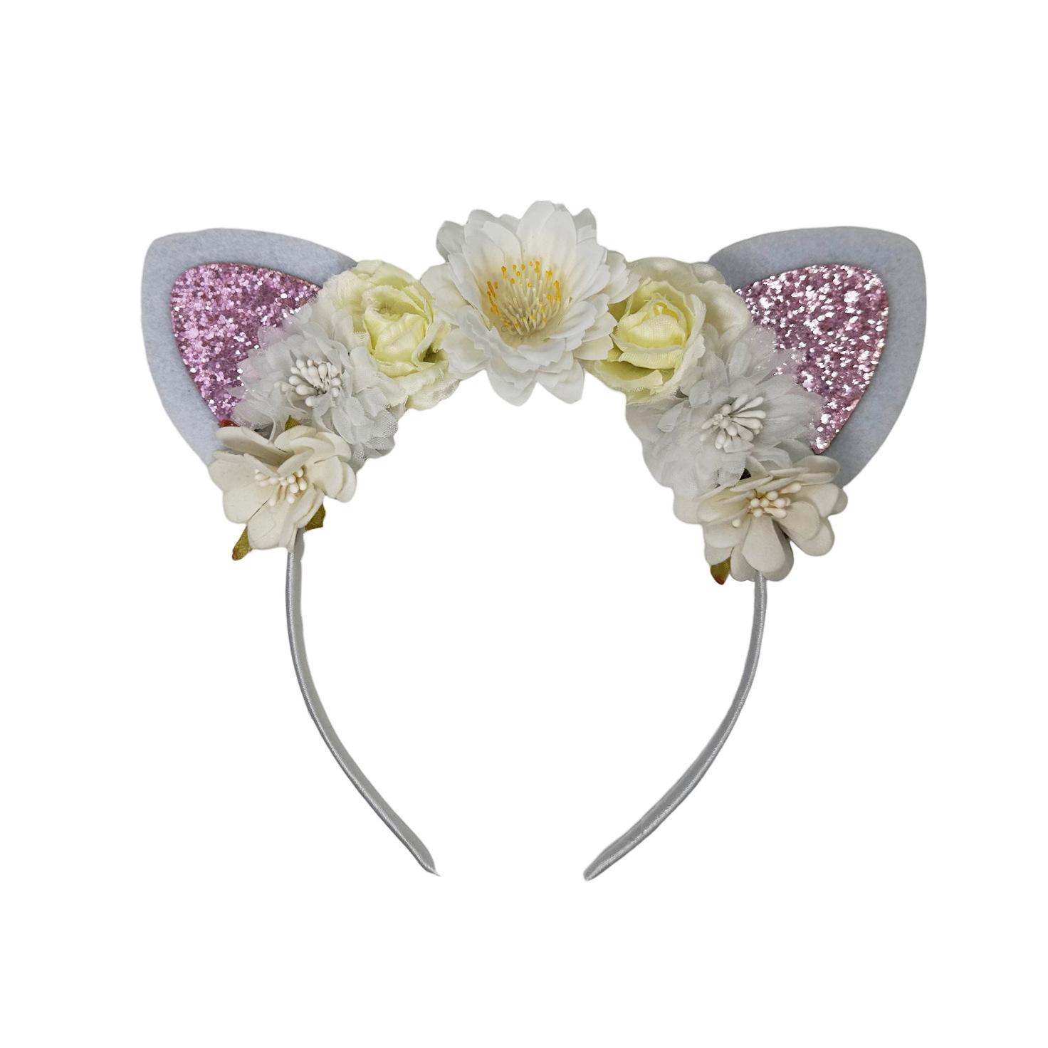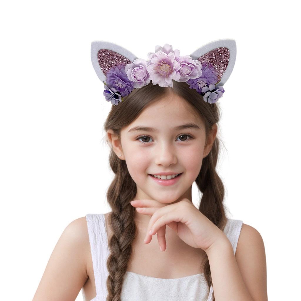 Europeu e americano novo estilo orelhas de gato flor artificial faixa de cabeça fantasma festival acessórios para cabelo festa princesa faixa de cabeça halloween carnaval headwear