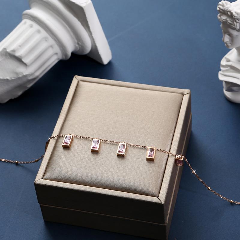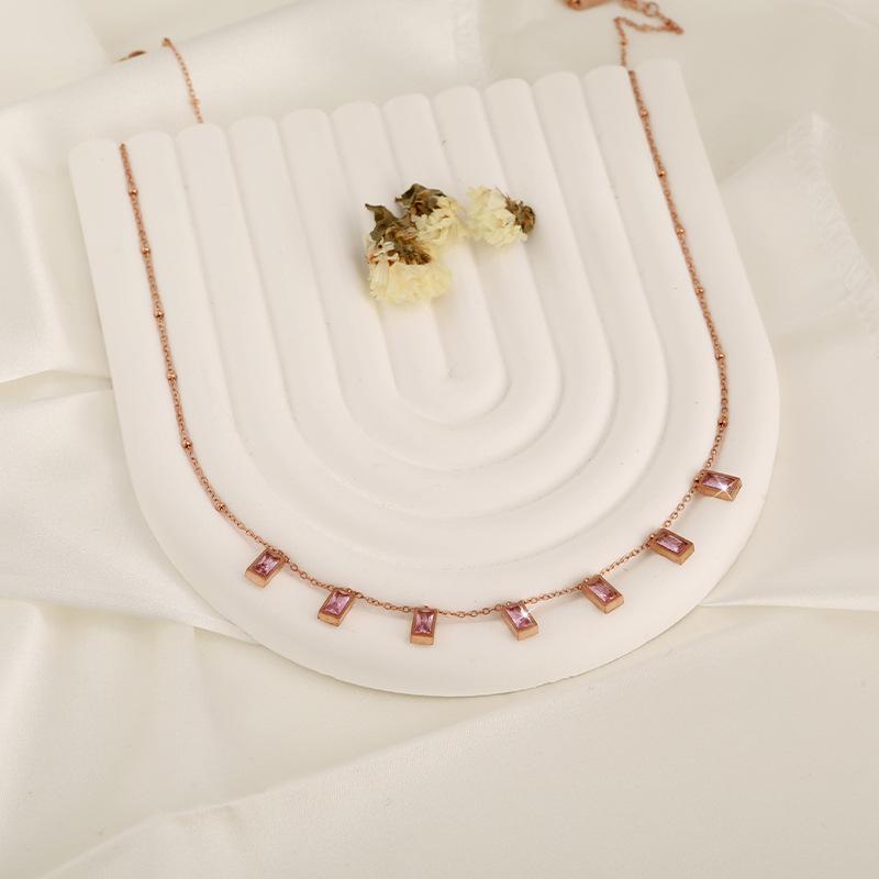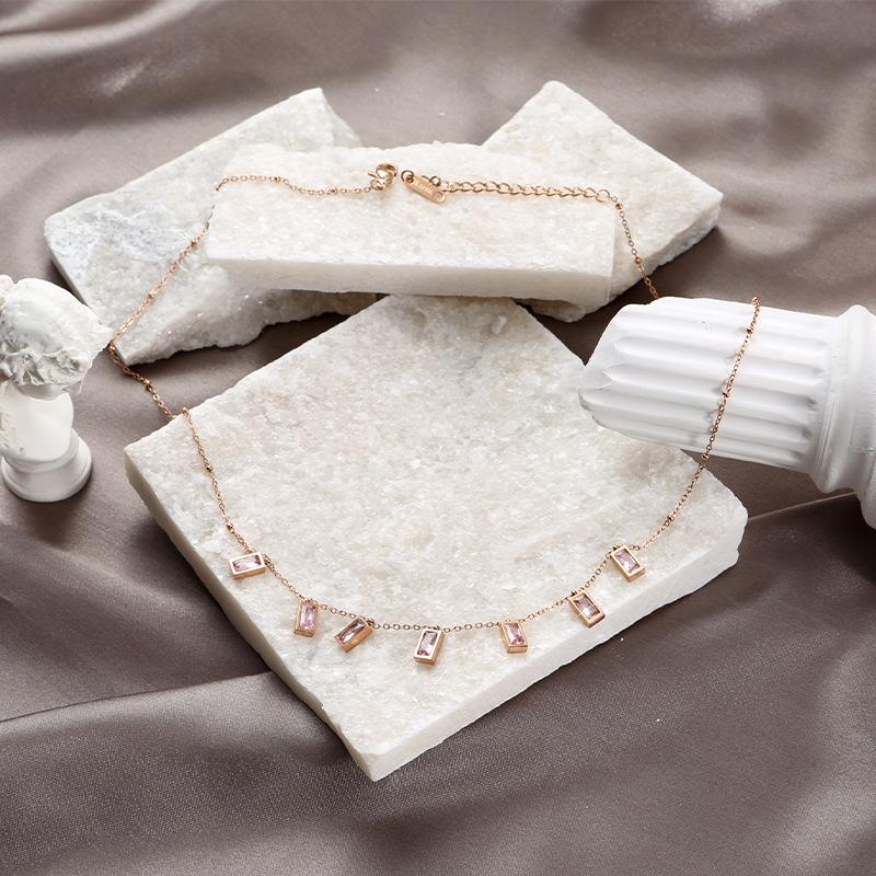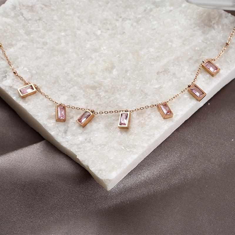 Colar de zircônia colorida, pequeno, design quadrado, tendência, todos os tipos de correntes para clavícula, banhado a cobre, corrente de ouro real 18K, formato de gota d'água