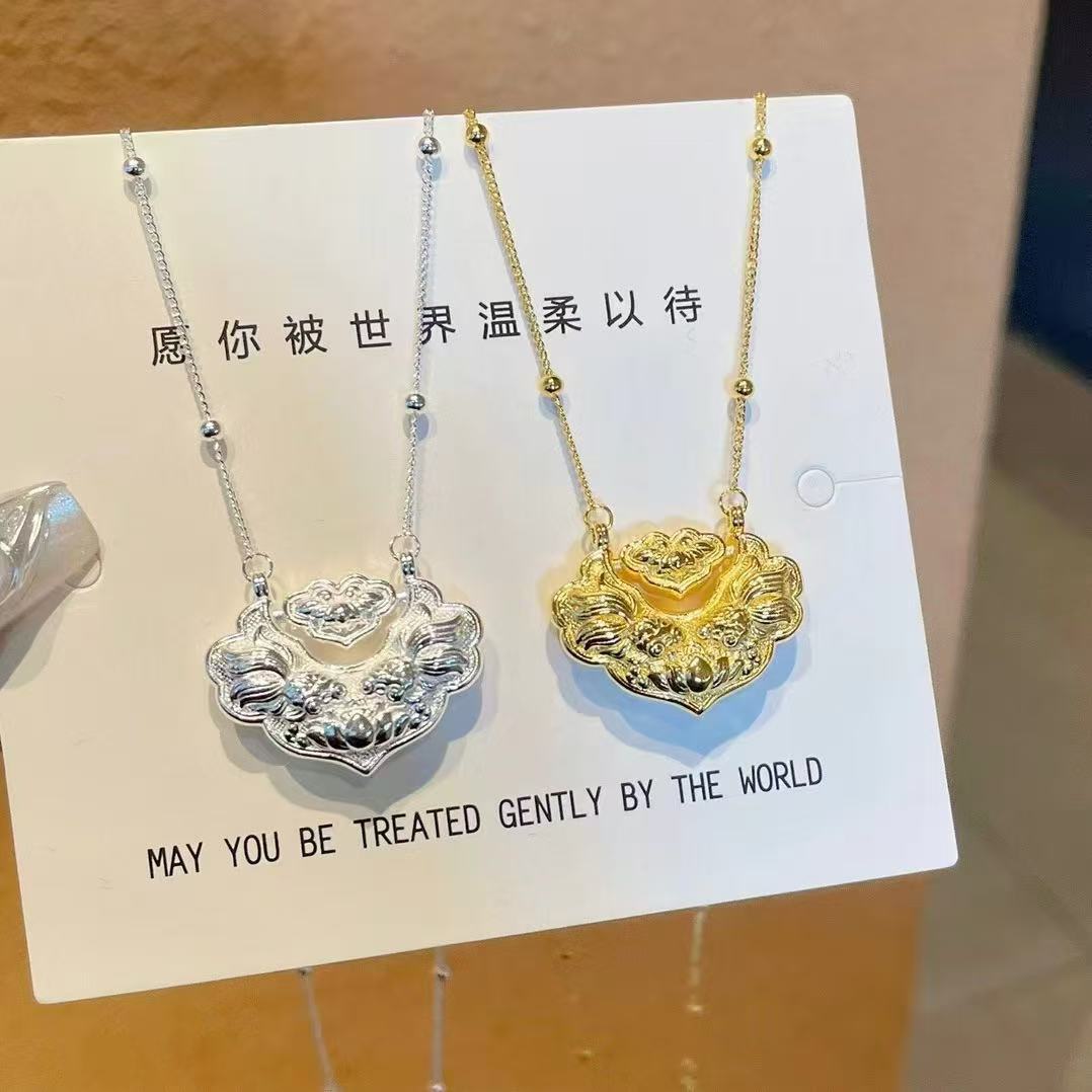 XL297-koi ruyi lock bag necklace "silver], XL297-koi ruyi lock bag necklace [gold color]]