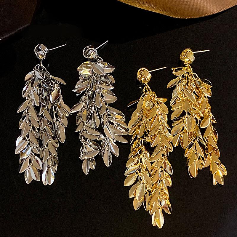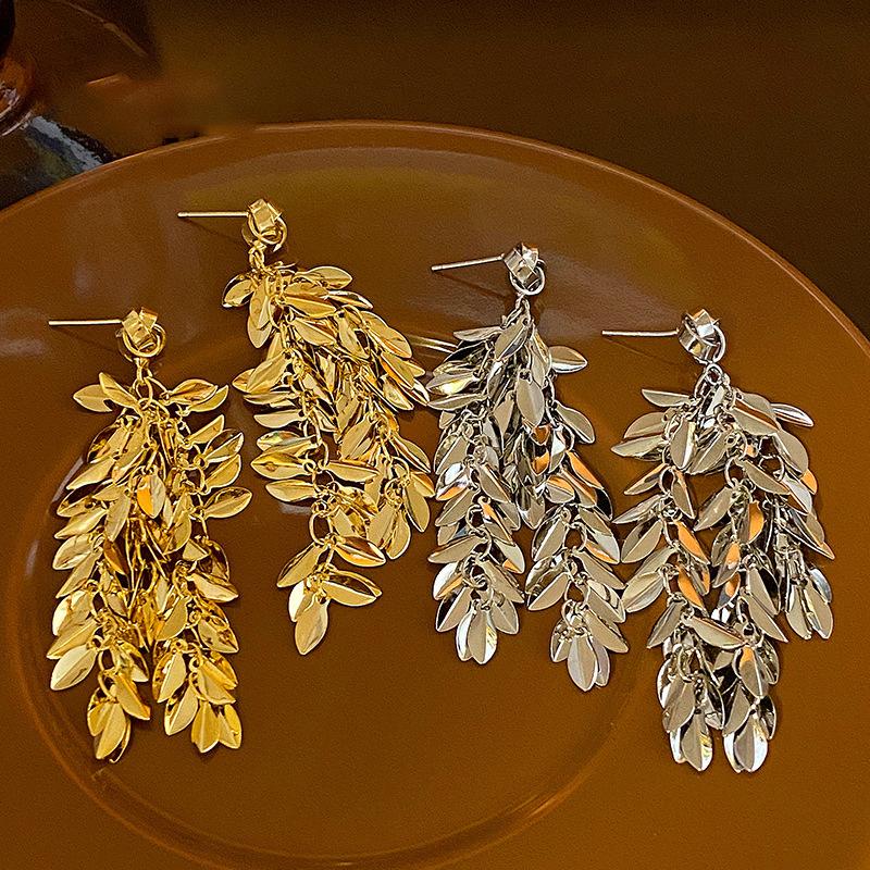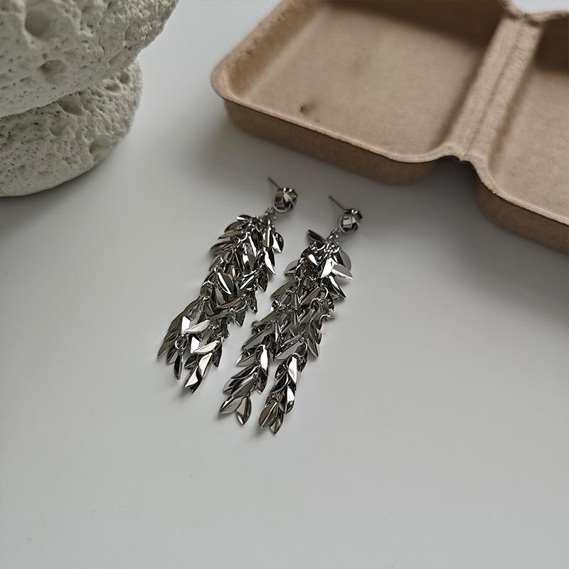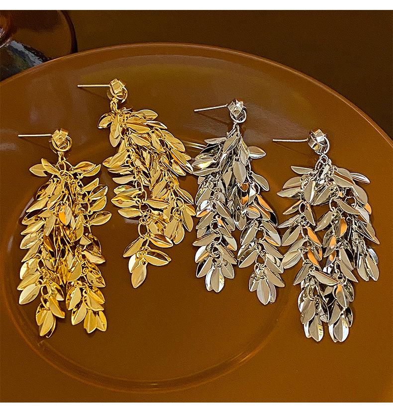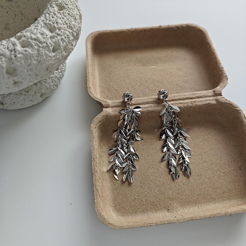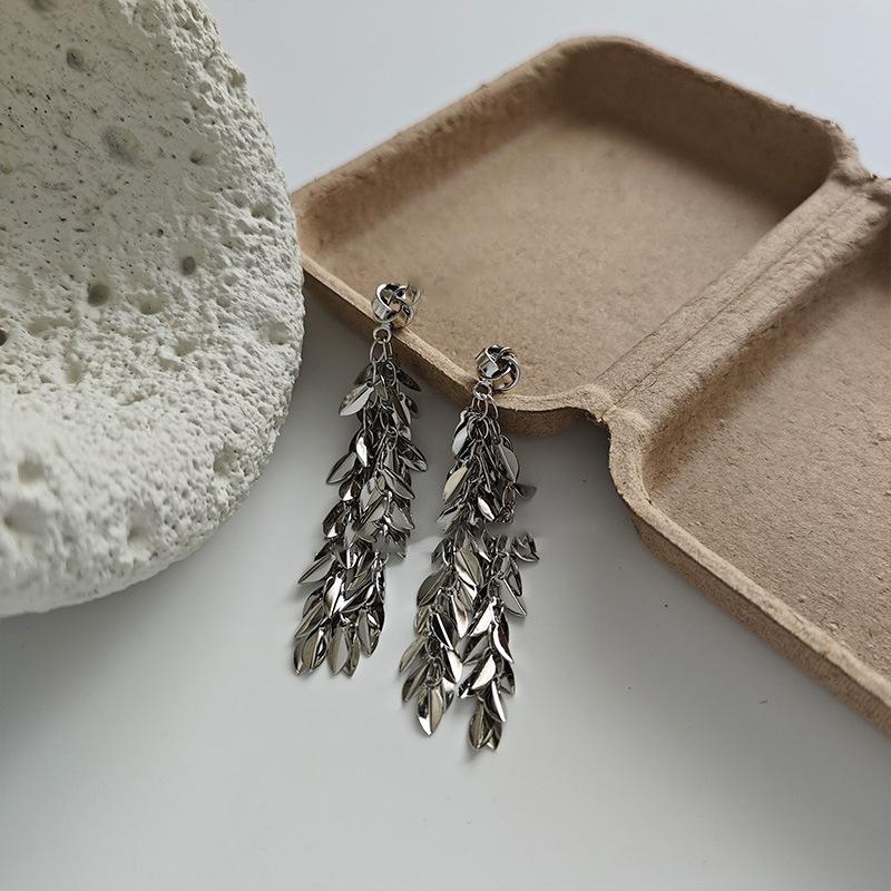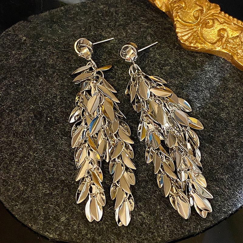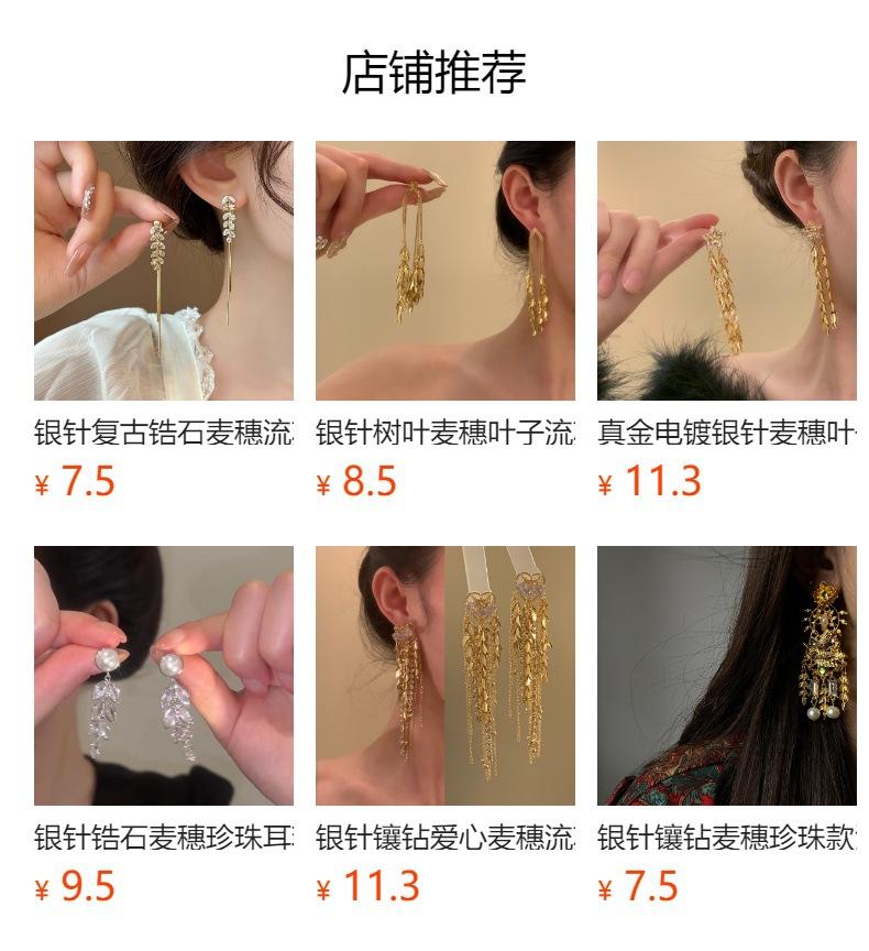 Brincos de borla de trigo redondos com agulha de prata, brincos de personalidade de vento frio europeus e americanos, brincos de temperamento de moda retrô para mulheres