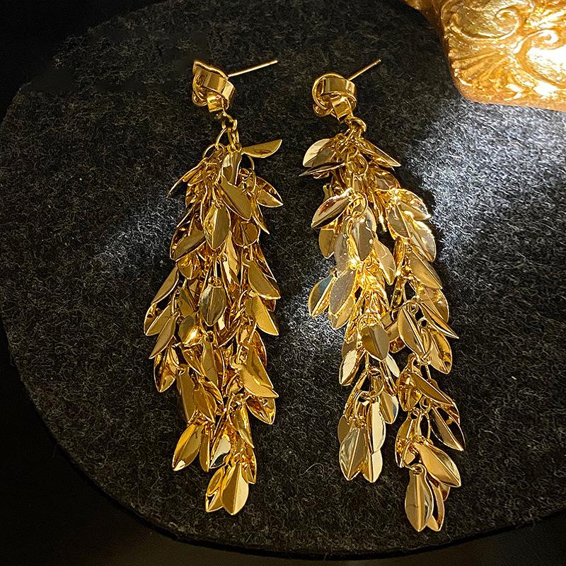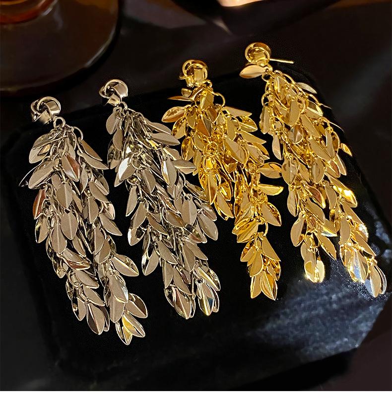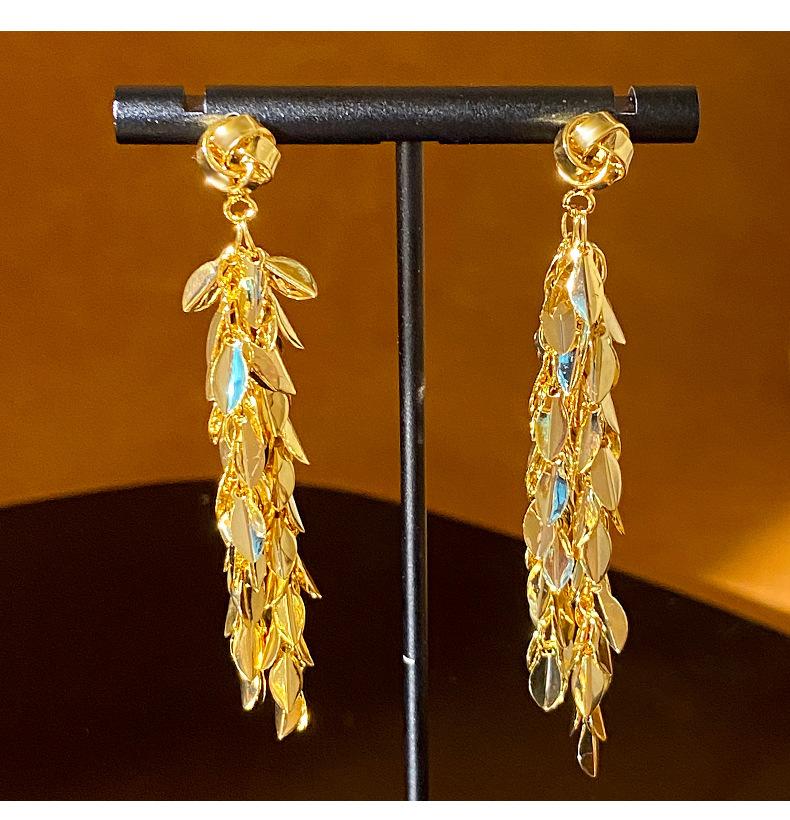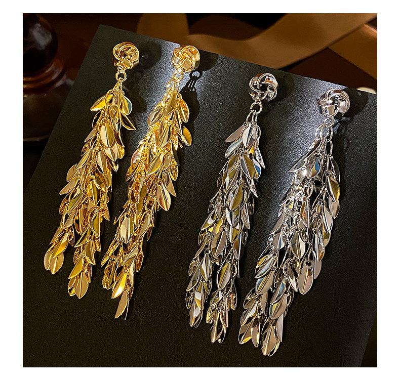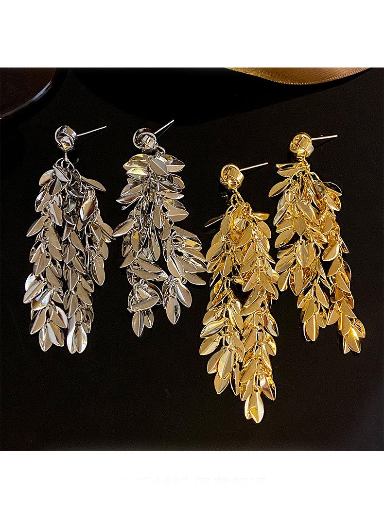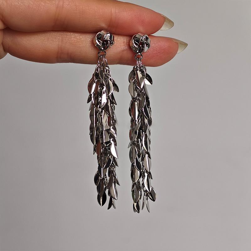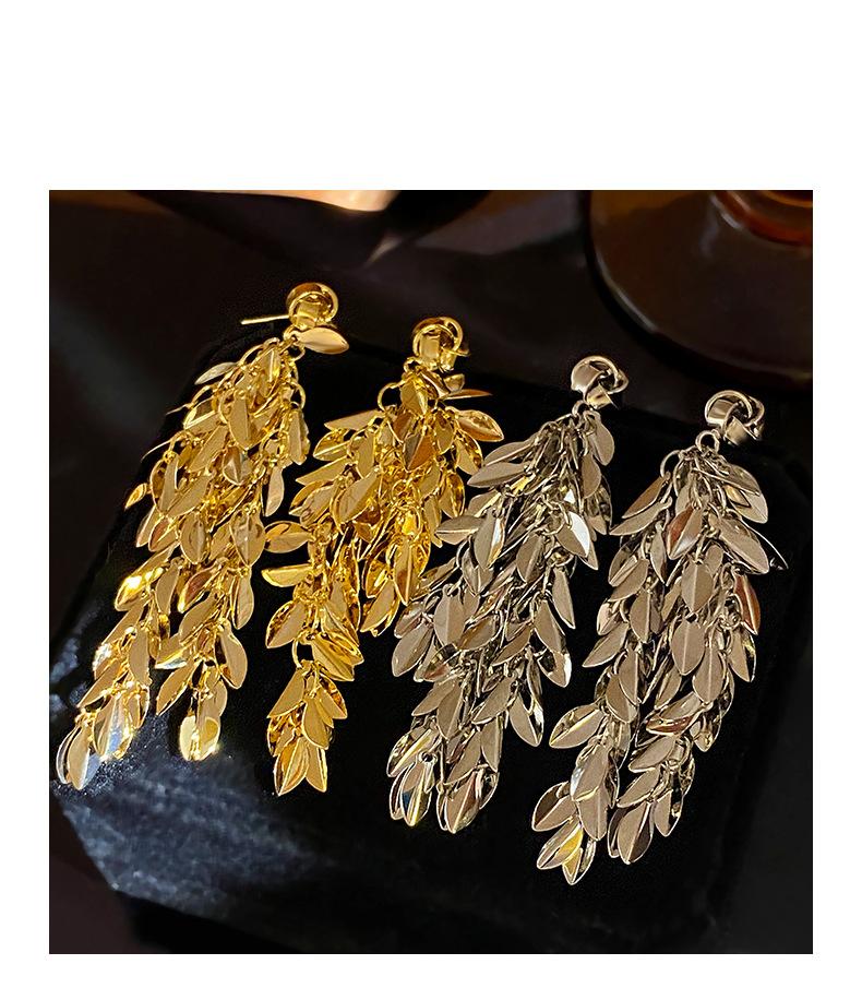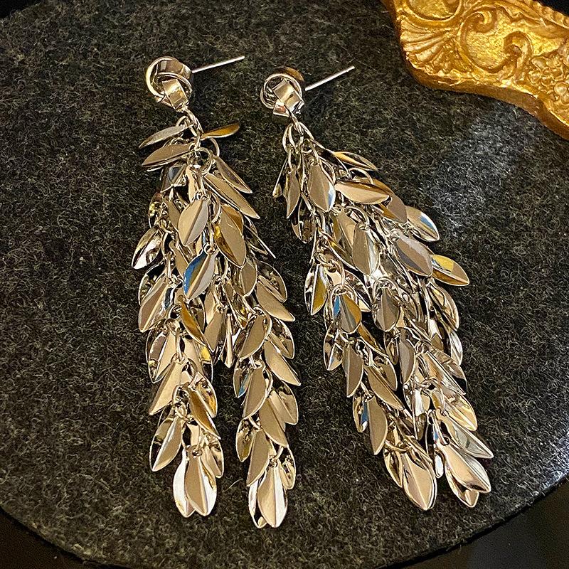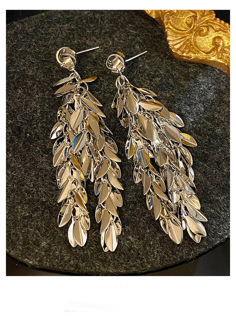 Brincos de borla de trigo redondos com agulha de prata, brincos de personalidade de vento frio europeus e americanos, brincos de temperamento de moda retrô para mulheres