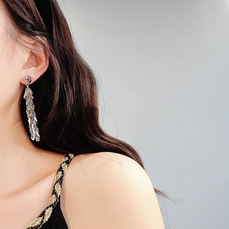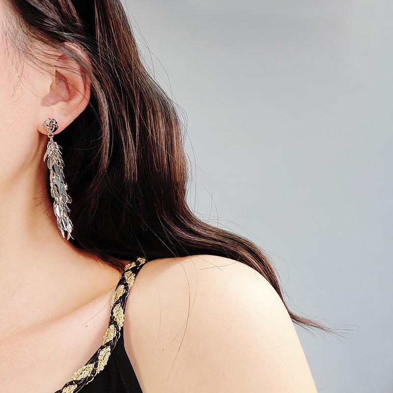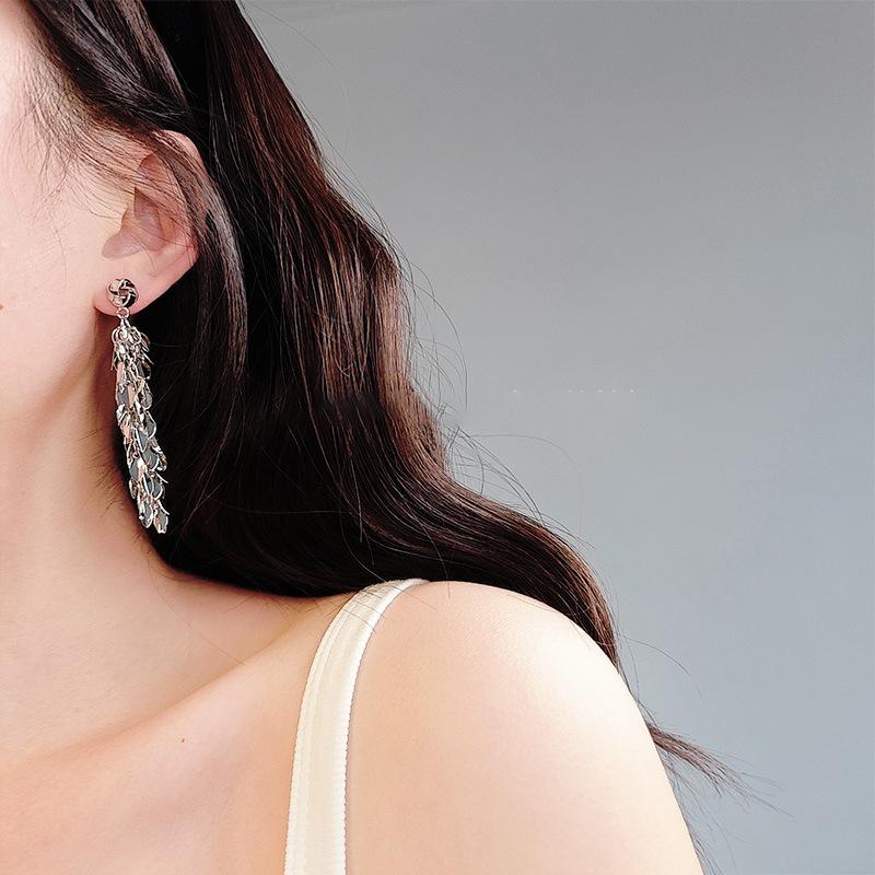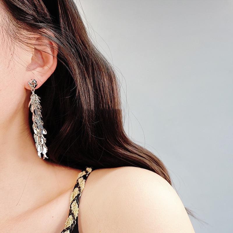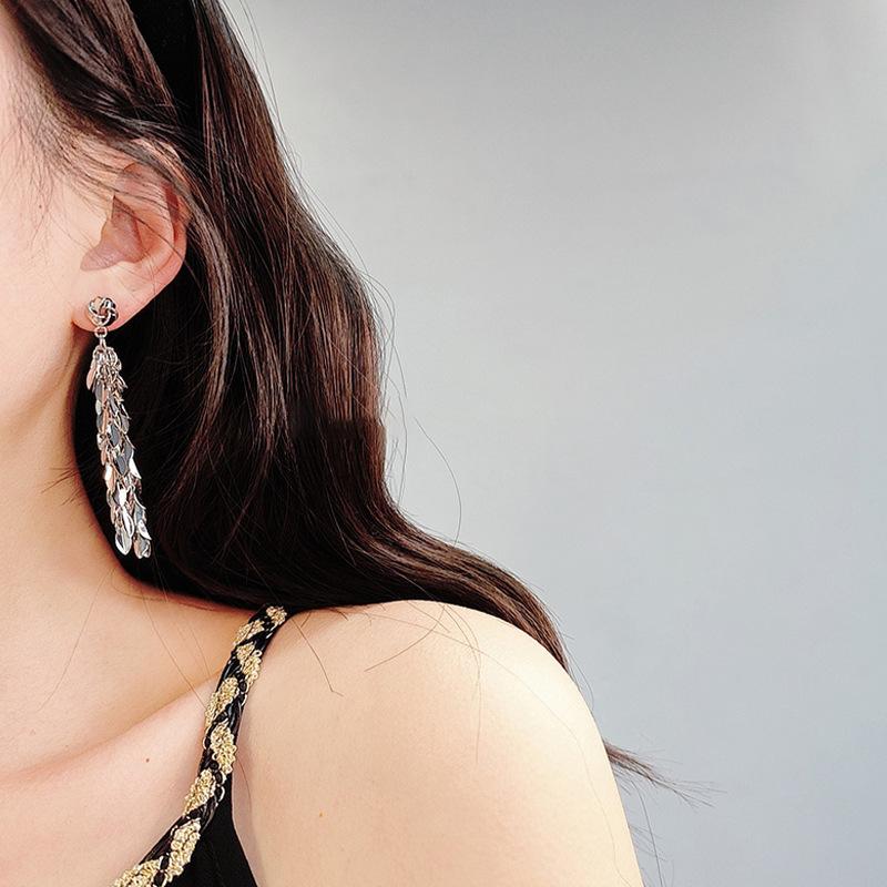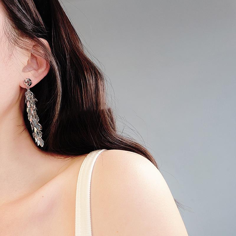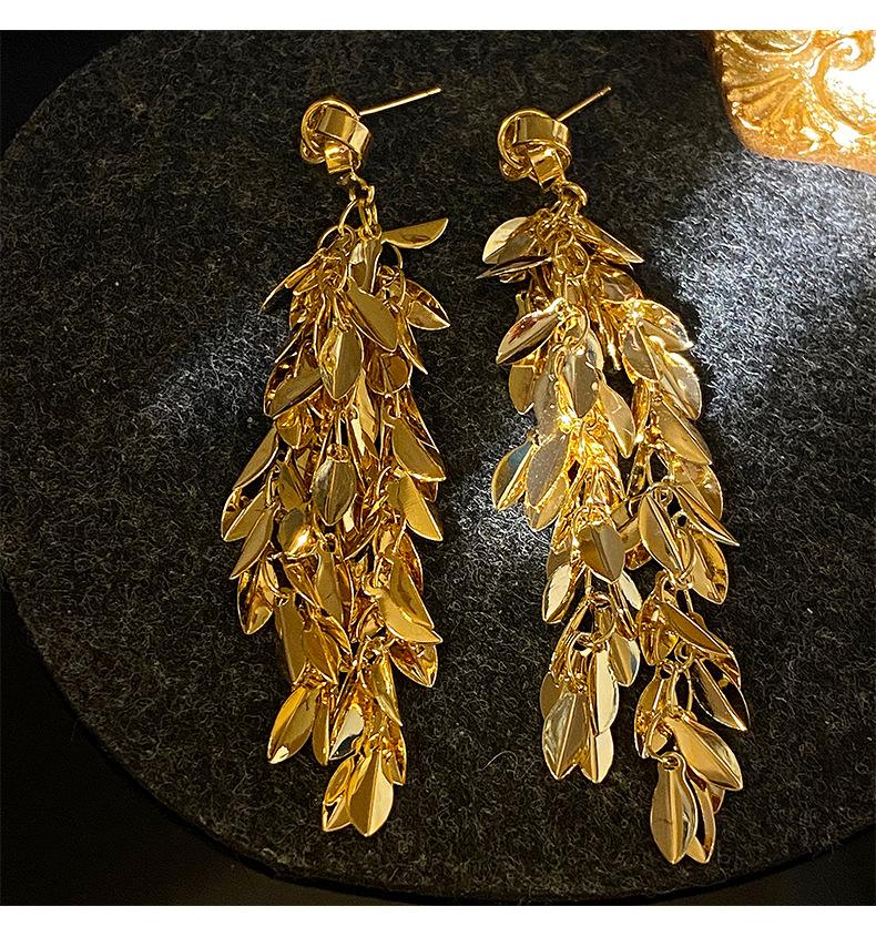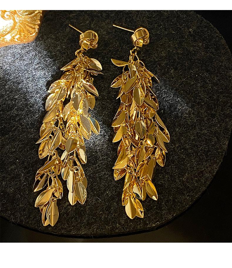 Brincos de borla de trigo redondos com agulha de prata, brincos de personalidade de vento frio europeus e americanos, brincos de temperamento de moda retrô para mulheres