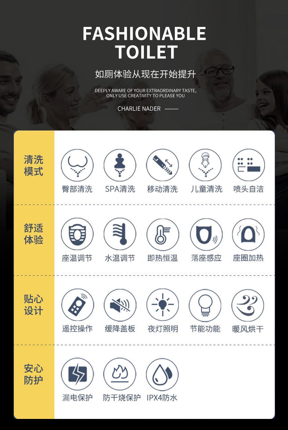 Fabricante Atacado Assento Sanitário Inteligente Universal Aquecimento Instantâneo Multifuncional Tampa de Assento Sanitário para Idosos Assento Elétrico com Descarga