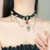 Colar de couro Dark Skull Y2G Heavy Industry Chocker Colar Colar Cultura Asiática Doce Cool Punk Clavícula Corrente