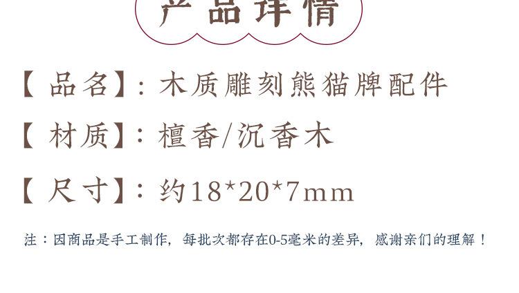 Sândalo Esculpido Tesouro Nacional Panda Vermelho Marca DIY Wen Play Buda Contas Cordão Colar Chave Através do Orifício Jóias Acessórios