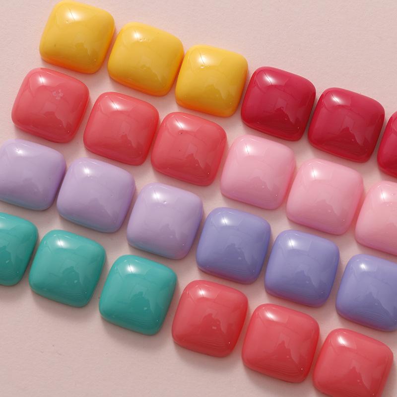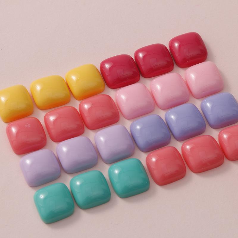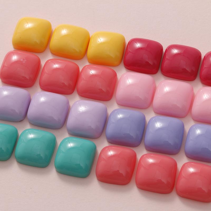 Compre 16mm macaron superfície brilhante quadrado meio remendo pílula telefone móvel concha brincos DIY jóias femininas todos os acessórios de jogo atacado no atacado no Joom.pro