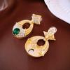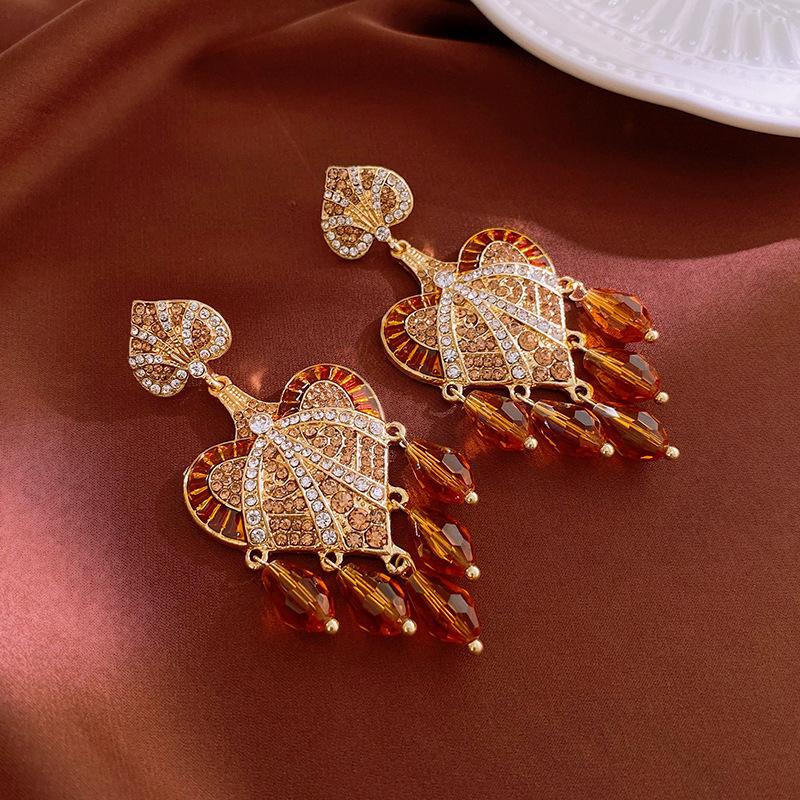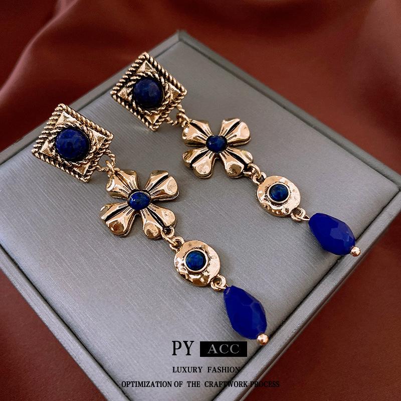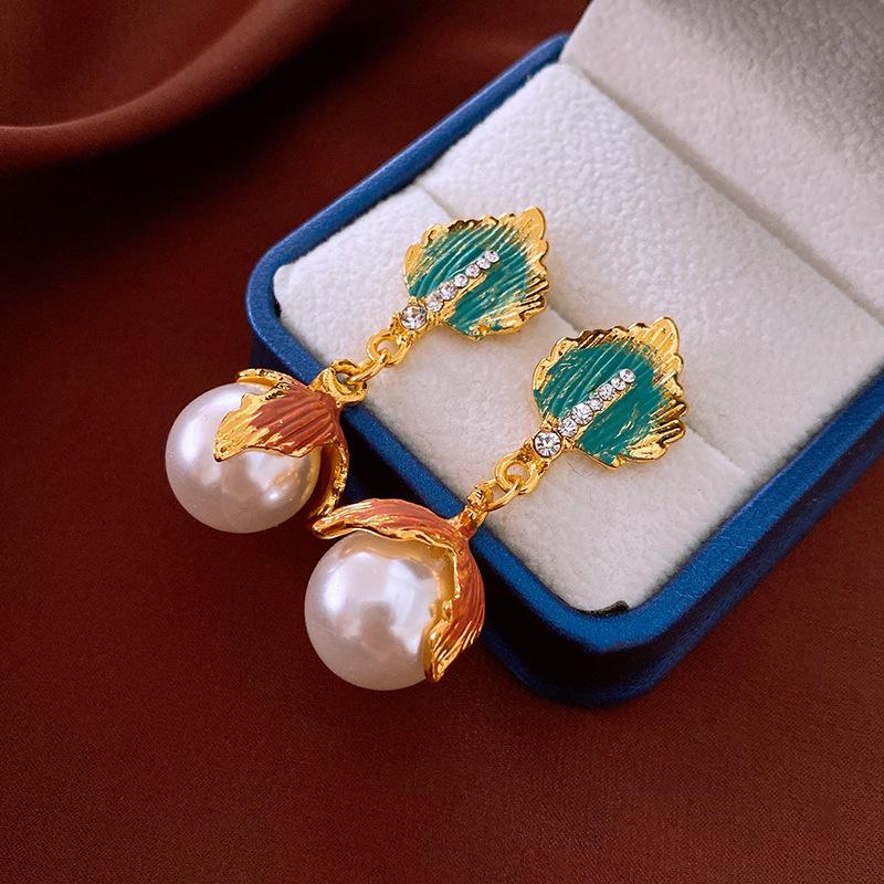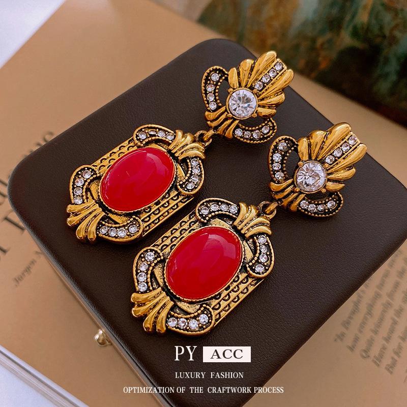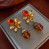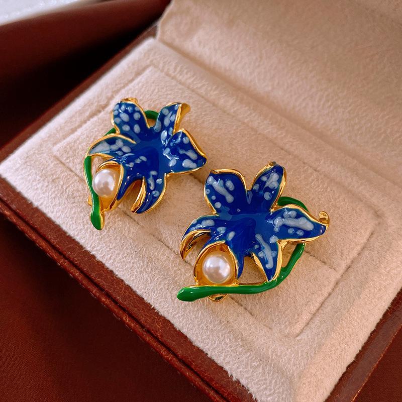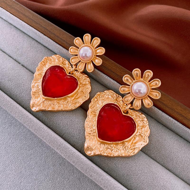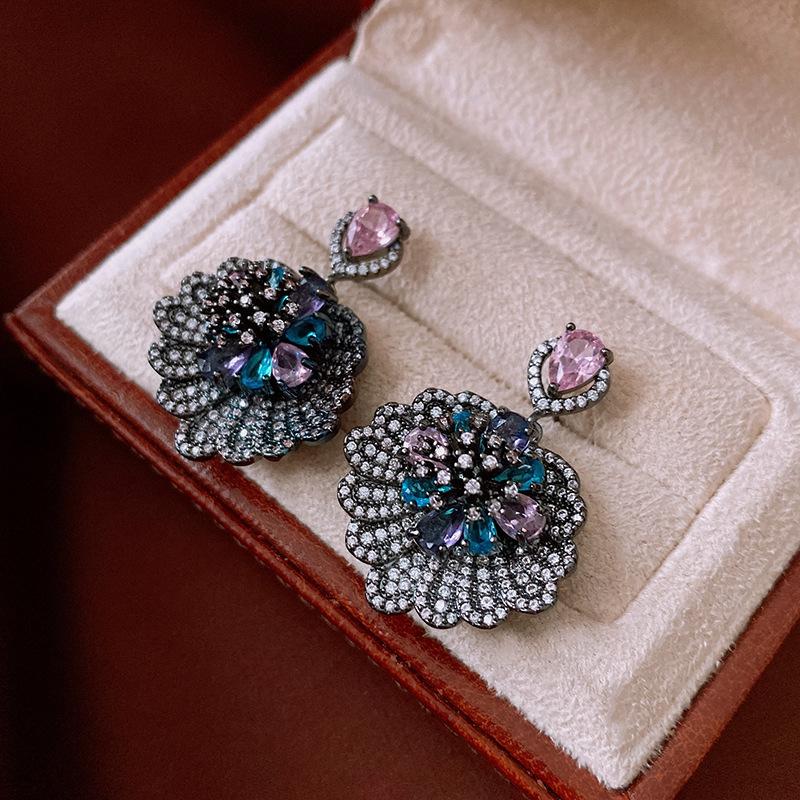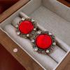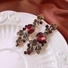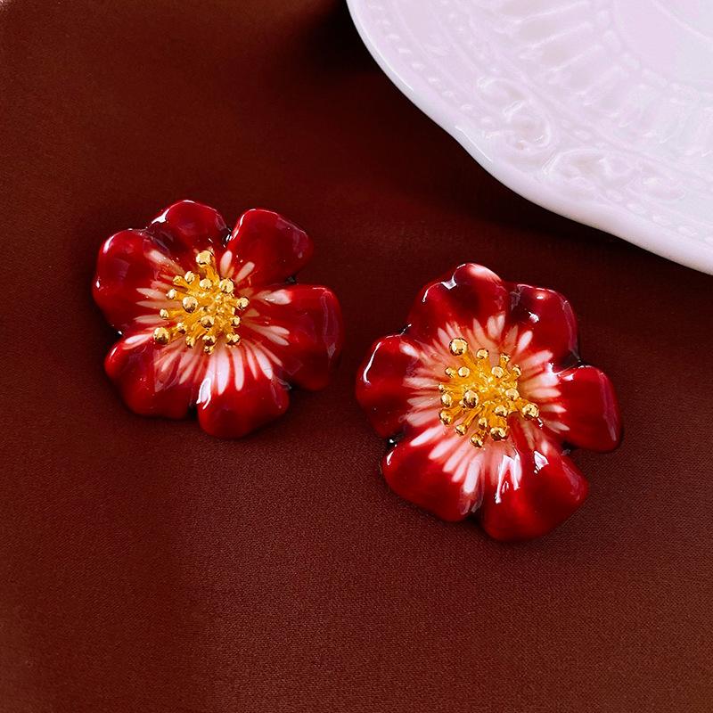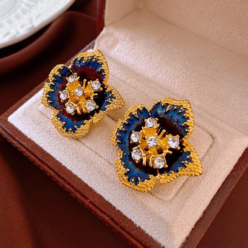 Brincos de flor de diamante vintage antigos médios, brincos retrô leves de luxo de alto sentido, pequenos brincos de vento de corte, atacado