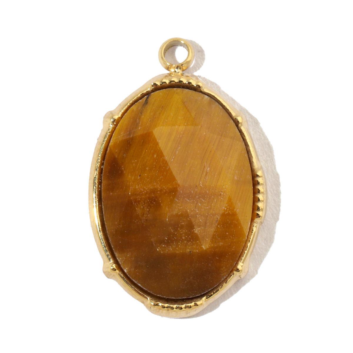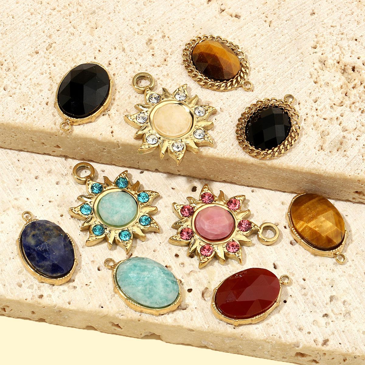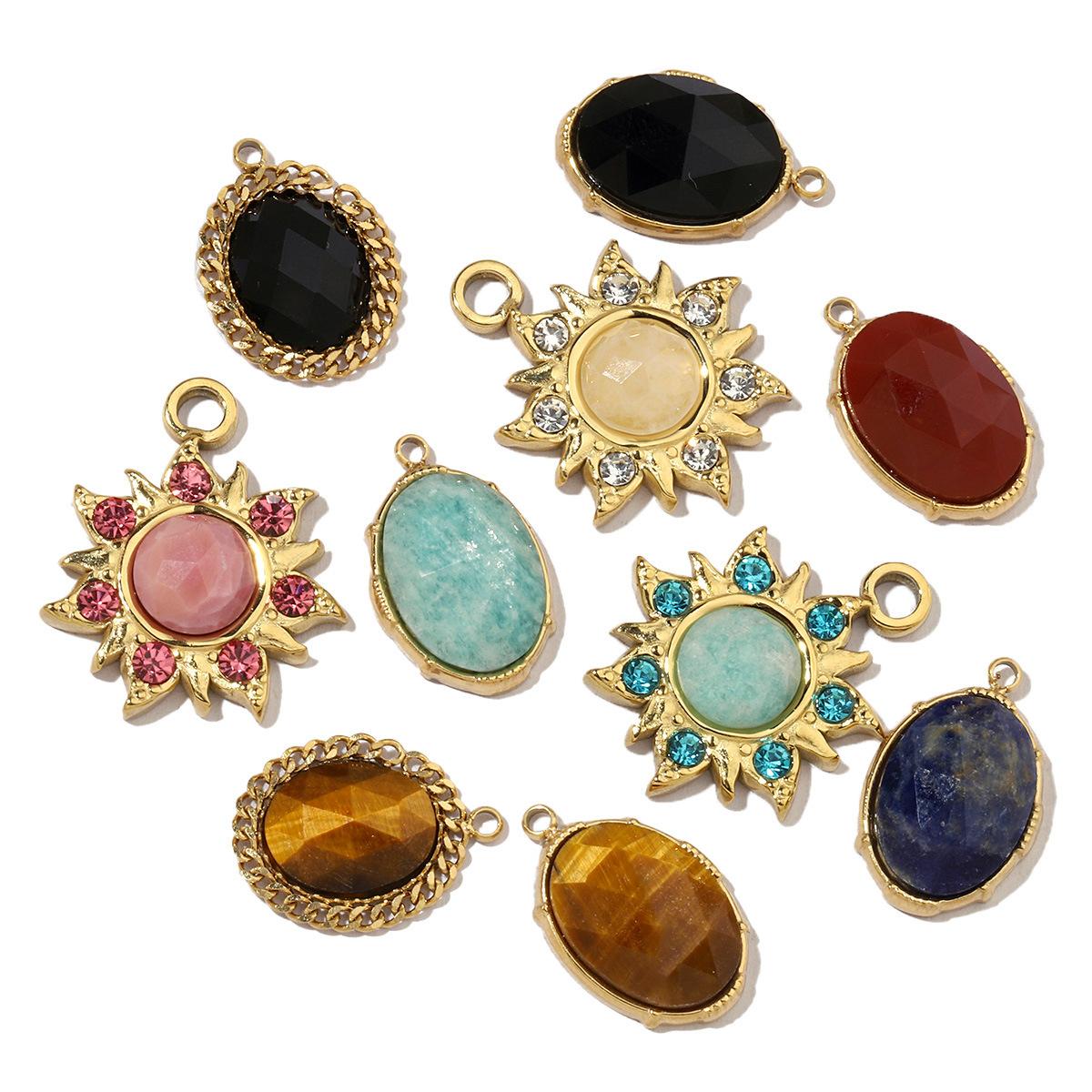 Pingente de pedra natural de flor francesa, aço titânio, faça você mesmo, feminino, geométrico, oval, aço inoxidável, joia, colar de jade branco, pingente