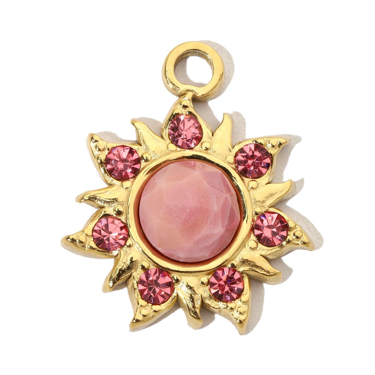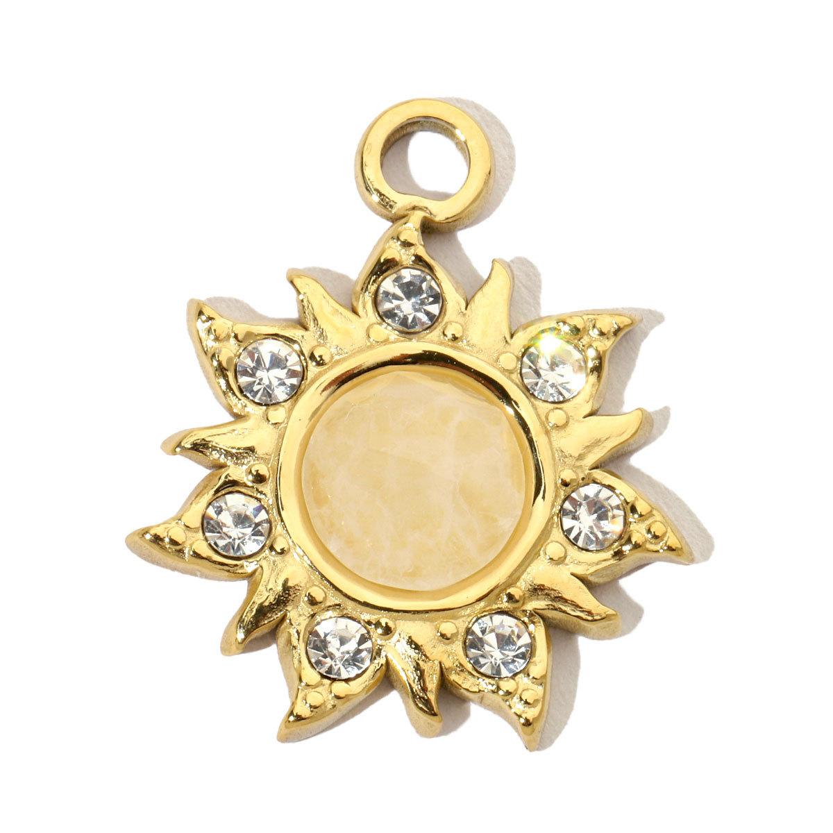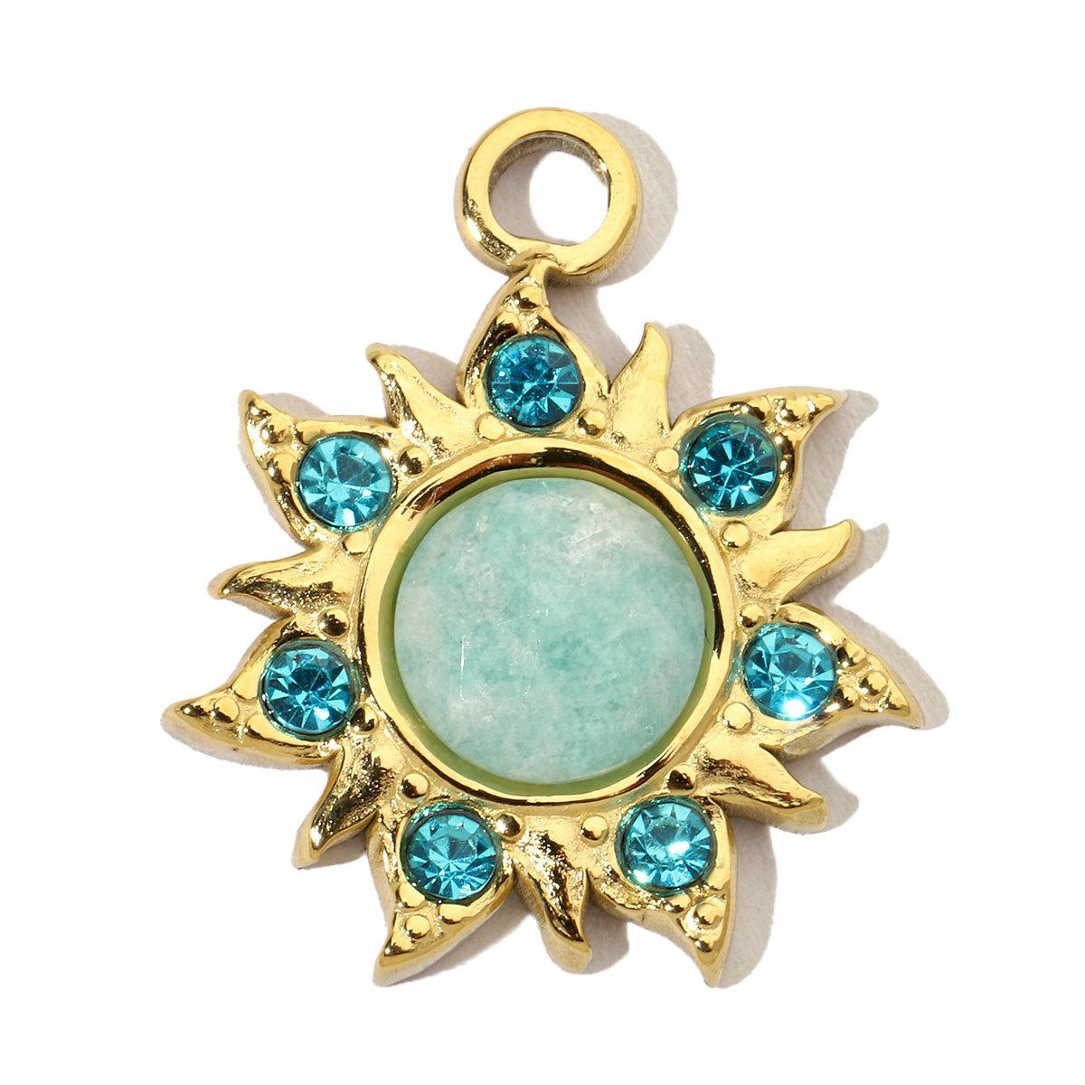 Pingente de pedra natural de flor francesa, aço titânio, faça você mesmo, feminino, geométrico, oval, aço inoxidável, joia, colar de jade branco, pingente