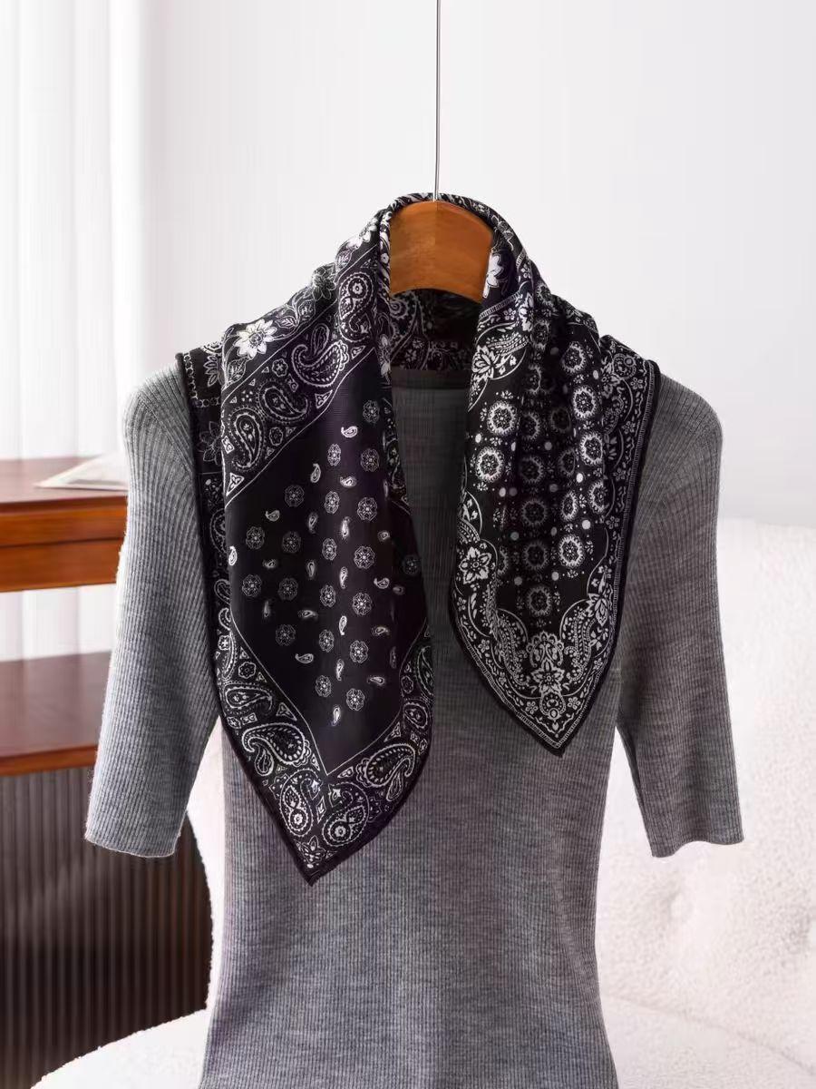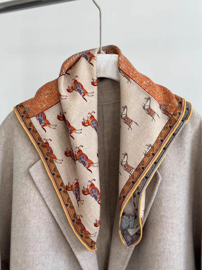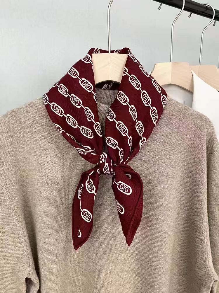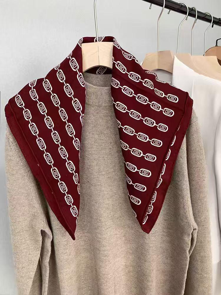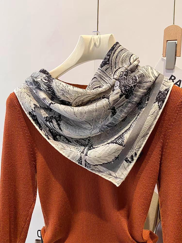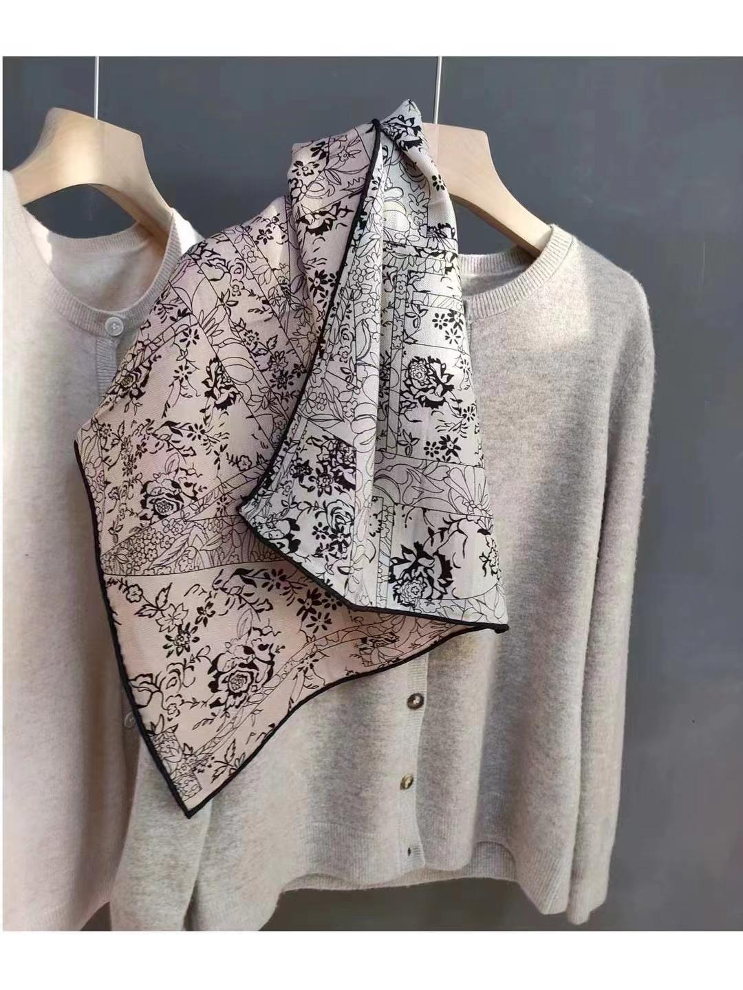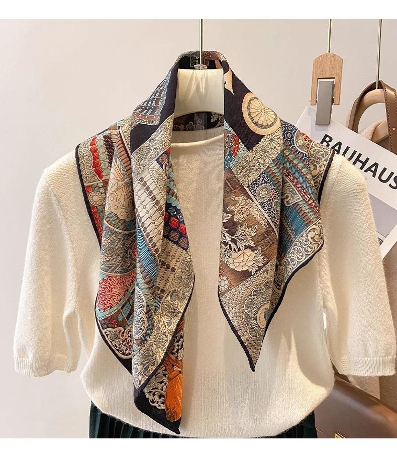 Lenço quadrado pequeno de seda Lenço de lã Lenço de seda triangular Feminino 2024 Novo cachecol fino para primavera e outono