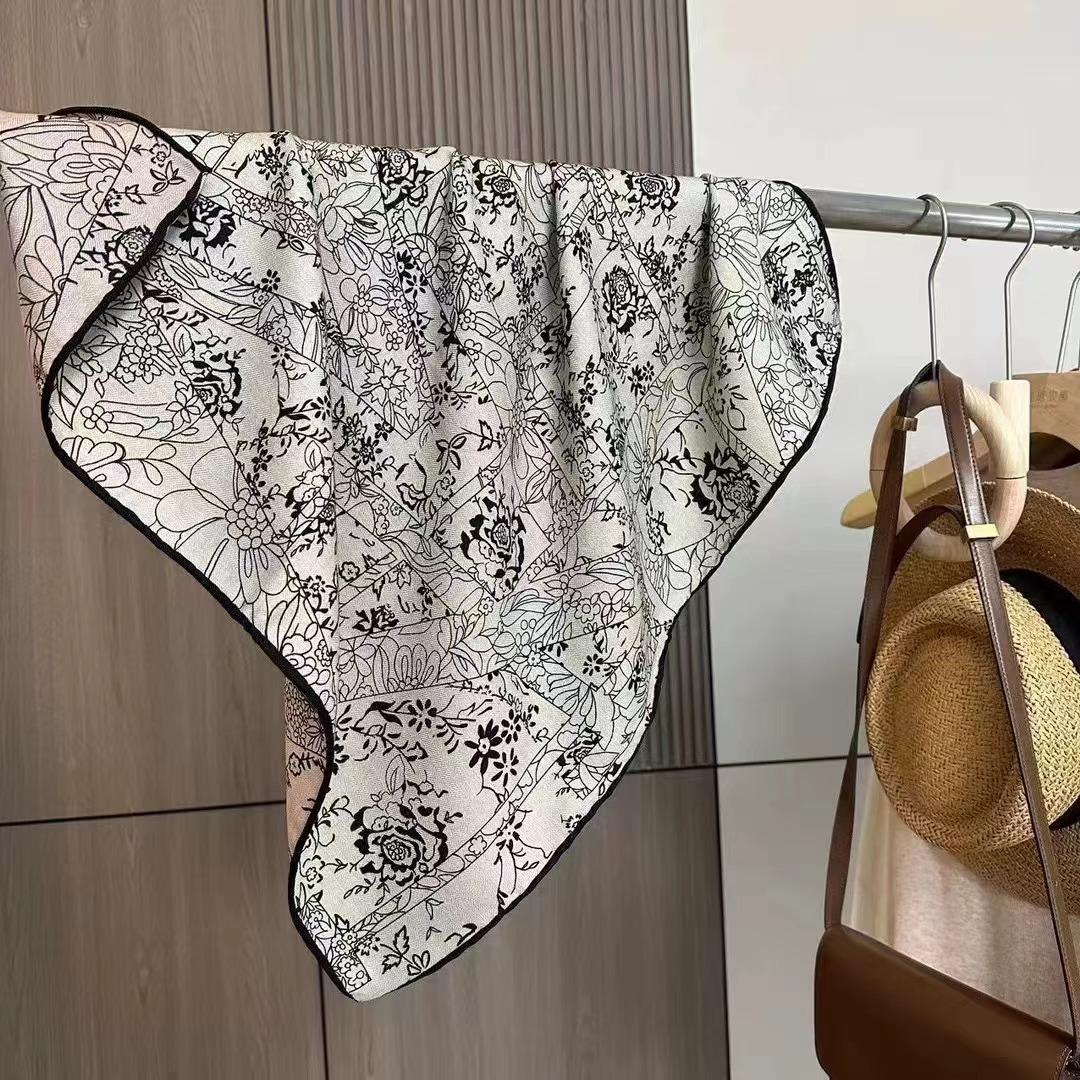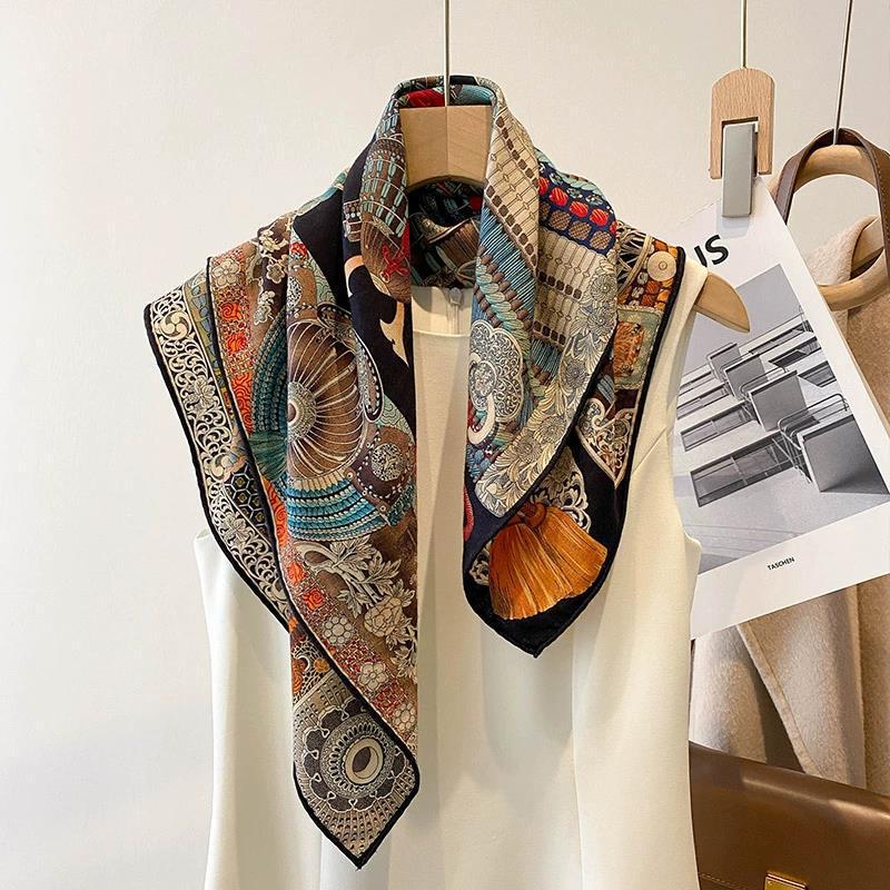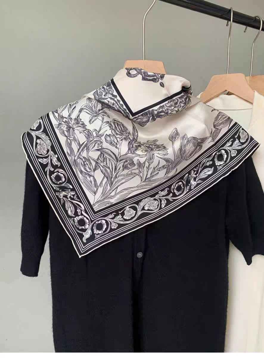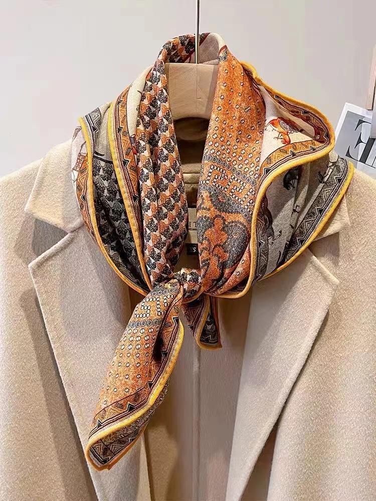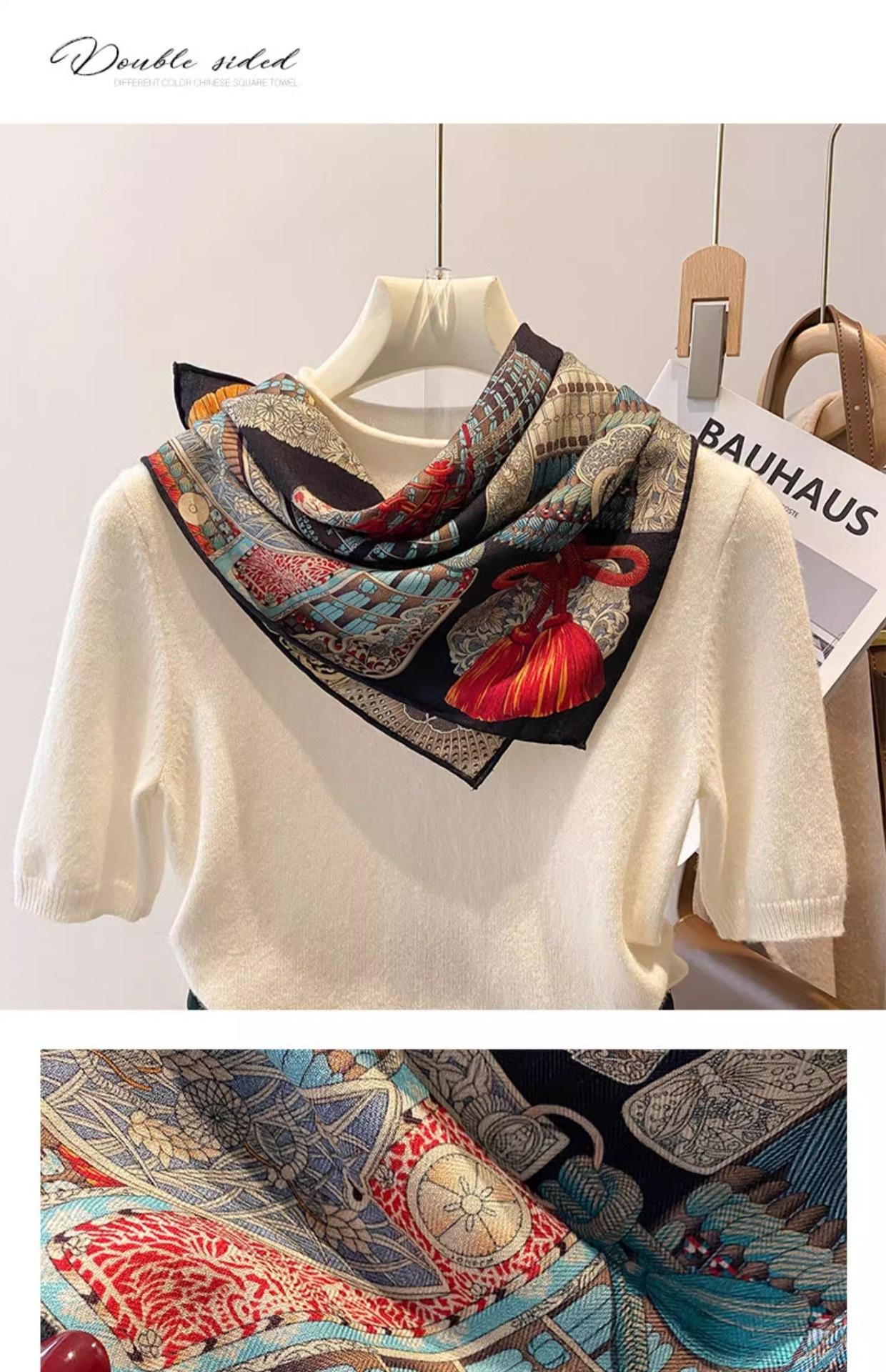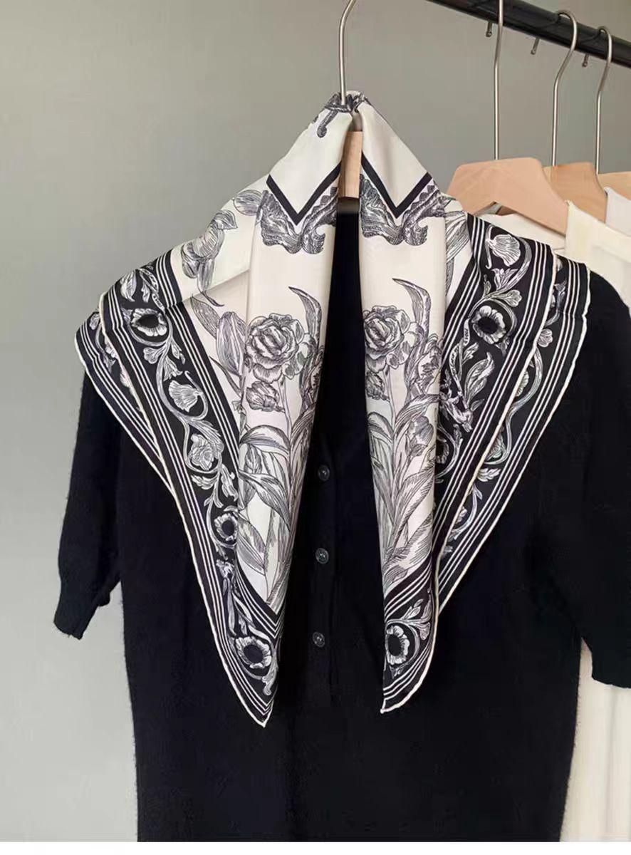 Lenço quadrado pequeno de seda Lenço de lã Lenço de seda triangular Feminino 2024 Novo cachecol fino para primavera e outono