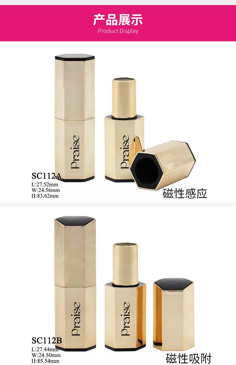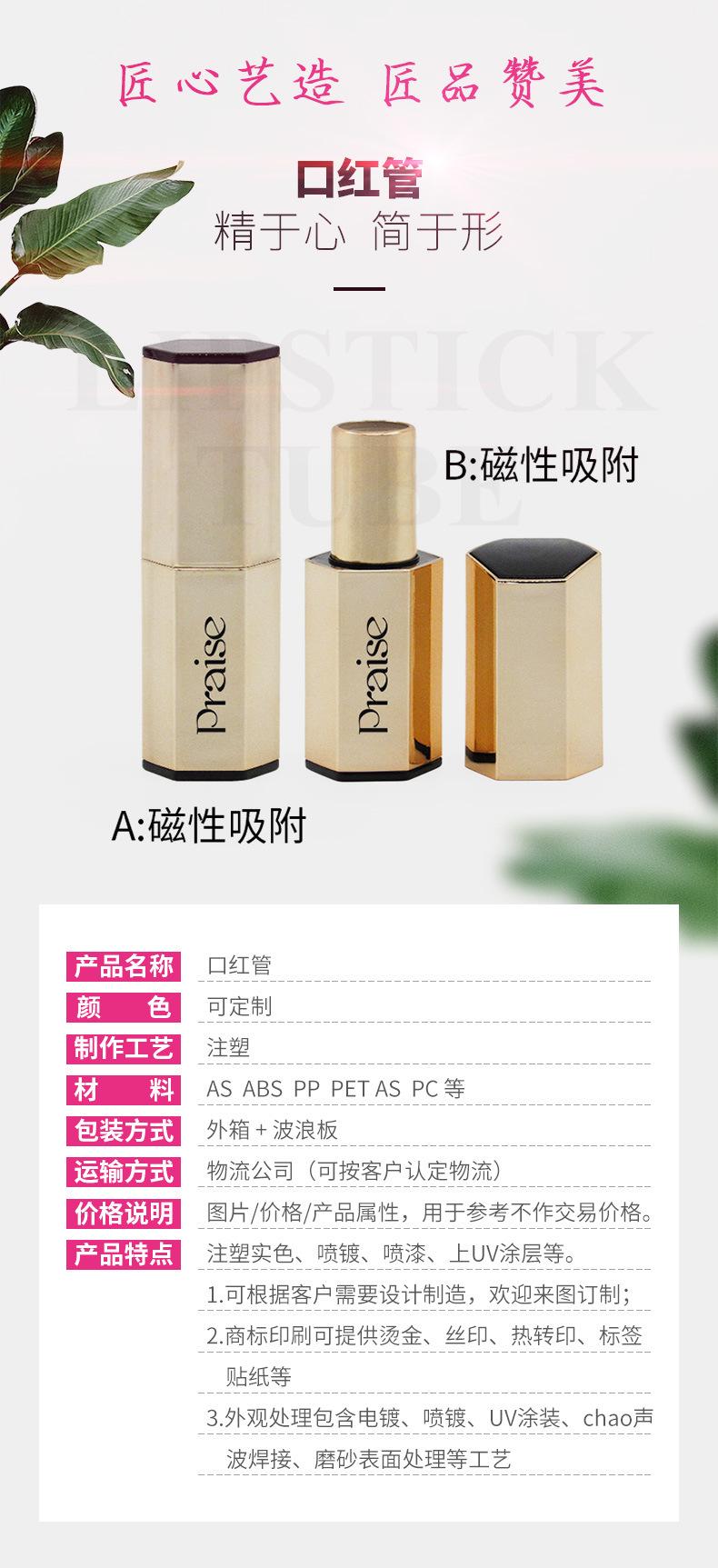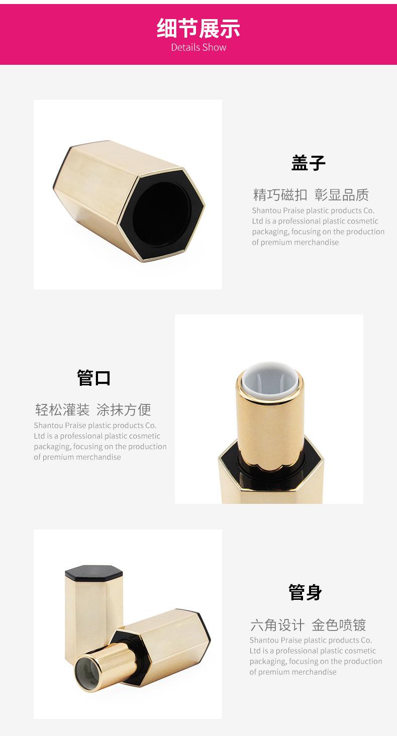 Novo material de embalagem cosmética tubo de batom com fivela magnética hexagonal tubo de batom plástico plano dourado tubo vazio fábrica atacado