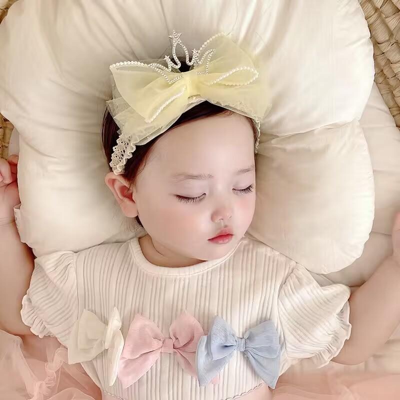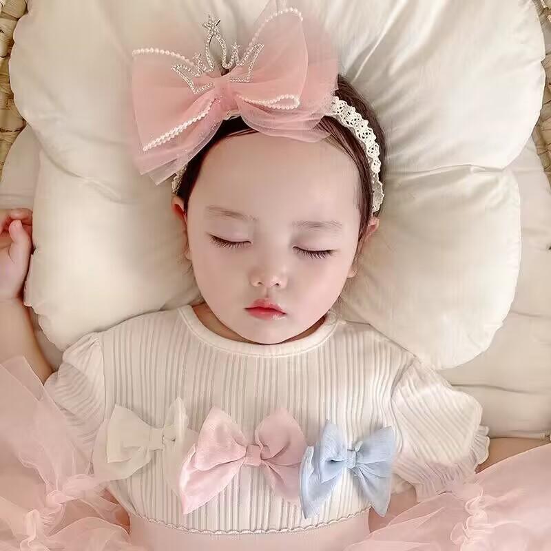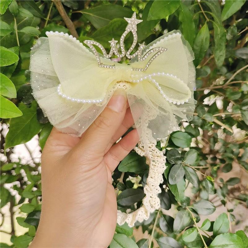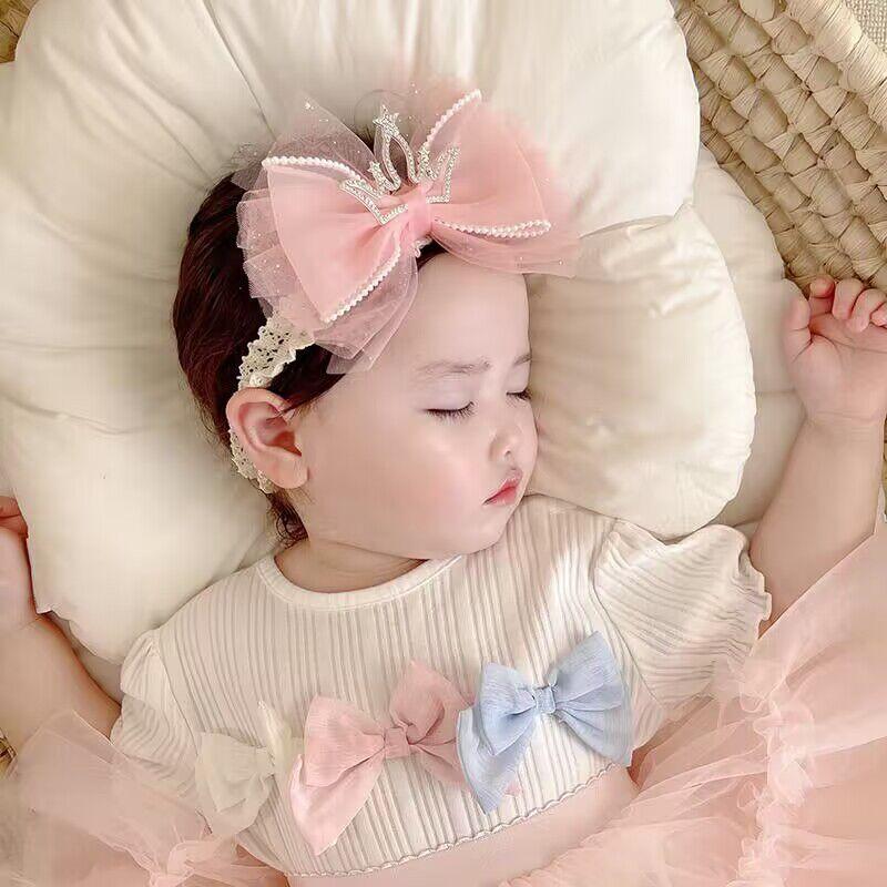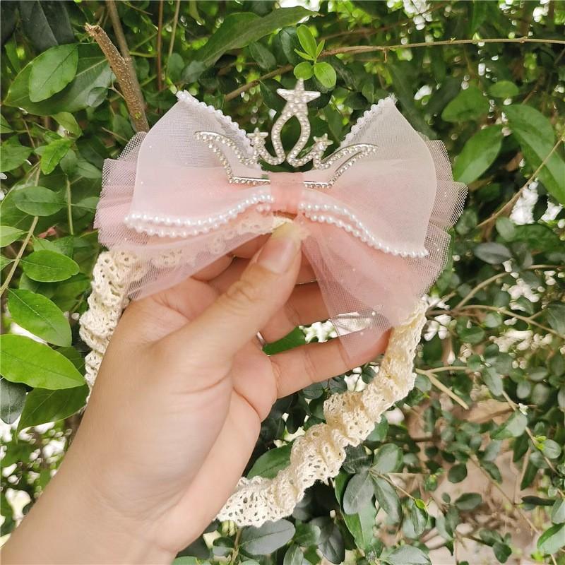 Faixa de cabelo de bebê da moda coreana, princesa, coroa, laço de renda, acessórios de cabelo, faixa de cabeça para meninas, presente de aniversário infantil