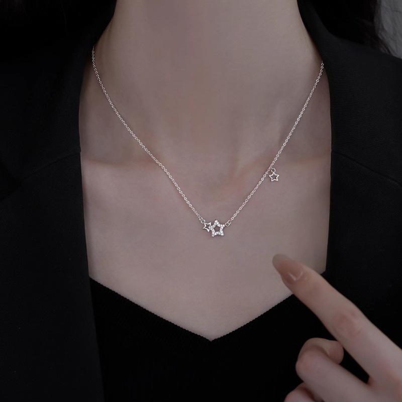 Colar Estrela Perseguindo Sonhos 2025 Novo Modelo Prata Luxo Leve Nicho Design High-End Aço Titânio Não Desbota Corrente Clavícula Atacado