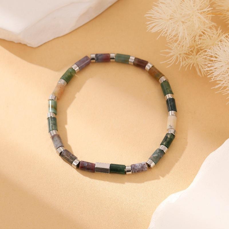 Número do item: B2514-ST Tamanho: 5*8 ágata indiana 49 peças + 5*3 contas espaçadoras de aço inoxidável + acessórios hexagonais 8*6
