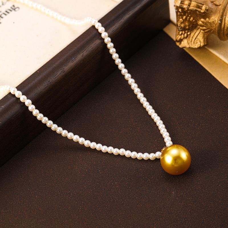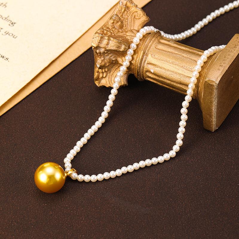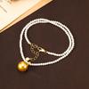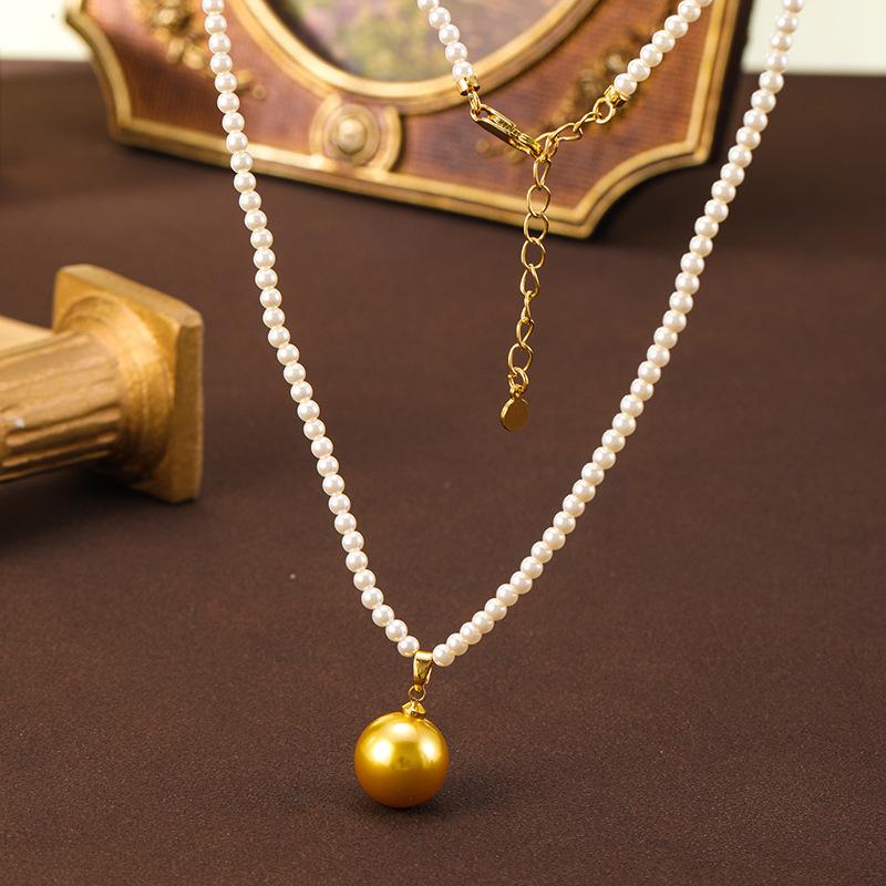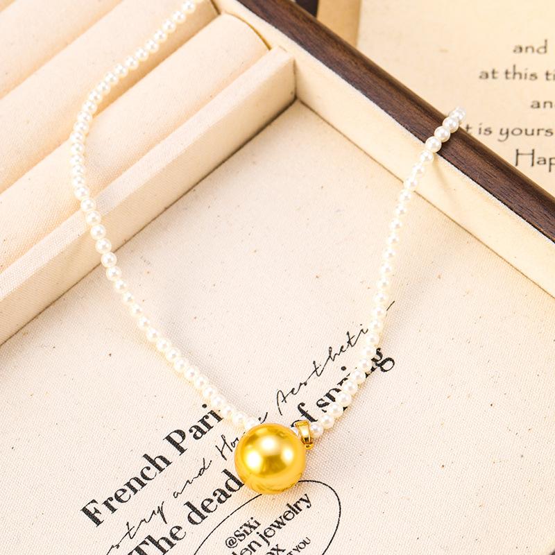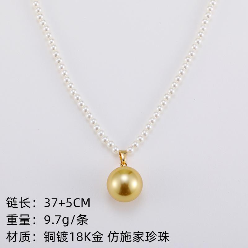 Colar com pingente de pérola Shijia de imitação de contas de ouro simples feminino, combinação completa, luxo leve, nicho elegante, corrente de clavícula, outono e inverno