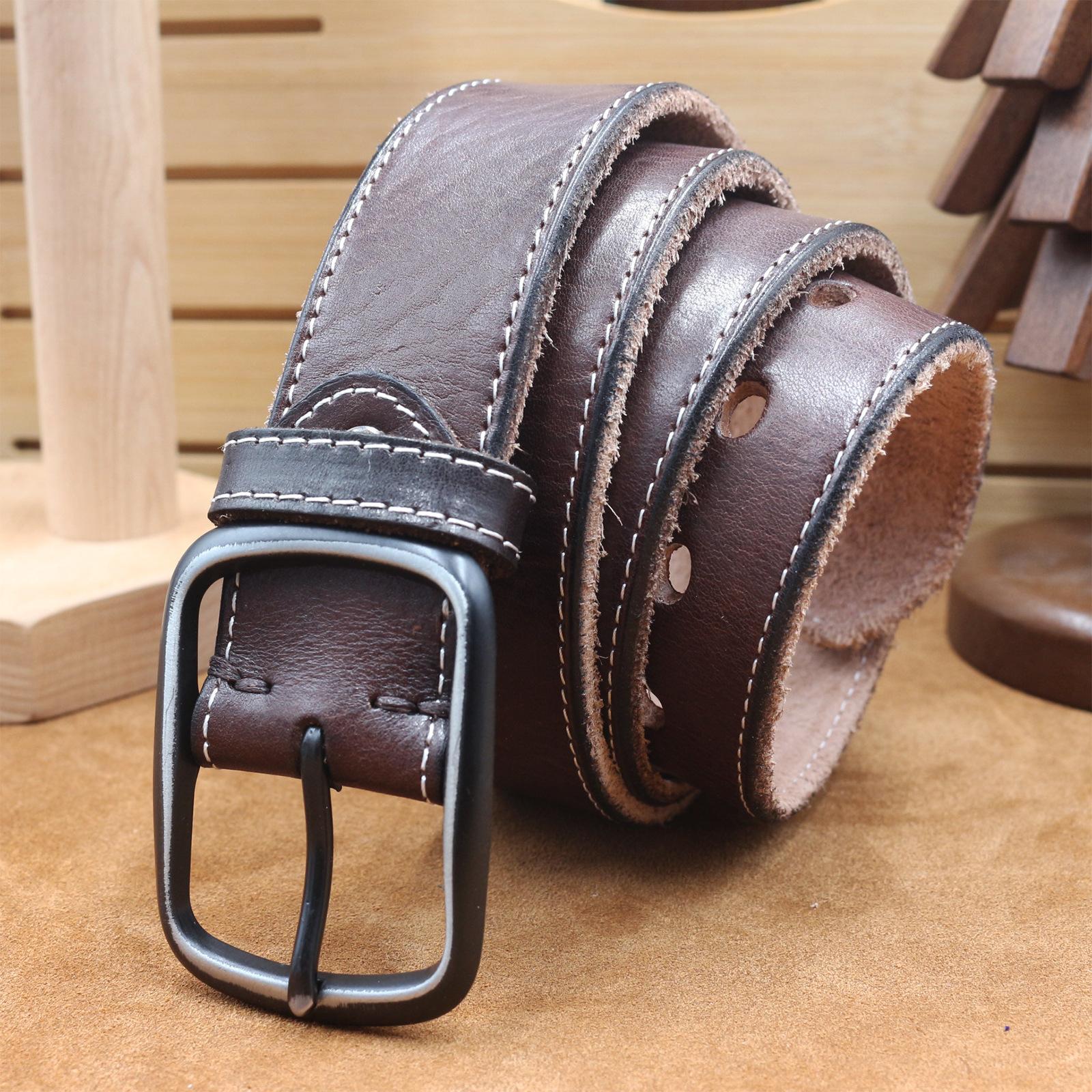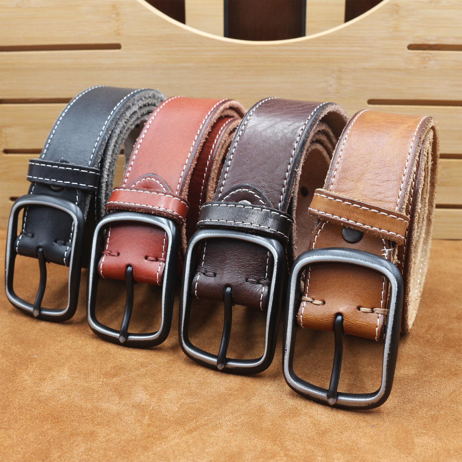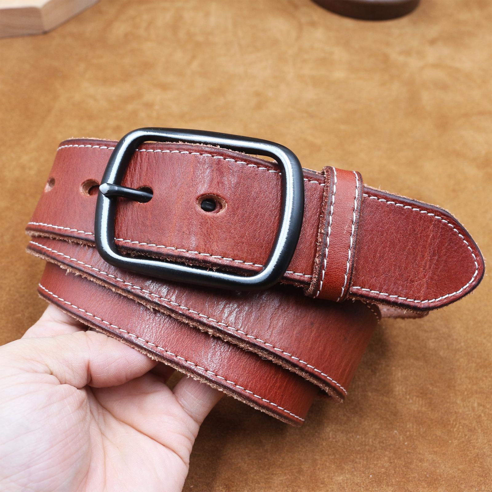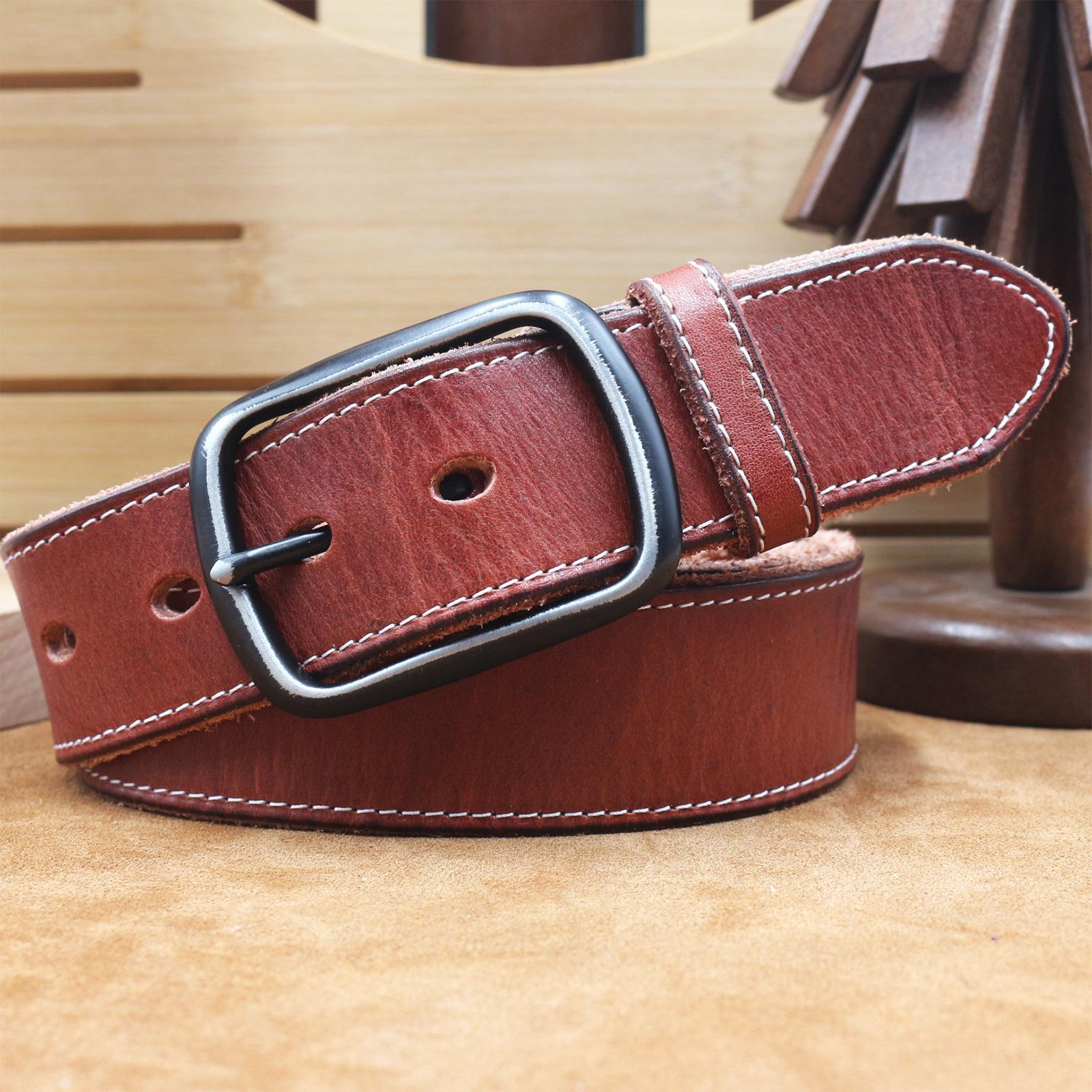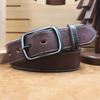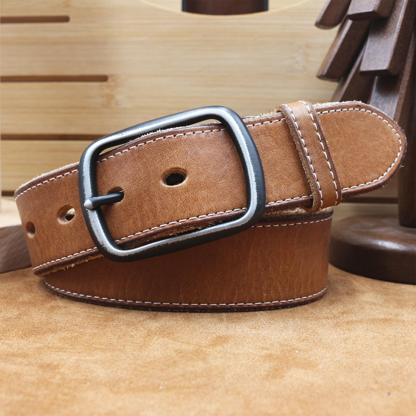 Cinto masculino de couro legítimo retrô americano de 3,8 cm com fivela de agulha e camada de couro bovino coreano casual jeans