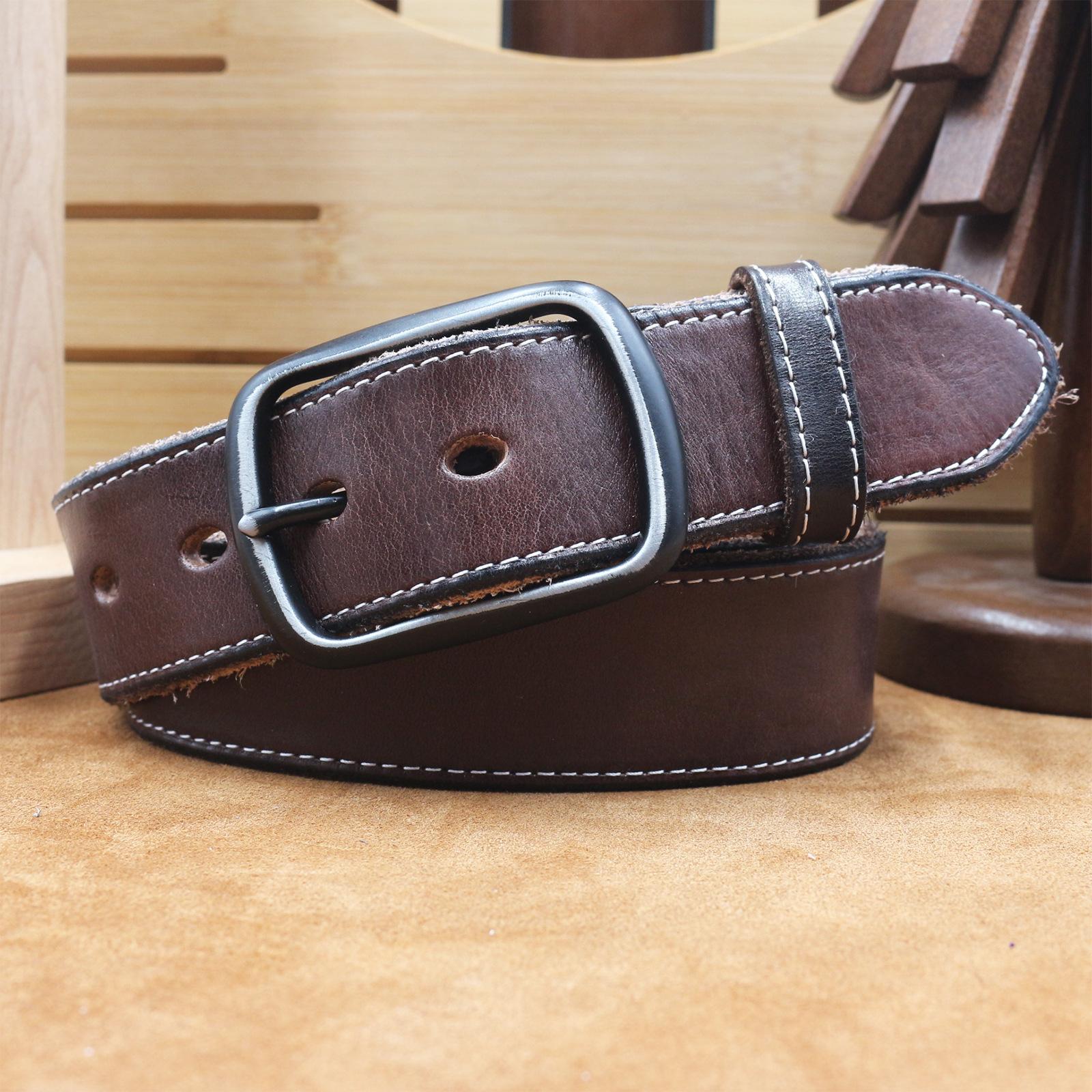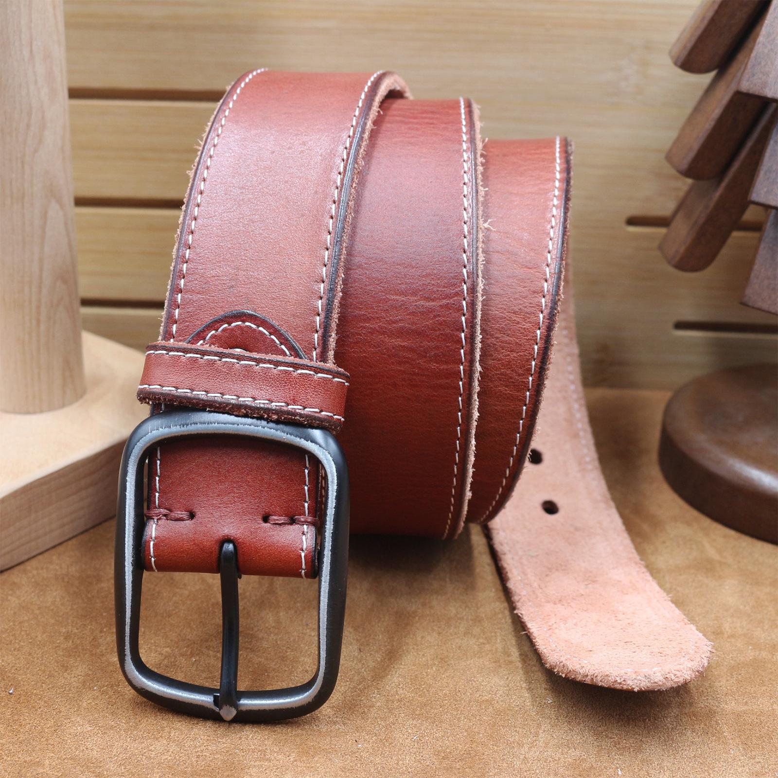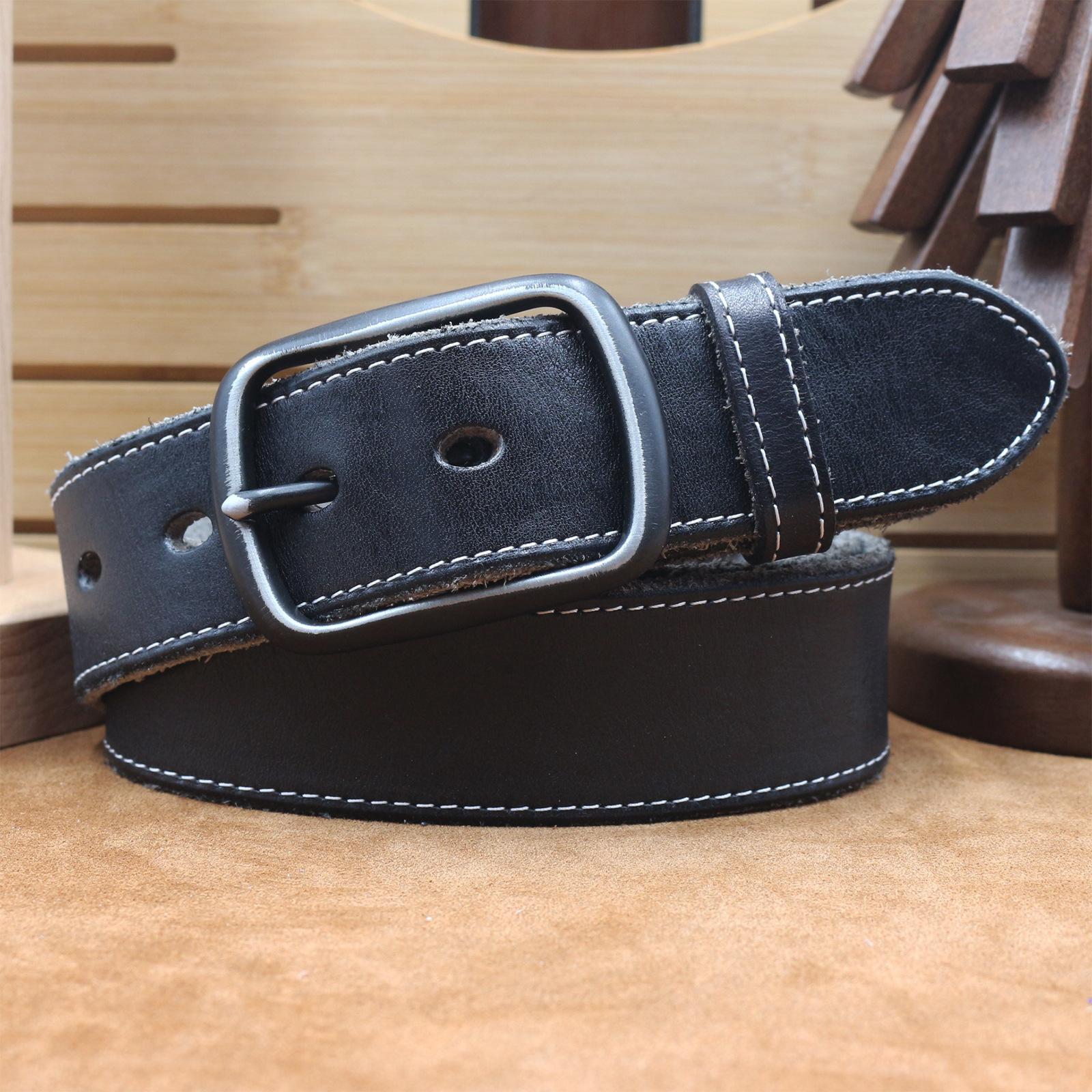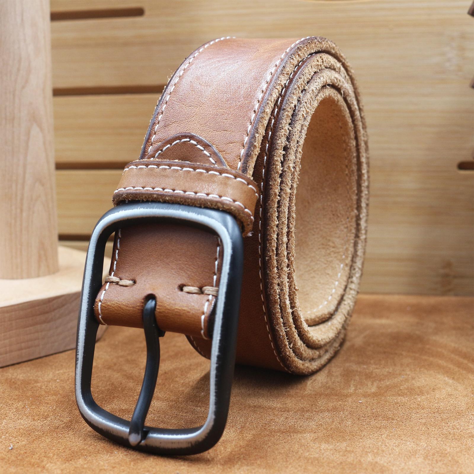 Cinto masculino de couro legítimo retrô americano de 3,8 cm com fivela de agulha e camada de couro bovino coreano casual jeans