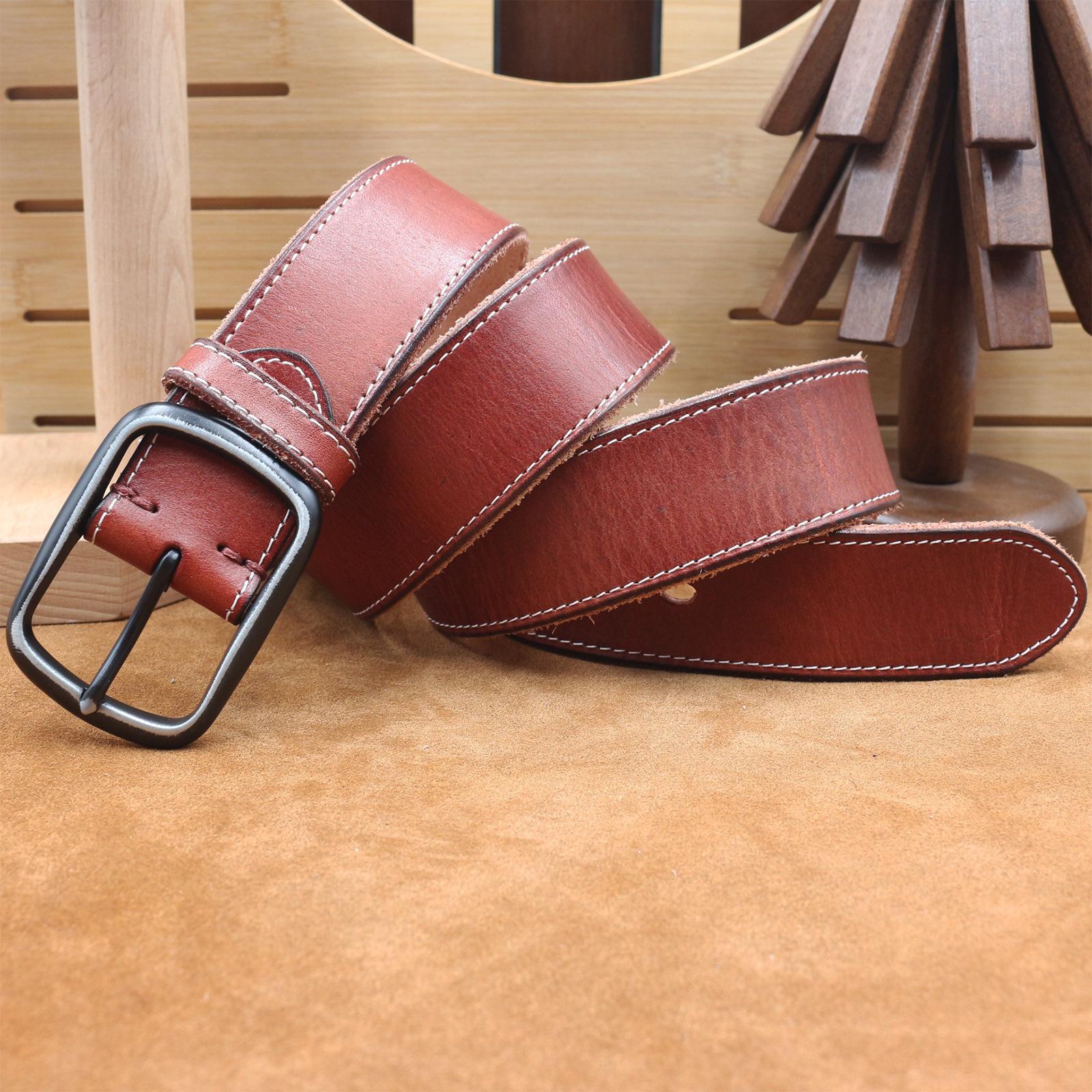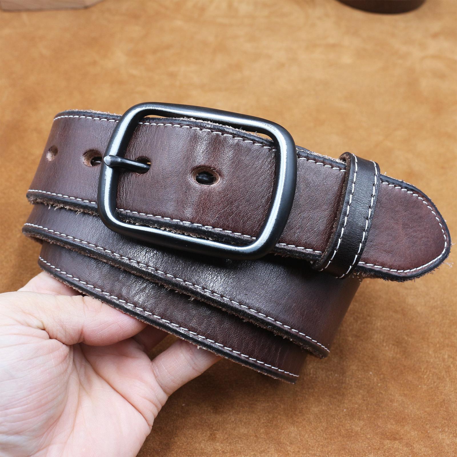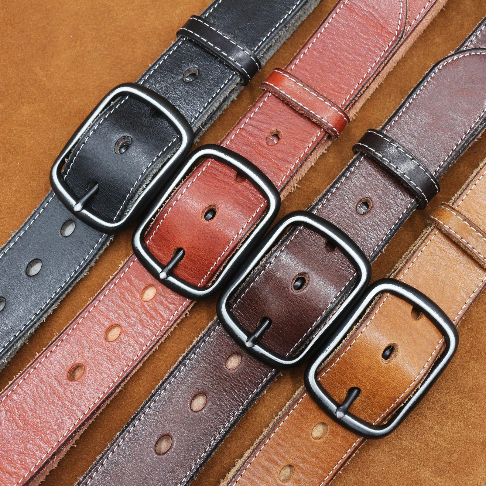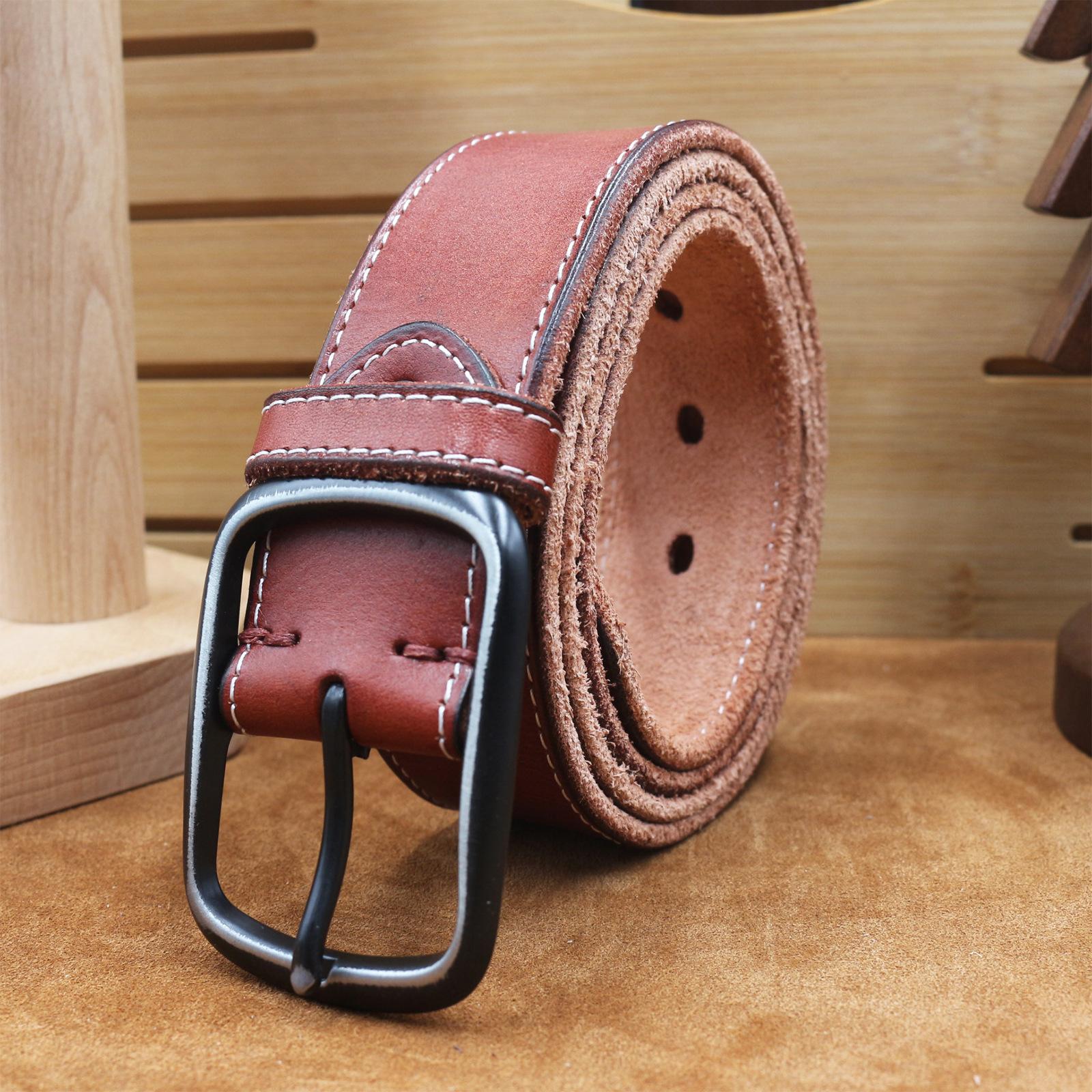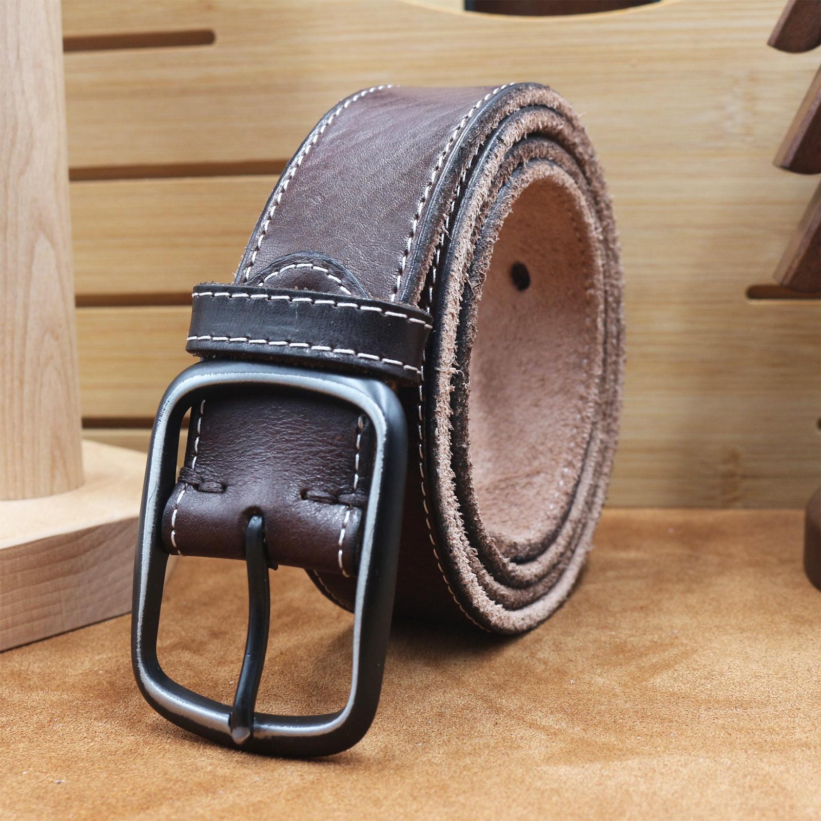 Cinto masculino de couro legítimo retrô americano de 3,8 cm com fivela de agulha e camada de couro bovino coreano casual jeans