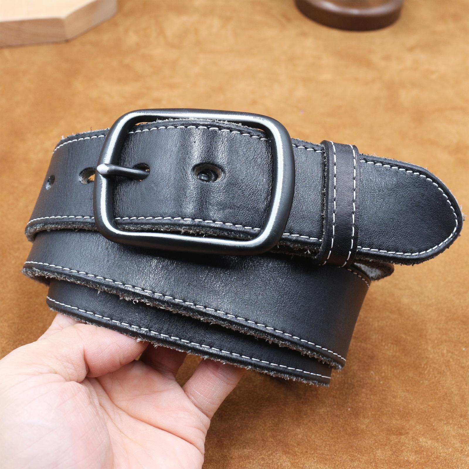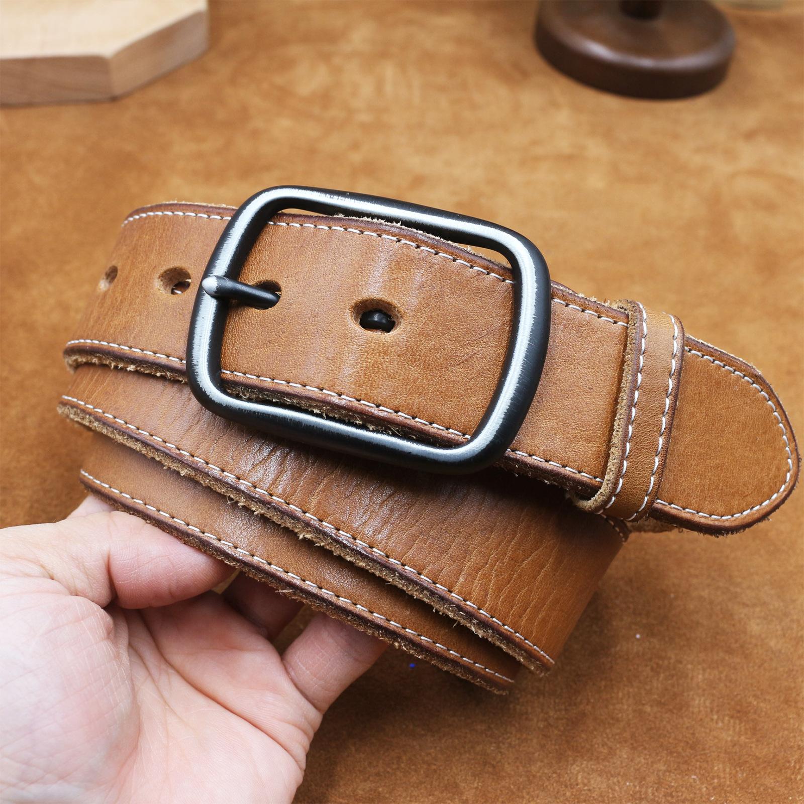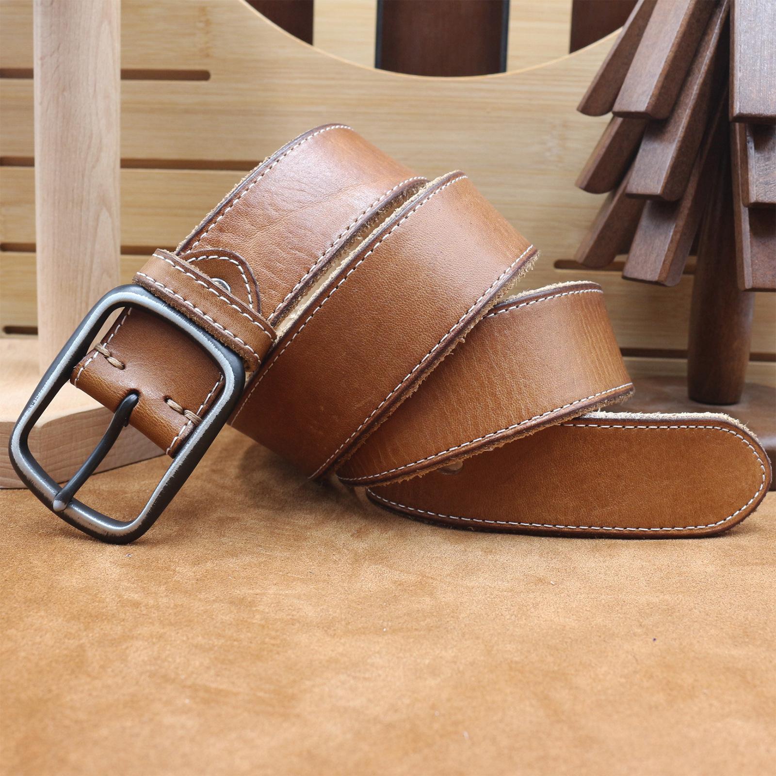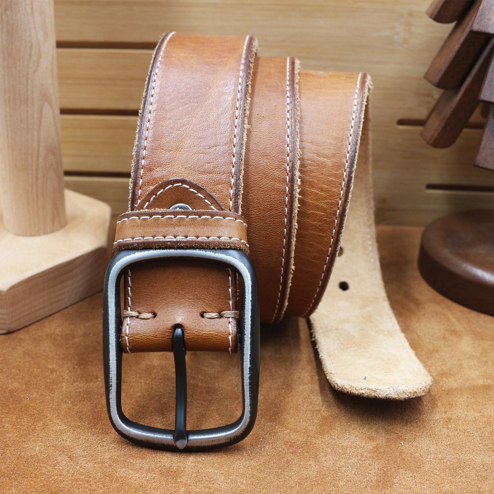 Cinto masculino de couro legítimo retrô americano de 3,8 cm com fivela de agulha e camada de couro bovino coreano casual jeans