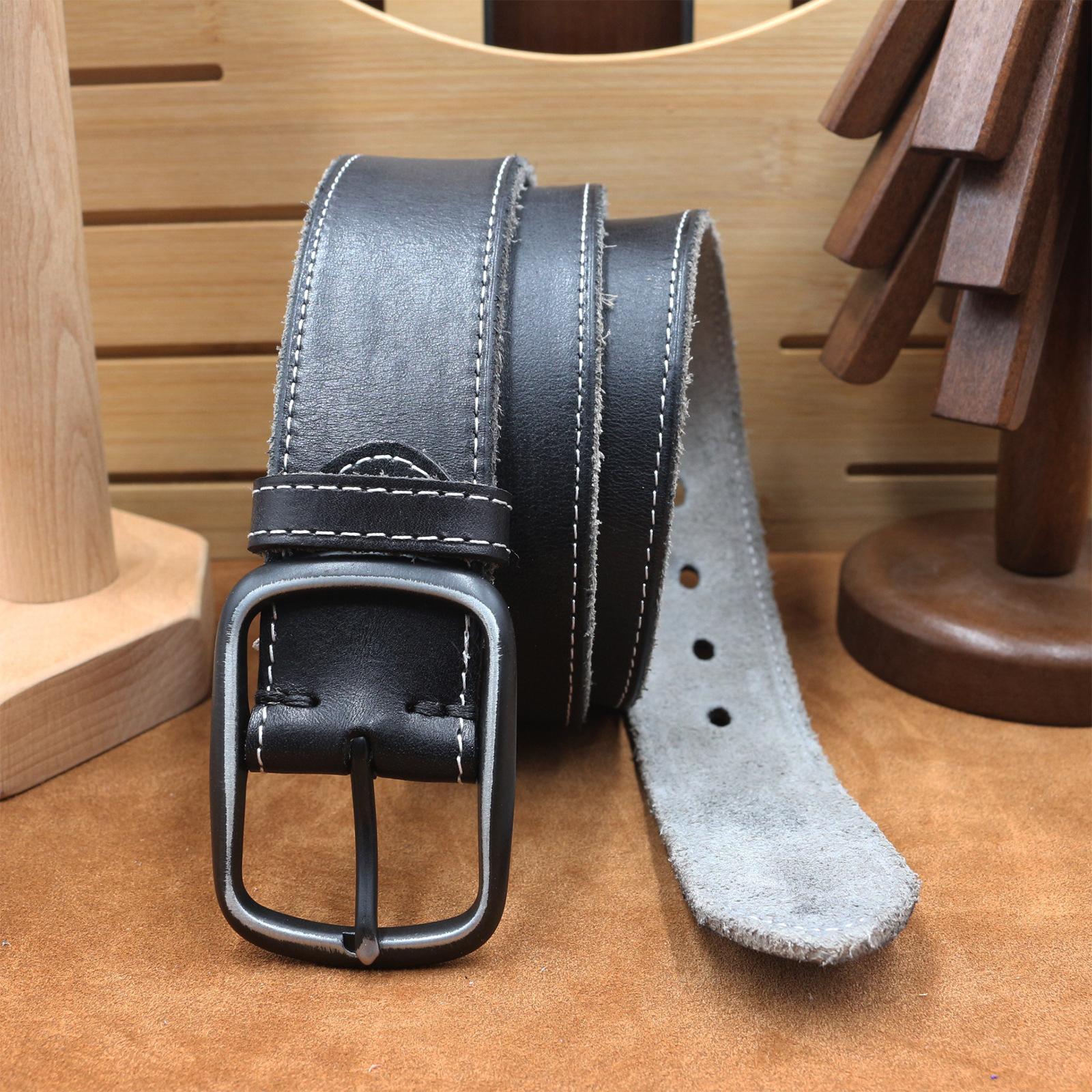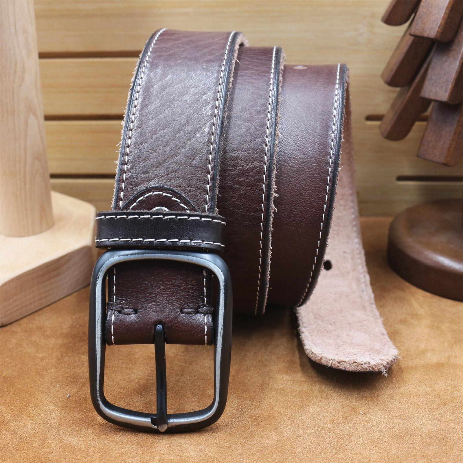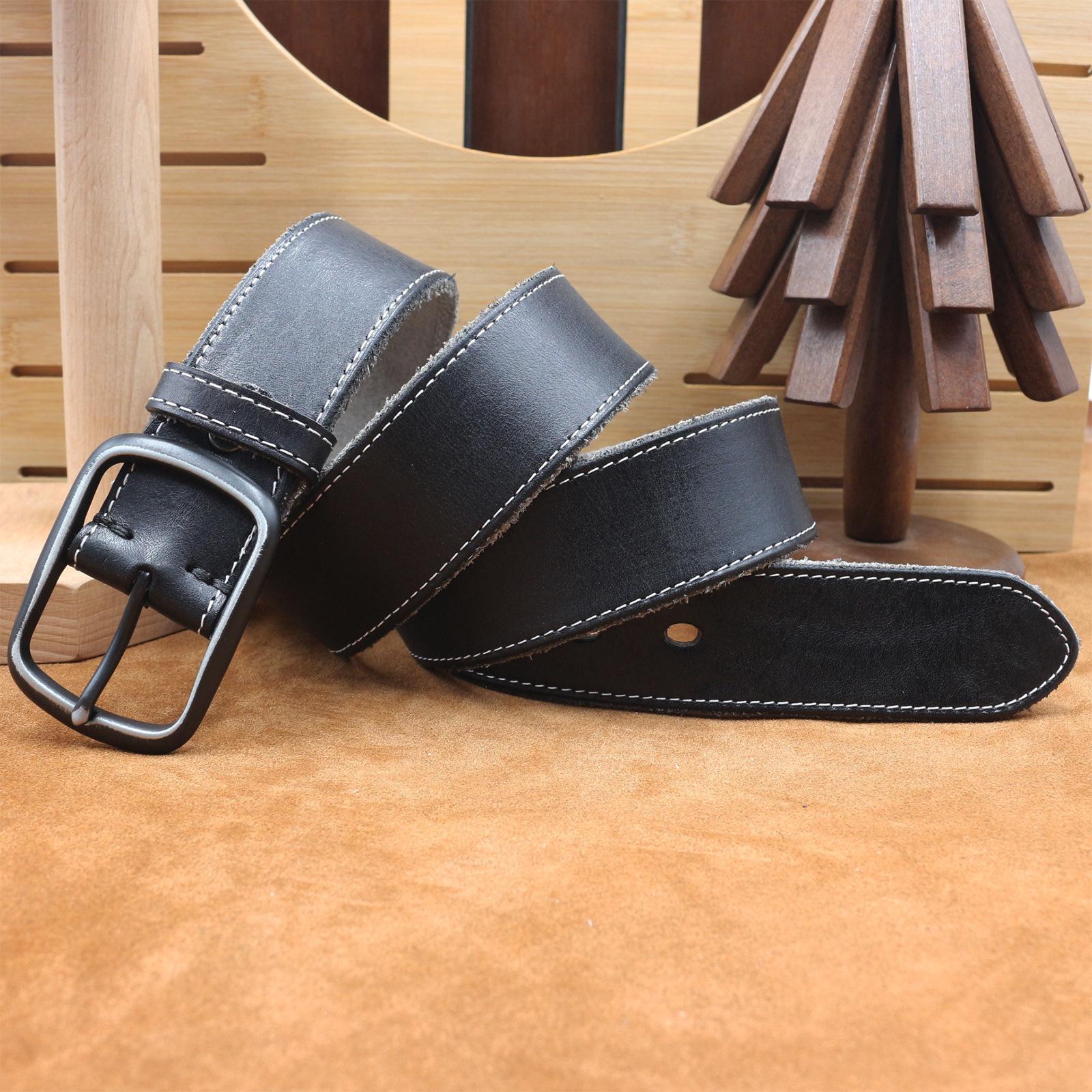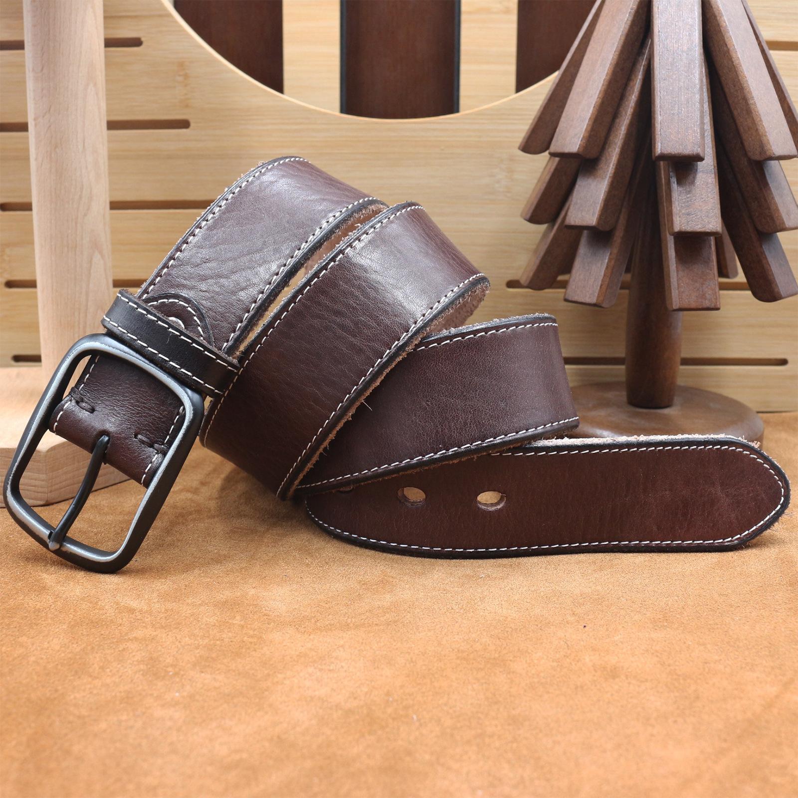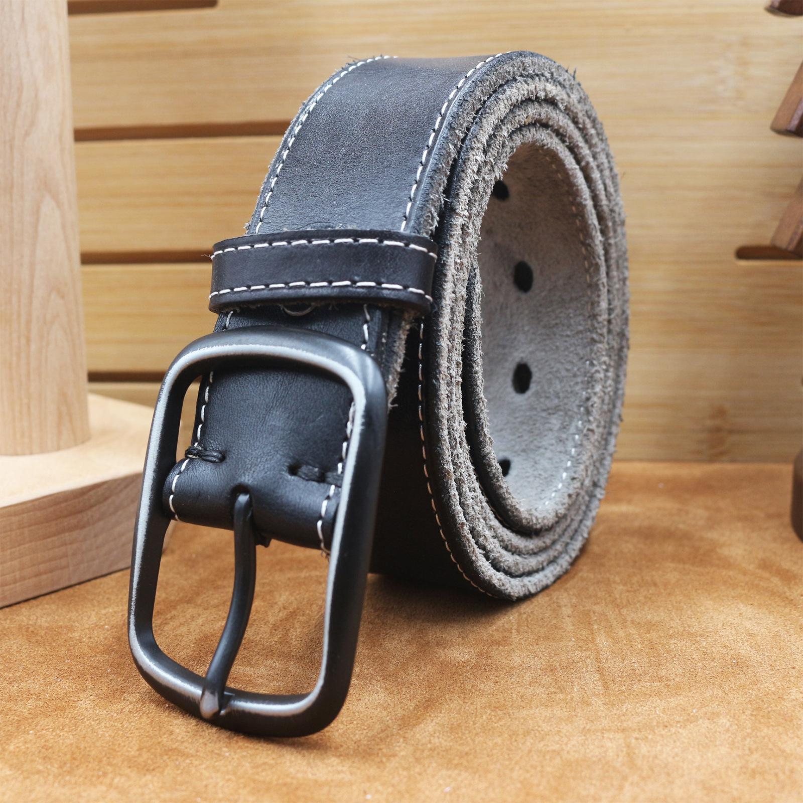 Cinto masculino de couro legítimo retrô americano de 3,8 cm com fivela de agulha e camada de couro bovino coreano casual jeans