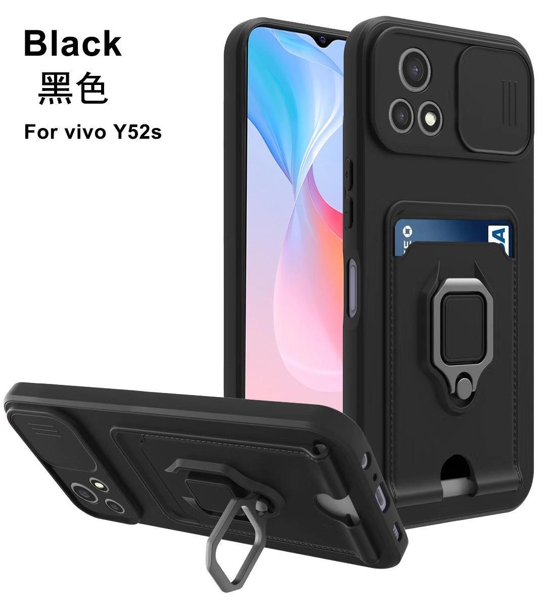 Compre Para vivo Y27 capa de telefone móvel Y17S janela de empurrar TPU cartão multifuncional Y16 suporte de anel Y22S capa protetora no atacado no Joom.pro