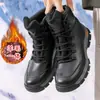 Couro Bovino de Primeira Camada Novos Sapatos de Algodão de Inverno para Homens com Lã para Aquecimento, Caminhada ao Ar Livre, Forrados com Lã, Sapatos Masculinos, Antiderrapantes e Espessados