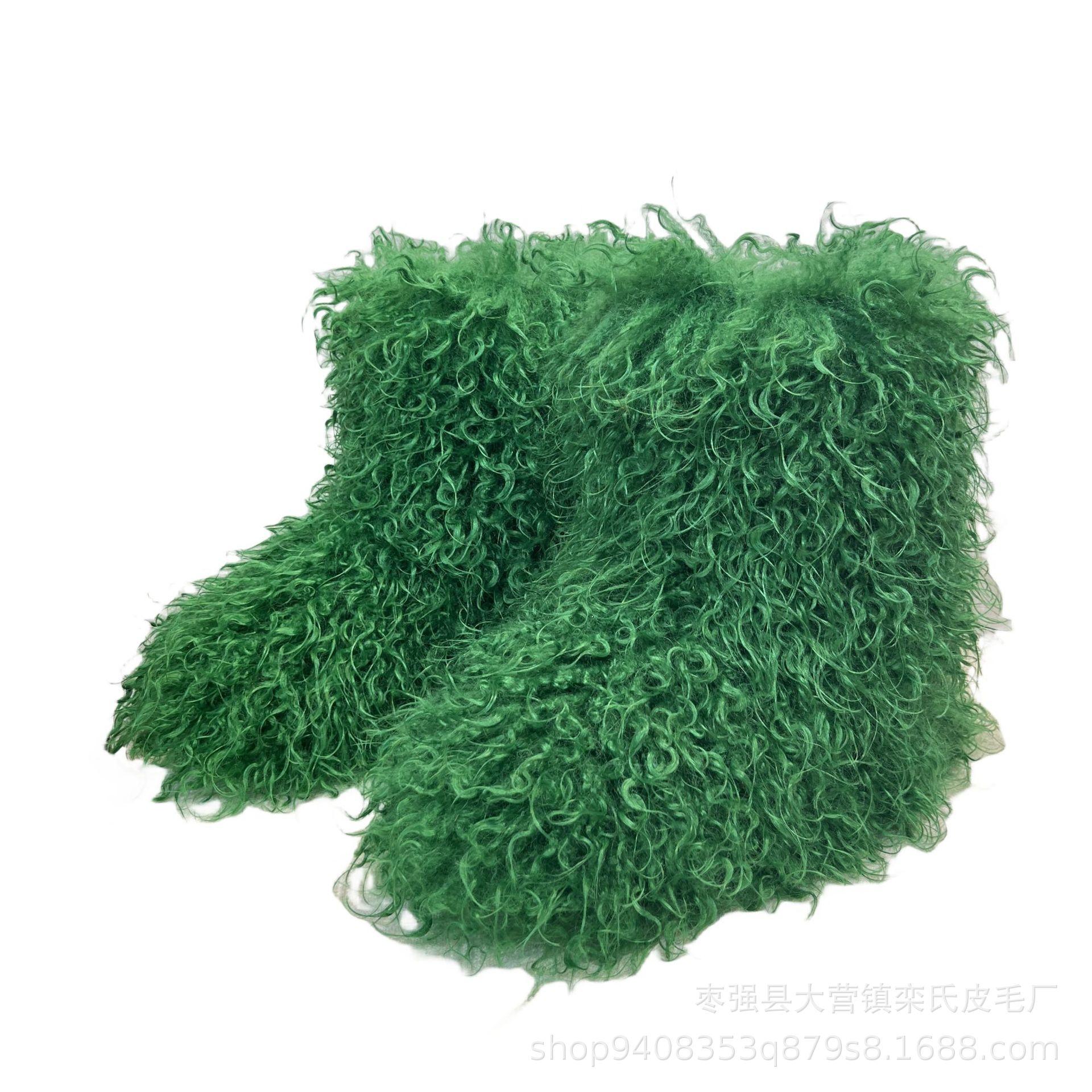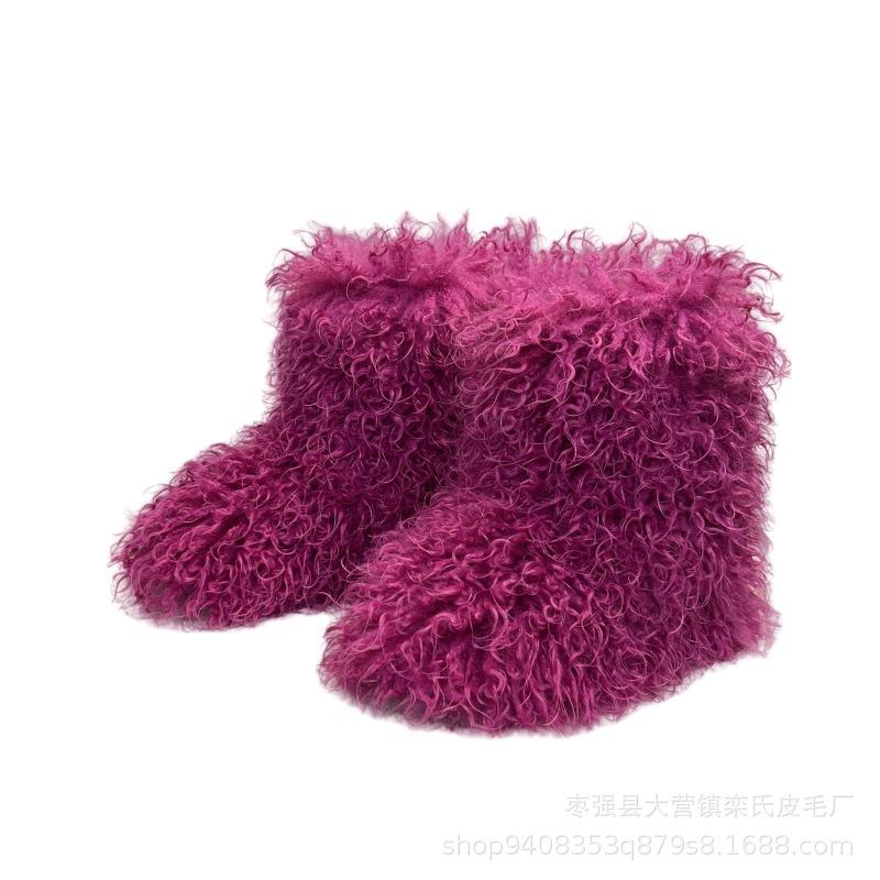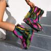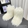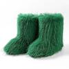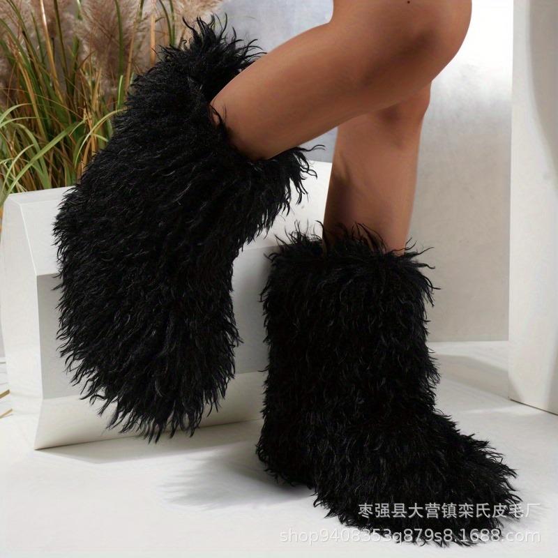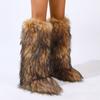 Botas de pele sintética de cano alto e planas transfronteiriças europeias e americanas, quentes, inverno, boca profunda, bico redondo, cano médio, botas de neve de pele de raposa