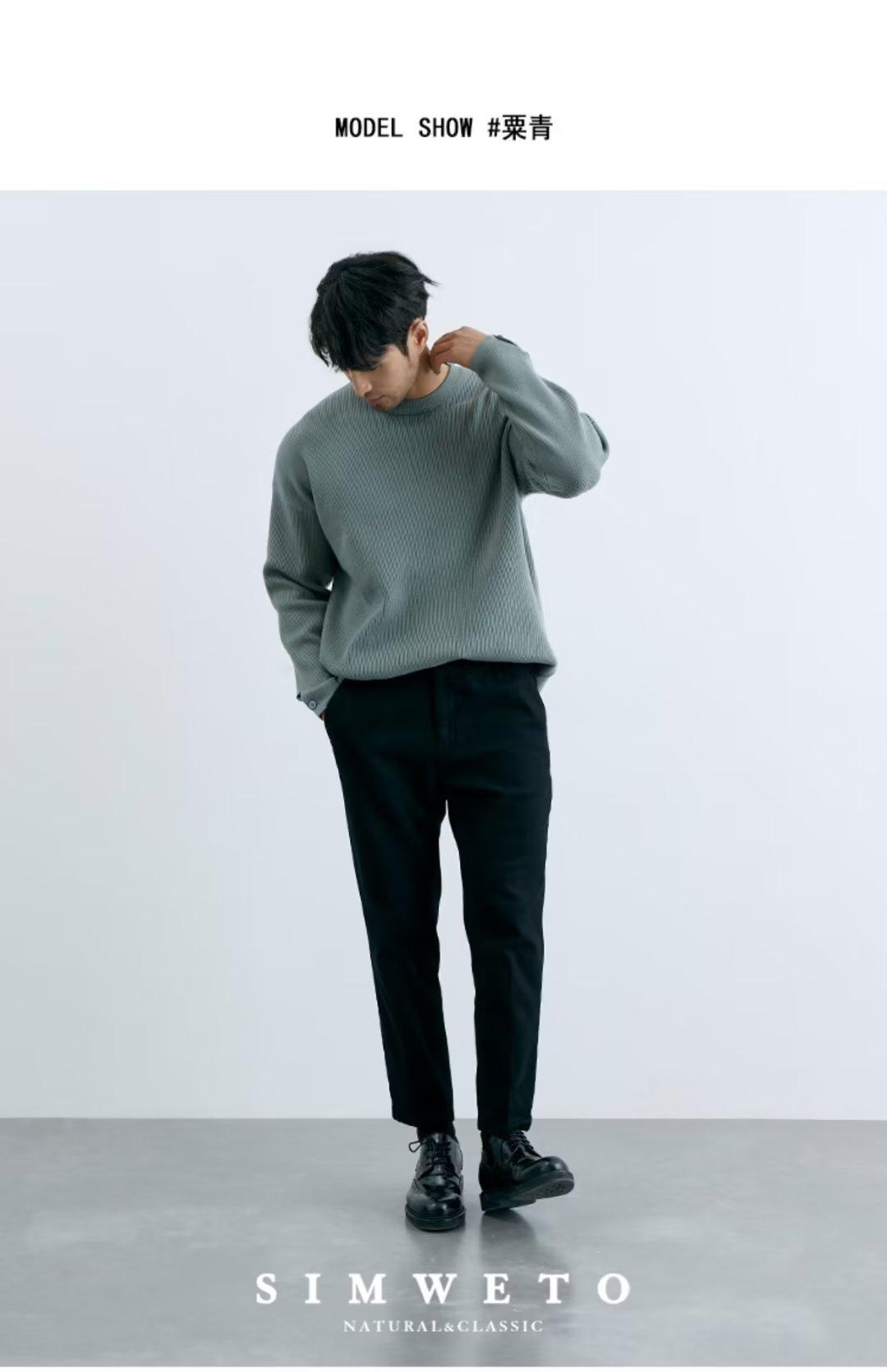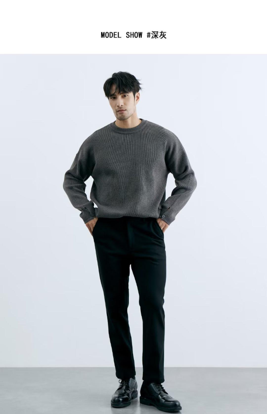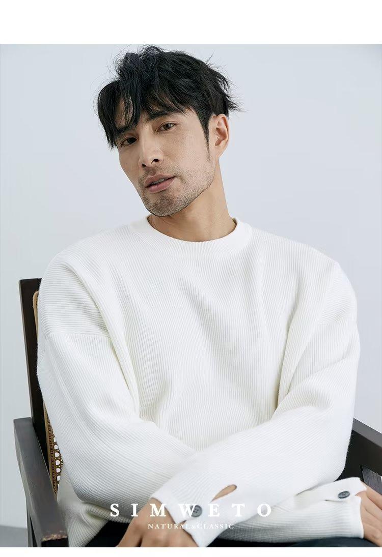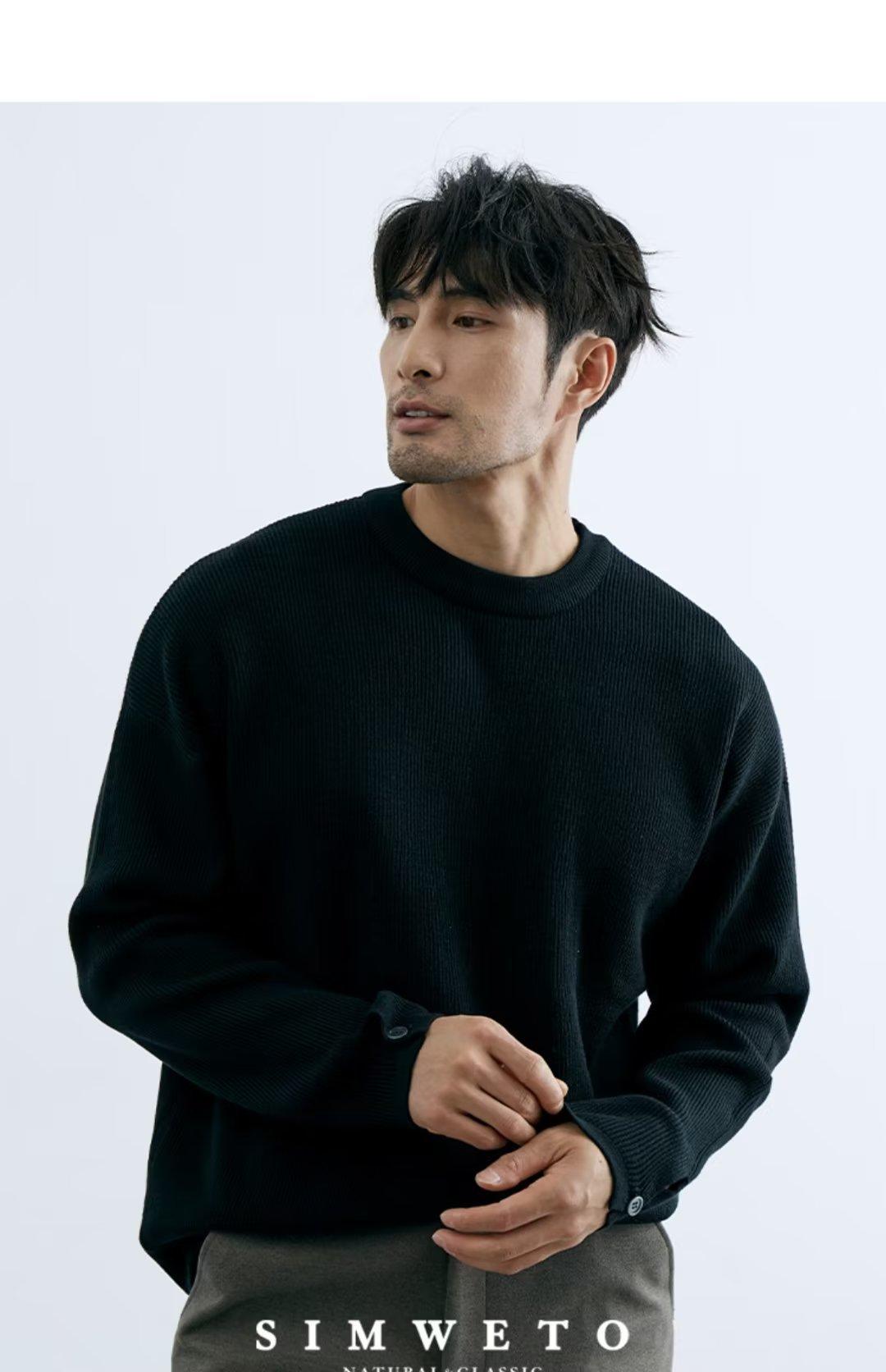 Comércio exterior masculino outono crewneck suéter masculino cor sólida jaqueta interna moda solto all-match pulôver malha base camisa