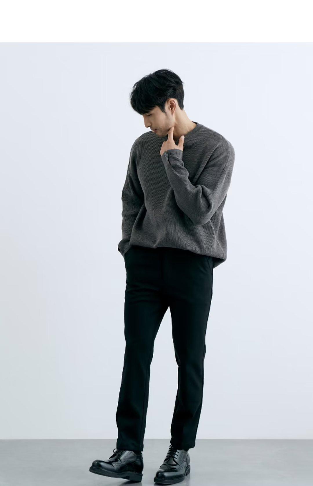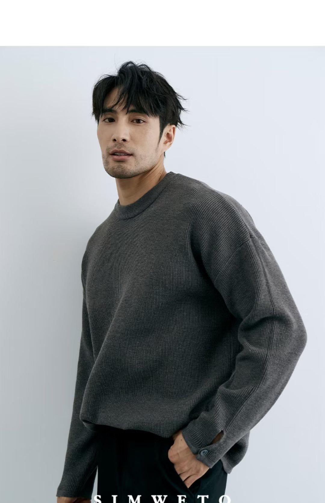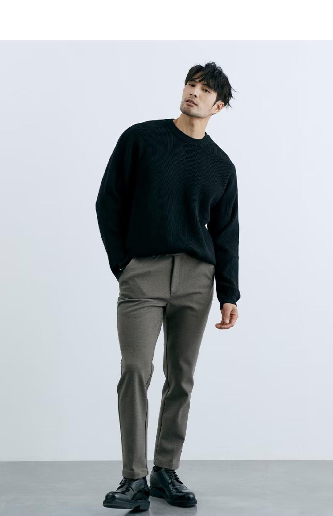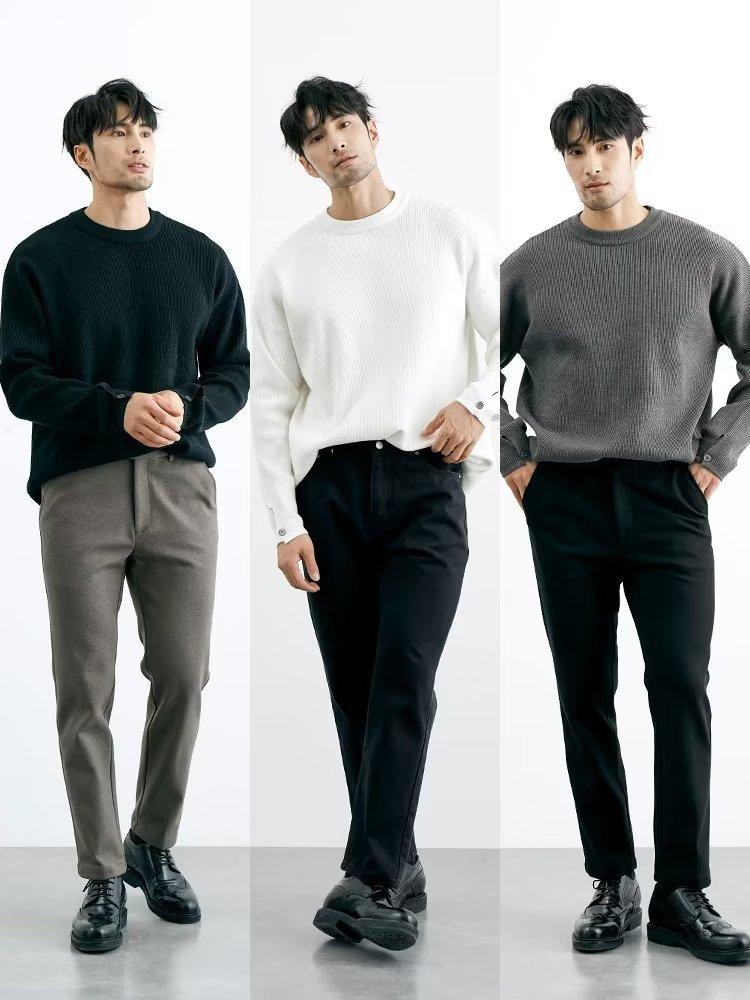 Comércio exterior masculino outono crewneck suéter masculino cor sólida jaqueta interna moda solto all-match pulôver malha base camisa