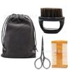 Conjunto de barbear de três peças para homens, novo, cerdas de porco, escova oval, pente de grelha, tesoura pequena, conjunto de limpeza de barba