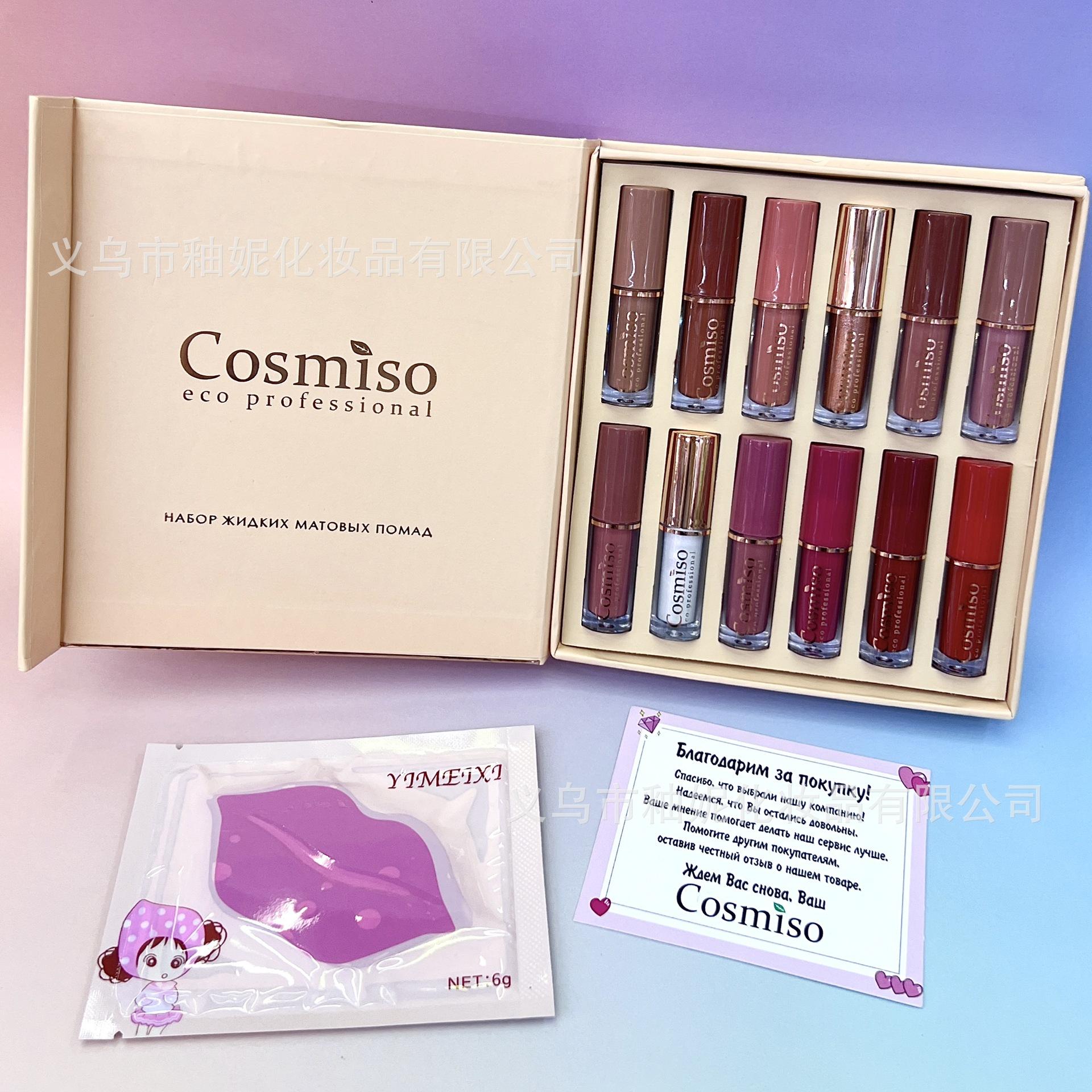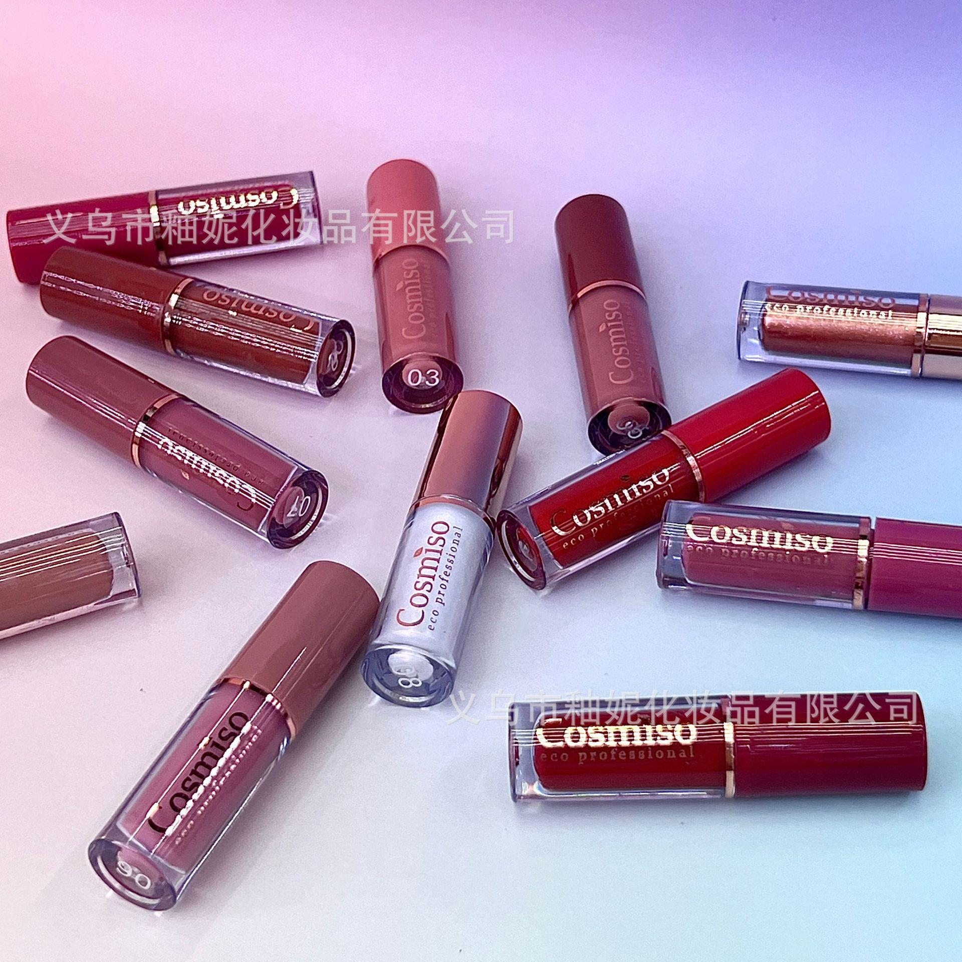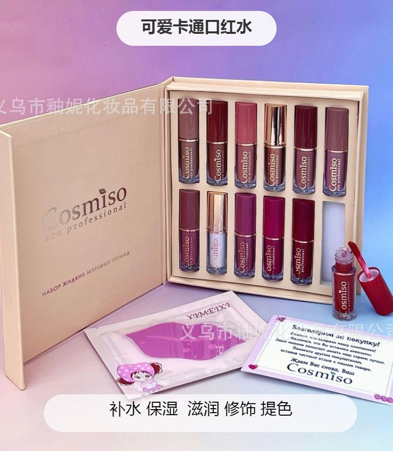 Cosmiso Mini Compacto Hidratante e Hidratante 12 Brilho Labial Espelho Veludo Longa Duração Antiaderente Copo Desbotamento Líquido Labial