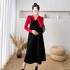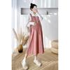 White bottoming shirt, Red bottoming shirt, White bottoming shirt + pink suspender skirt, Pink suspender dress...